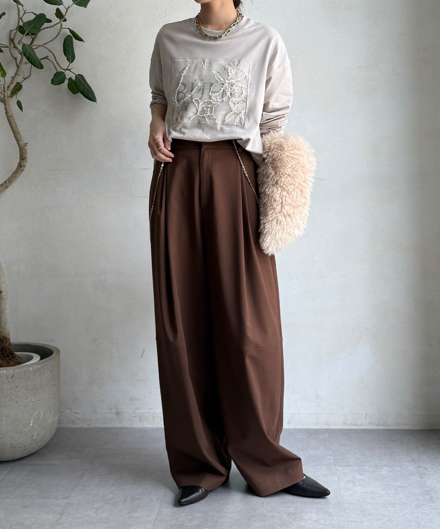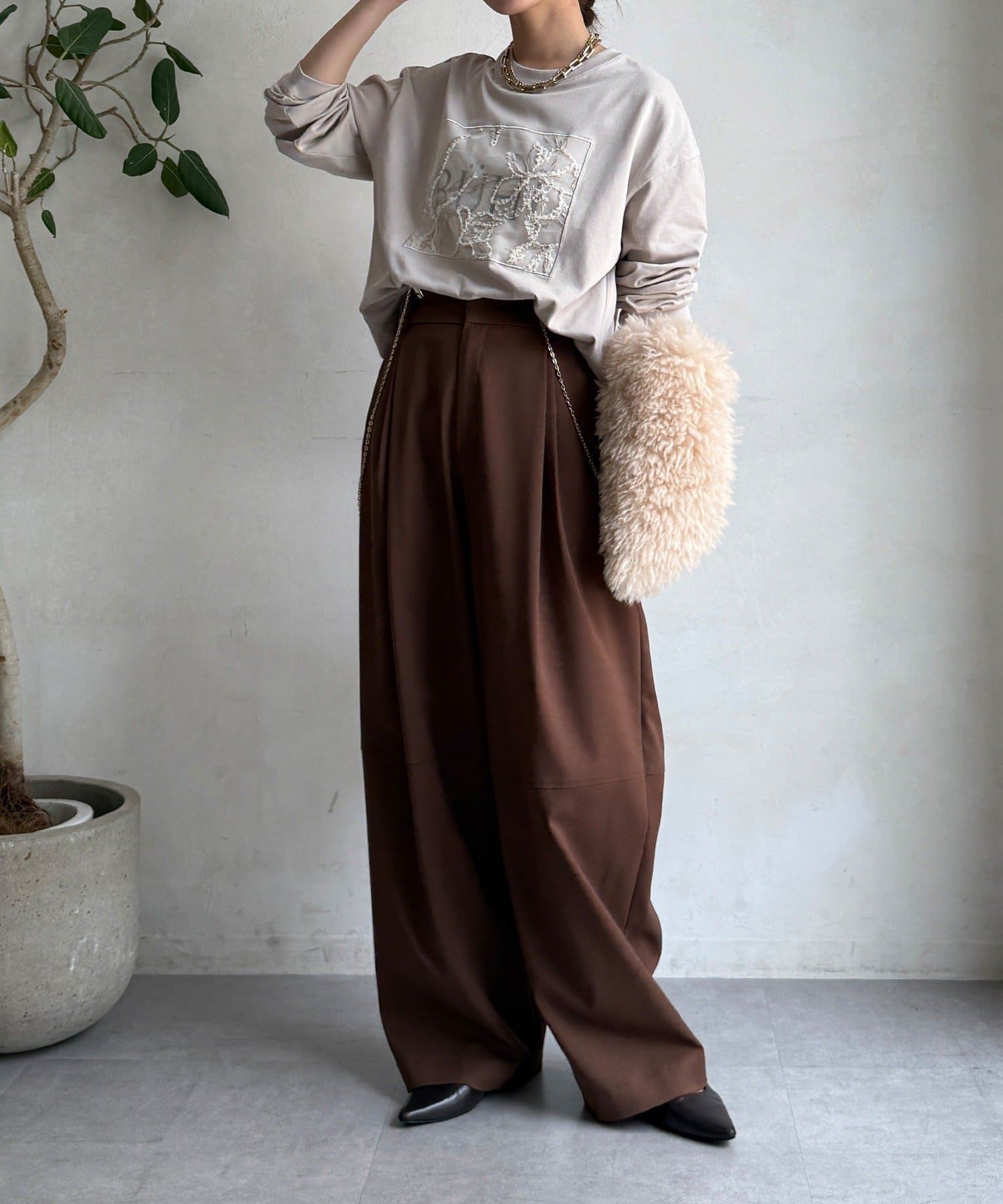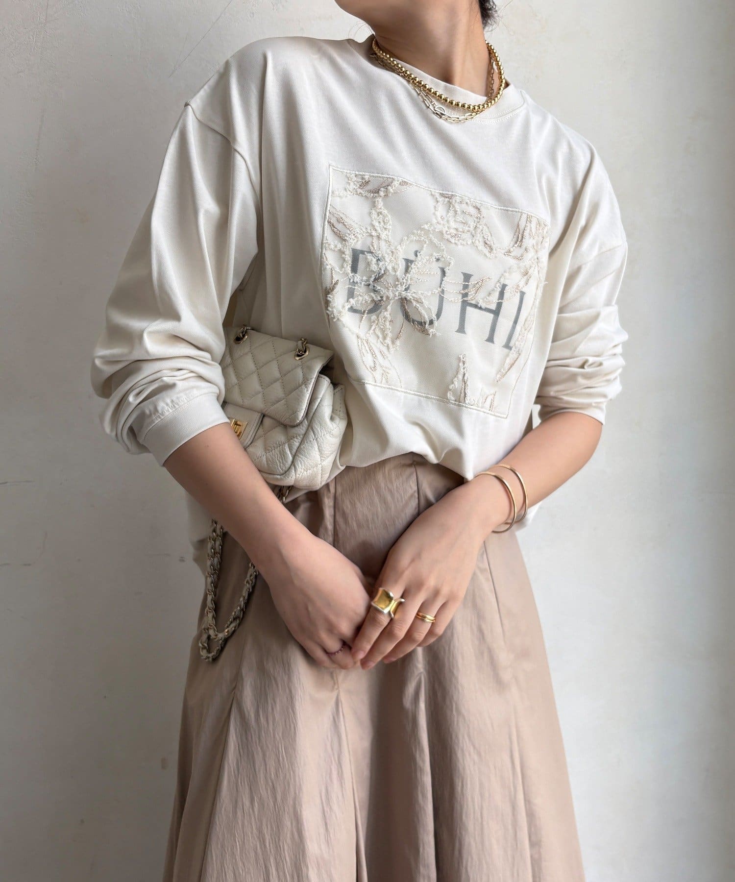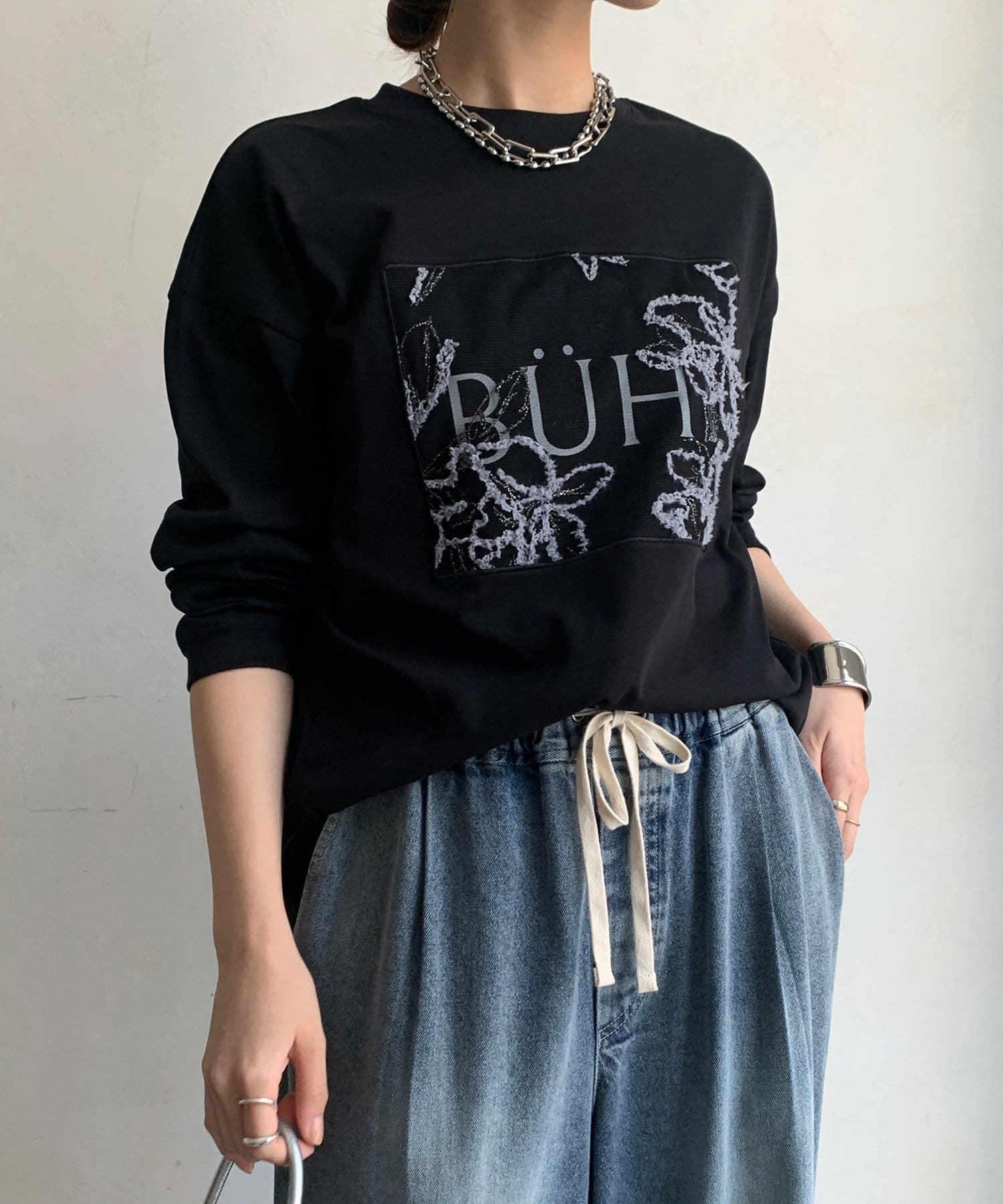 甘くなりがちなレースを、あえてカジュアルなロンTに落とし込んだデザイン
