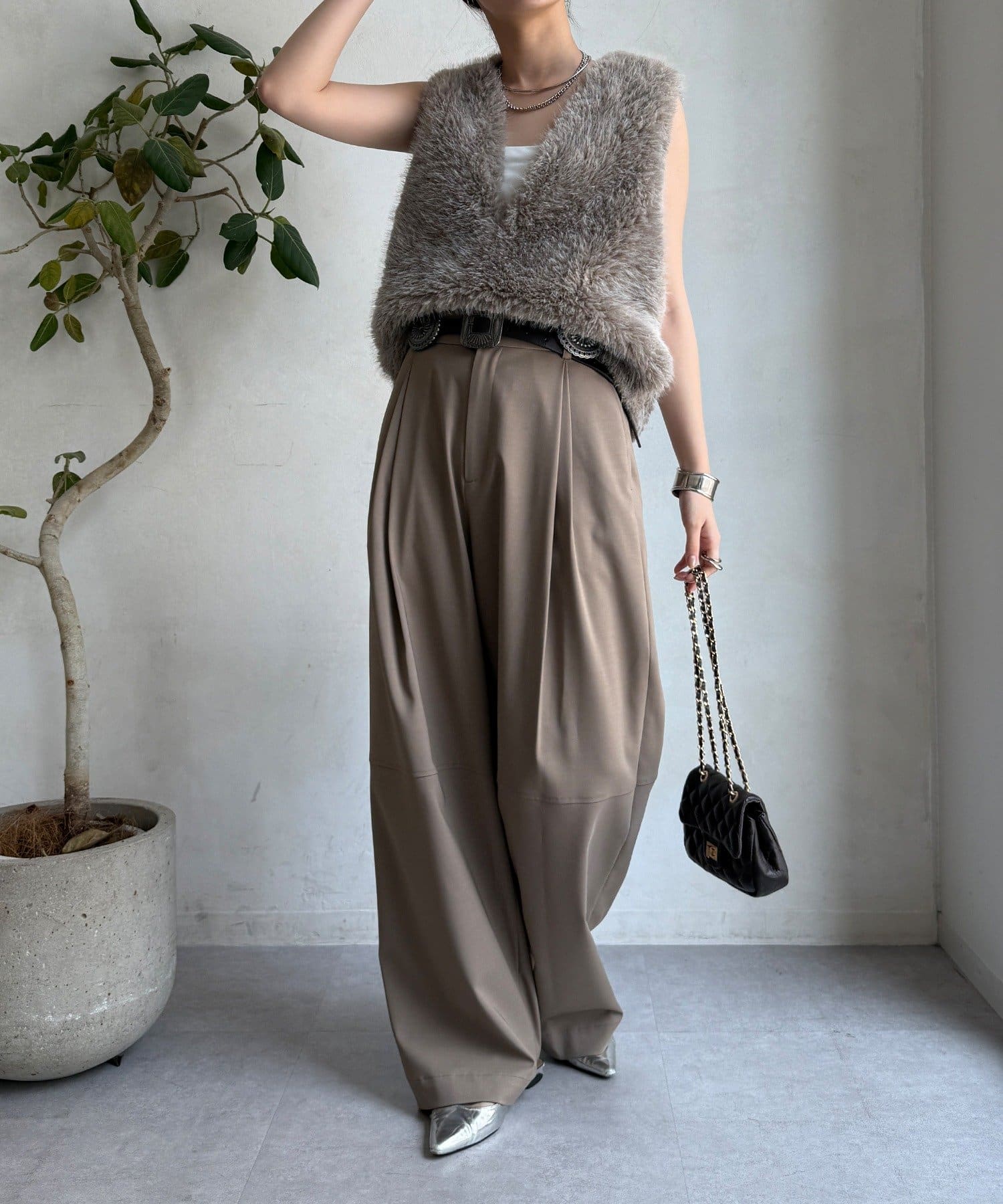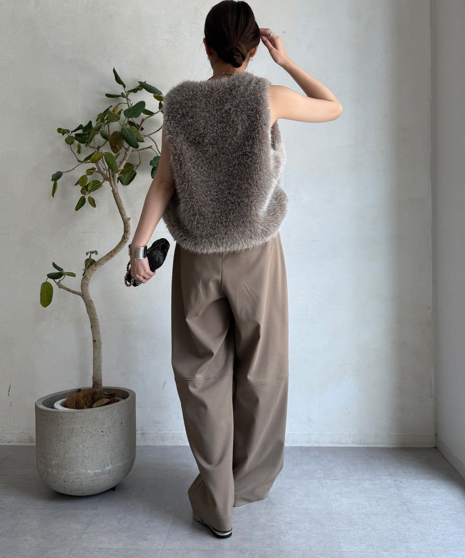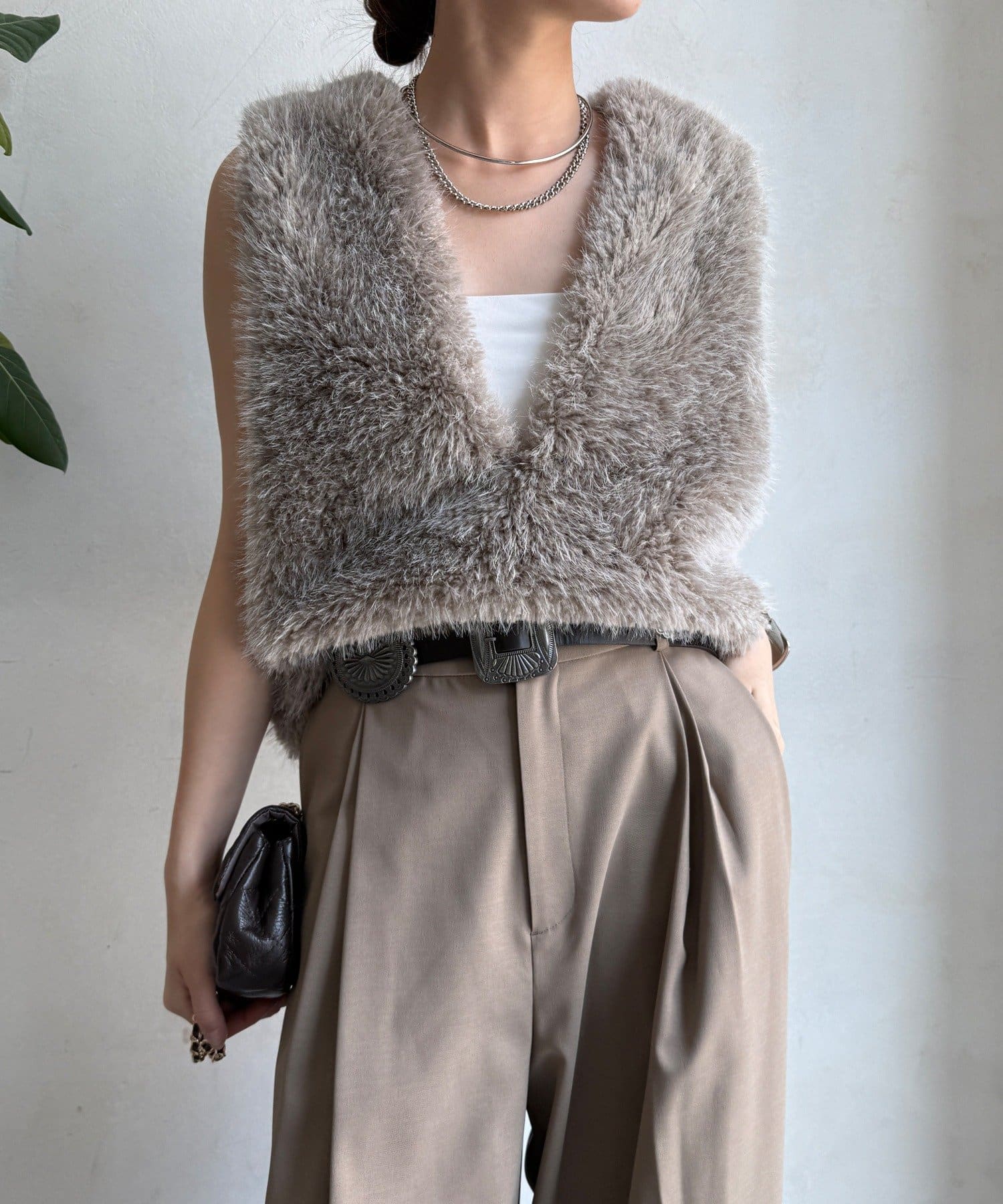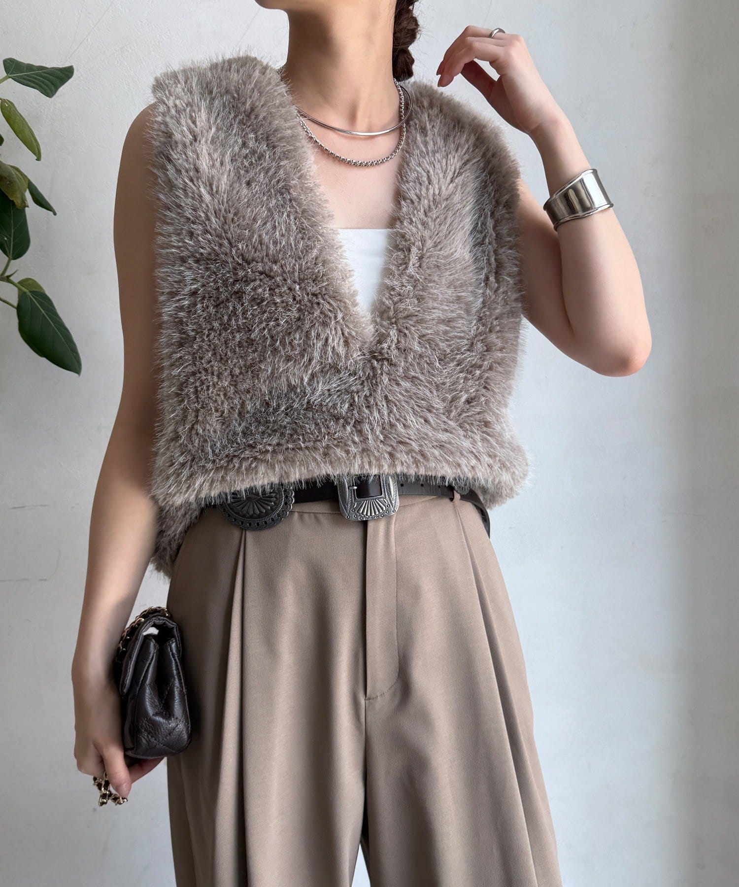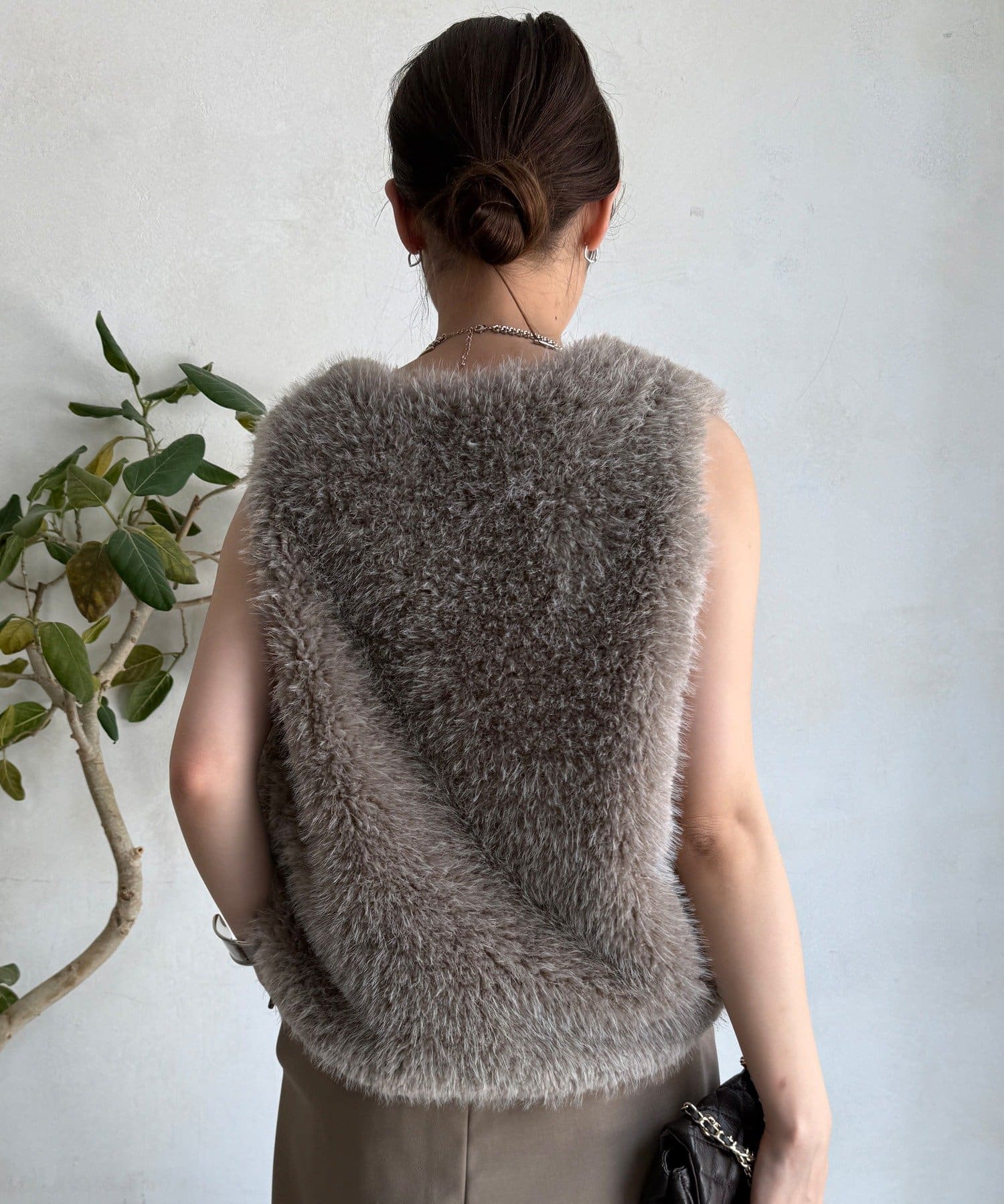 TOP > DOUDOU > レディース > ジャケット/アウター > ベスト/ジレ > サイドスナップフェイクカシミヤファープルオーバー
