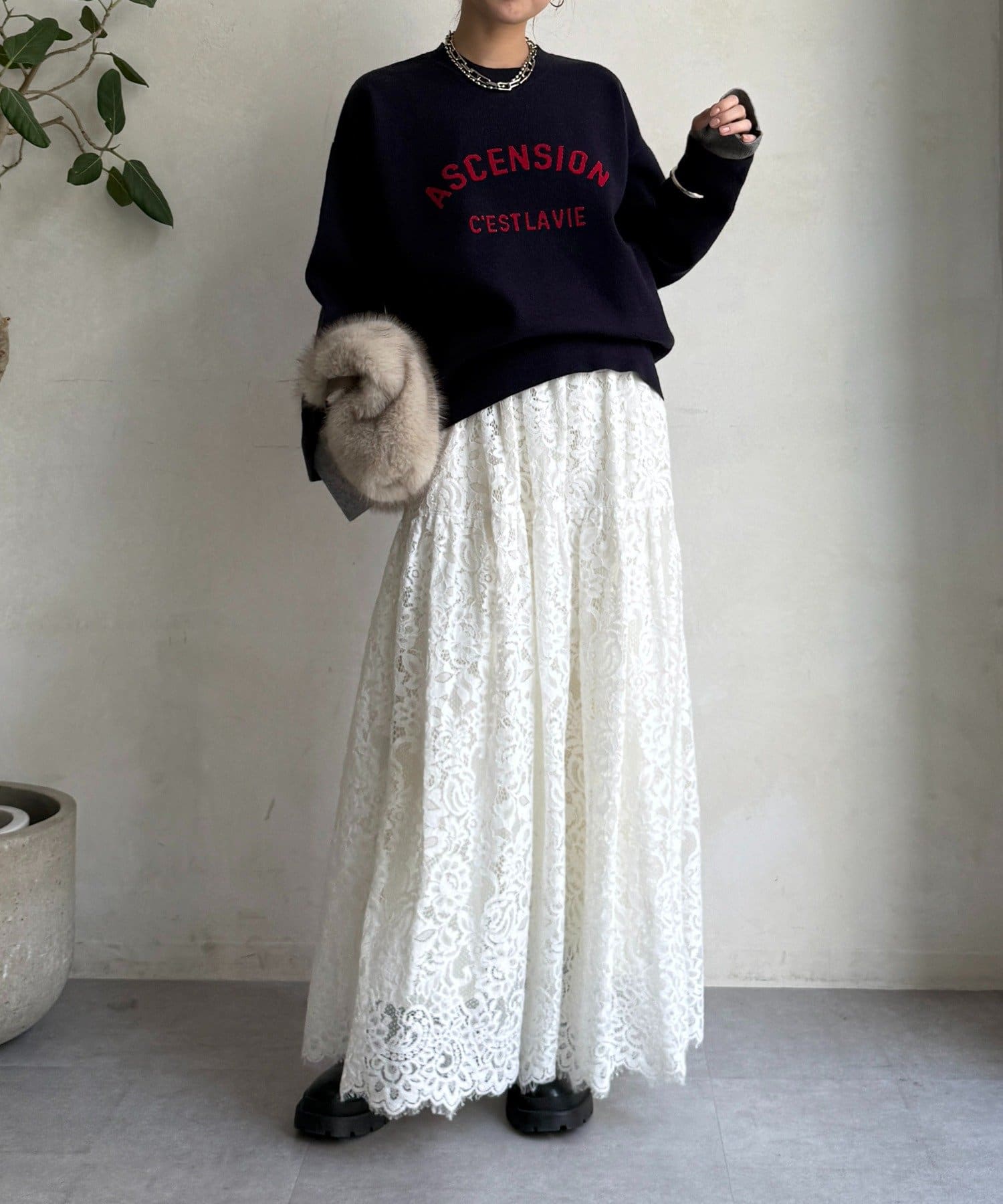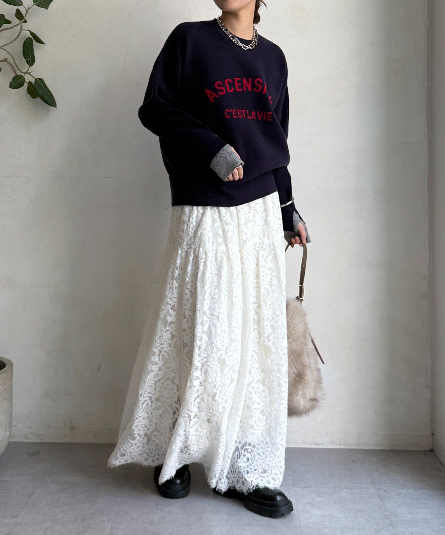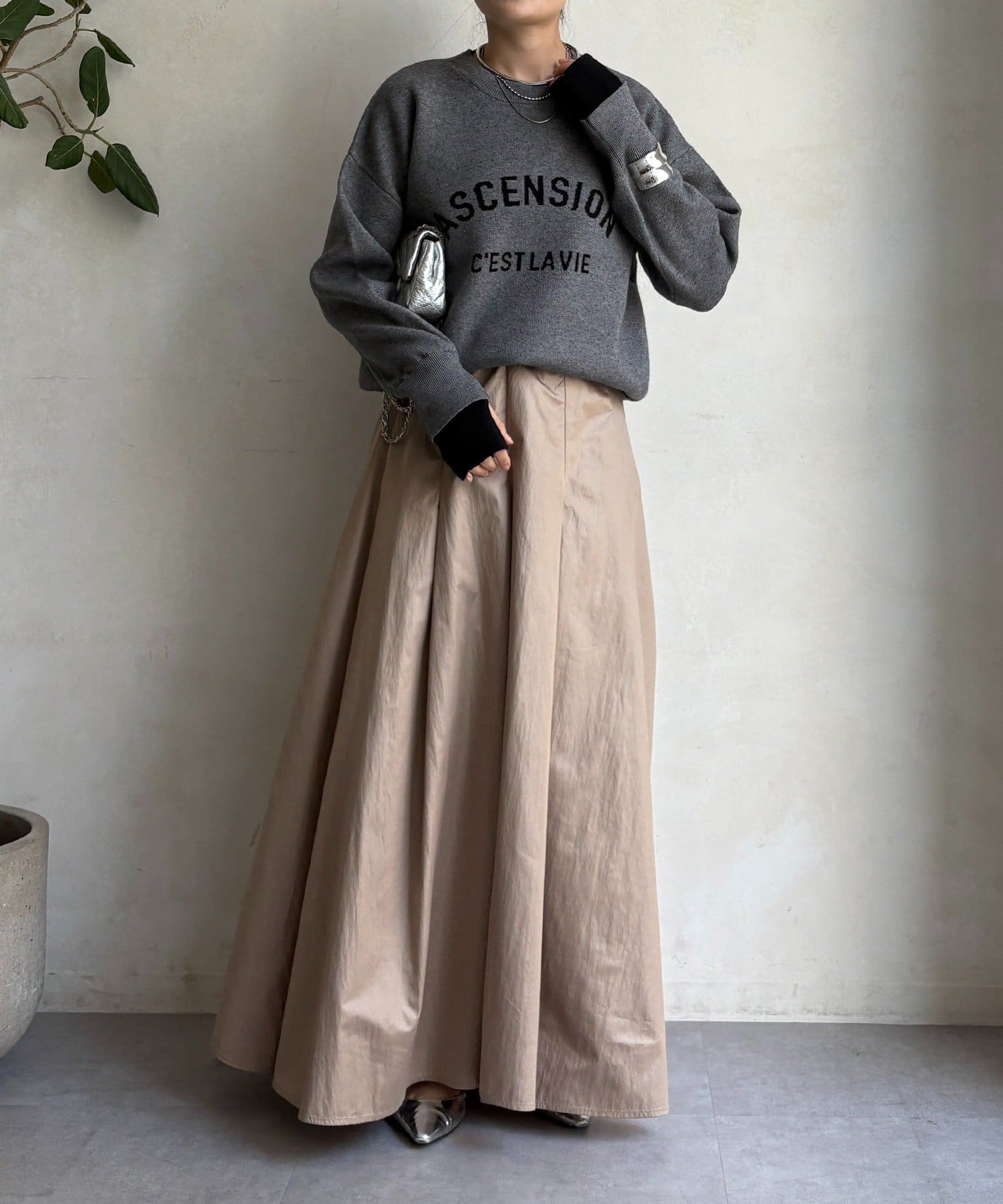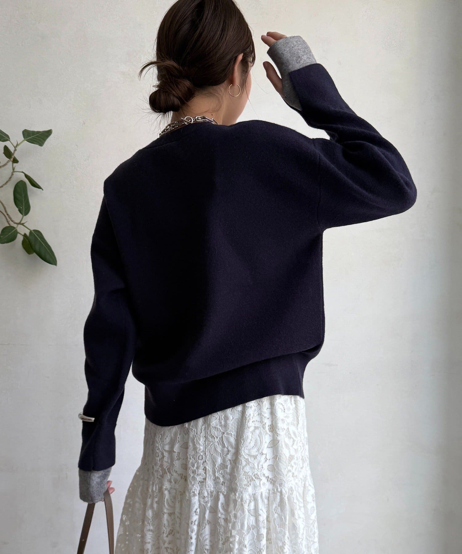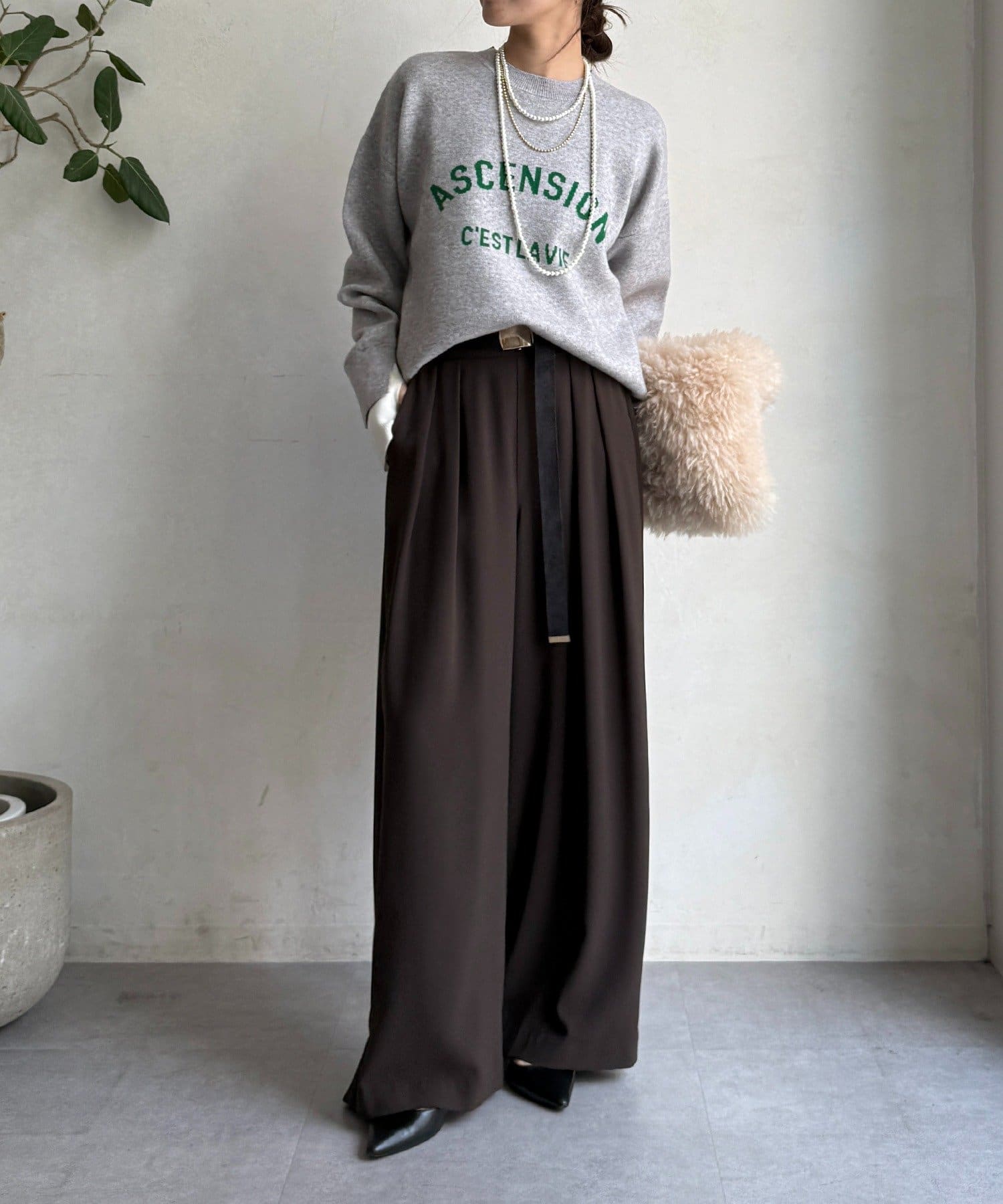 様々なコーディネートに馴染みやすいサイズ感とデザインのニットで