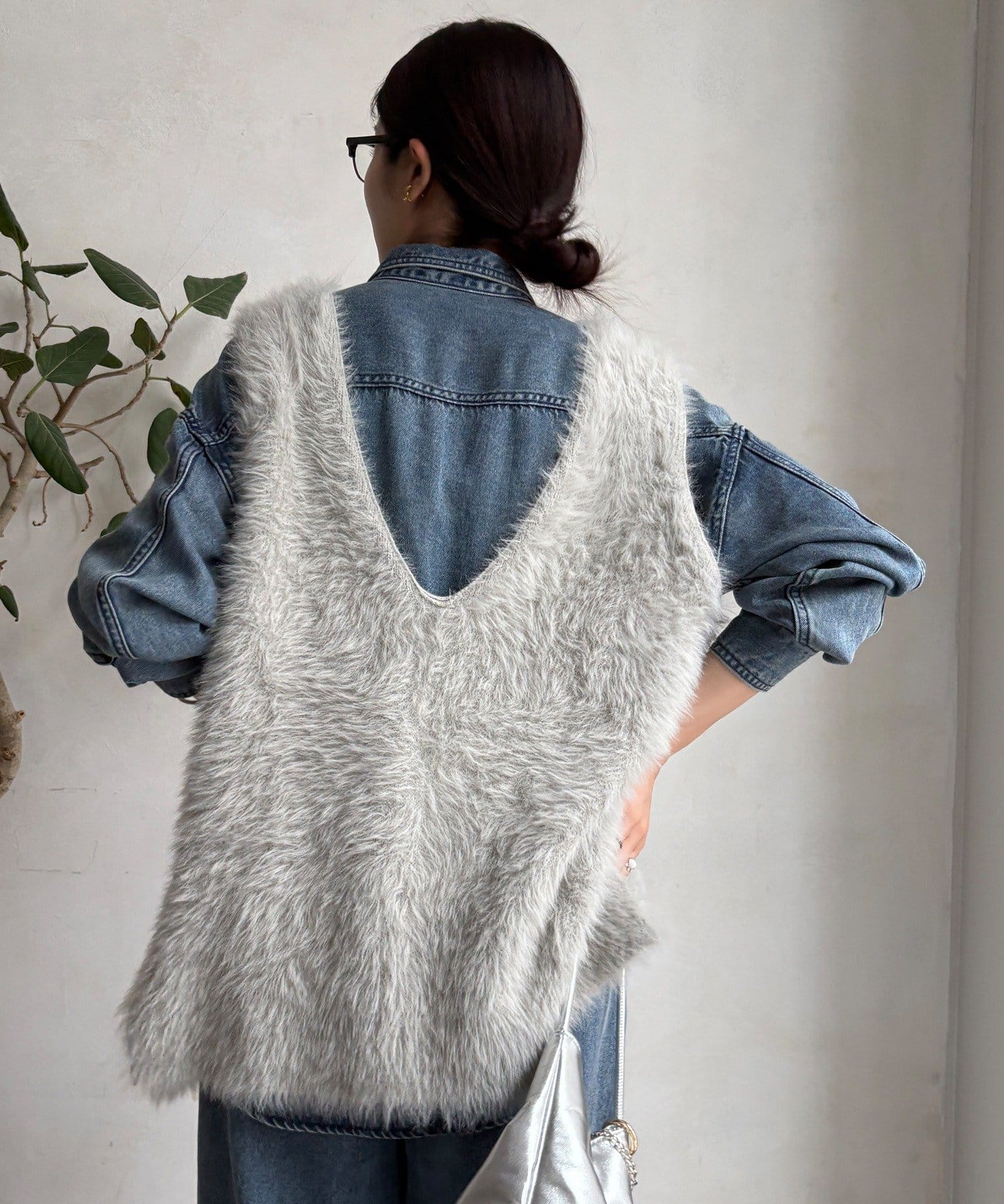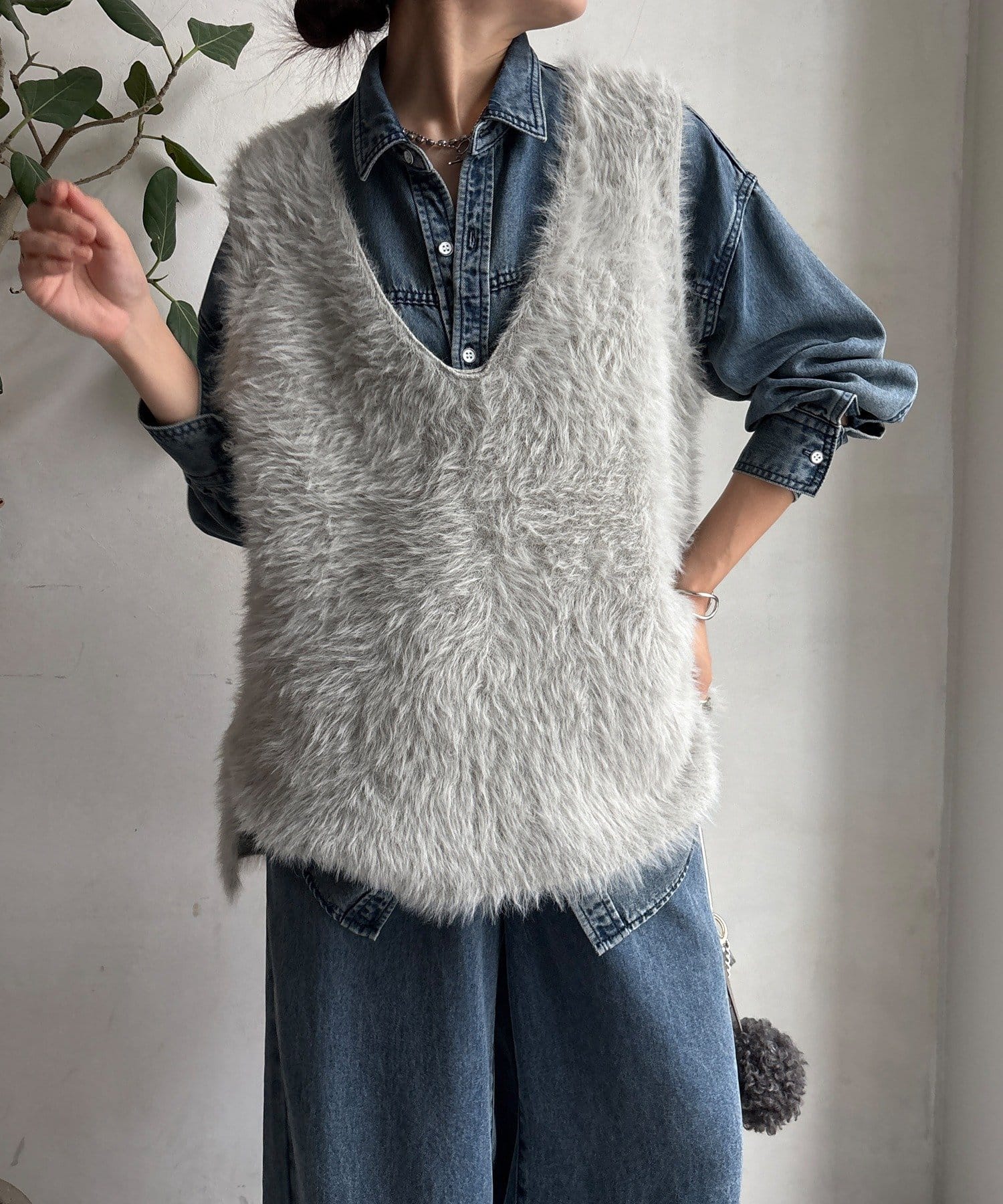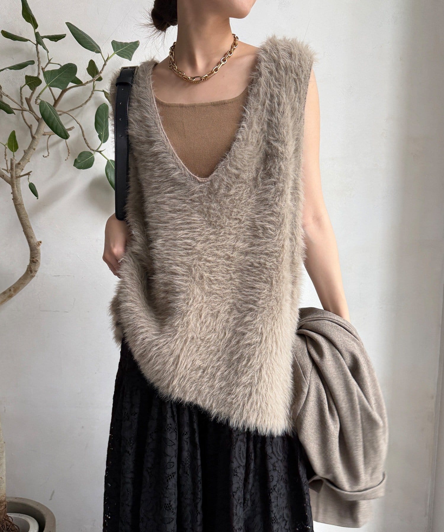 DOUDOU(ドゥドゥ) 【WEB限定】前後2WAYシャギーニットベスト