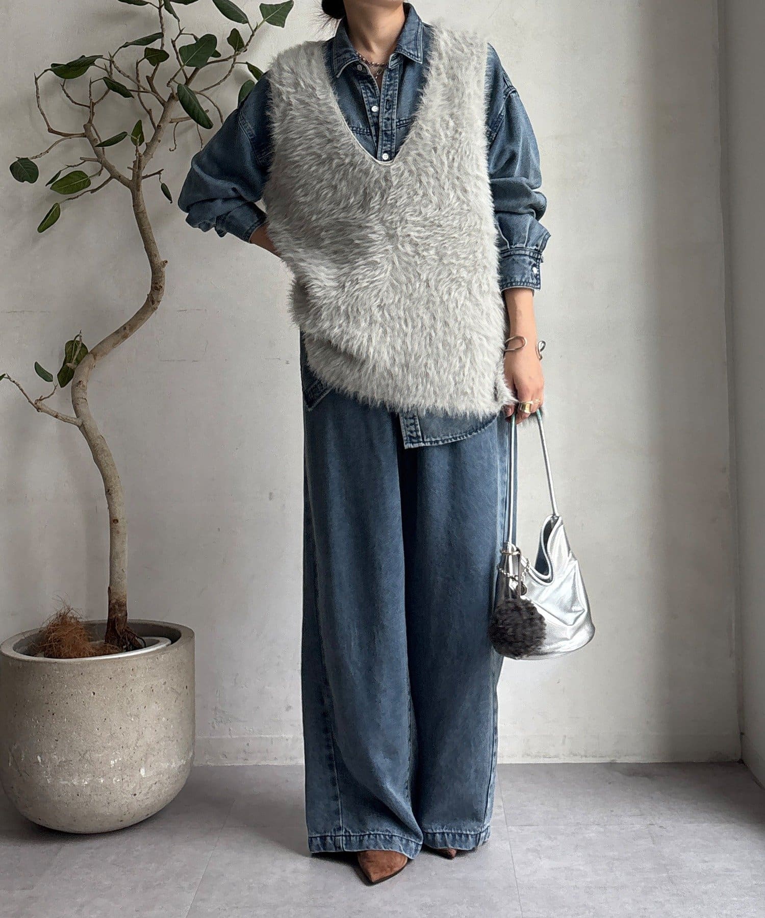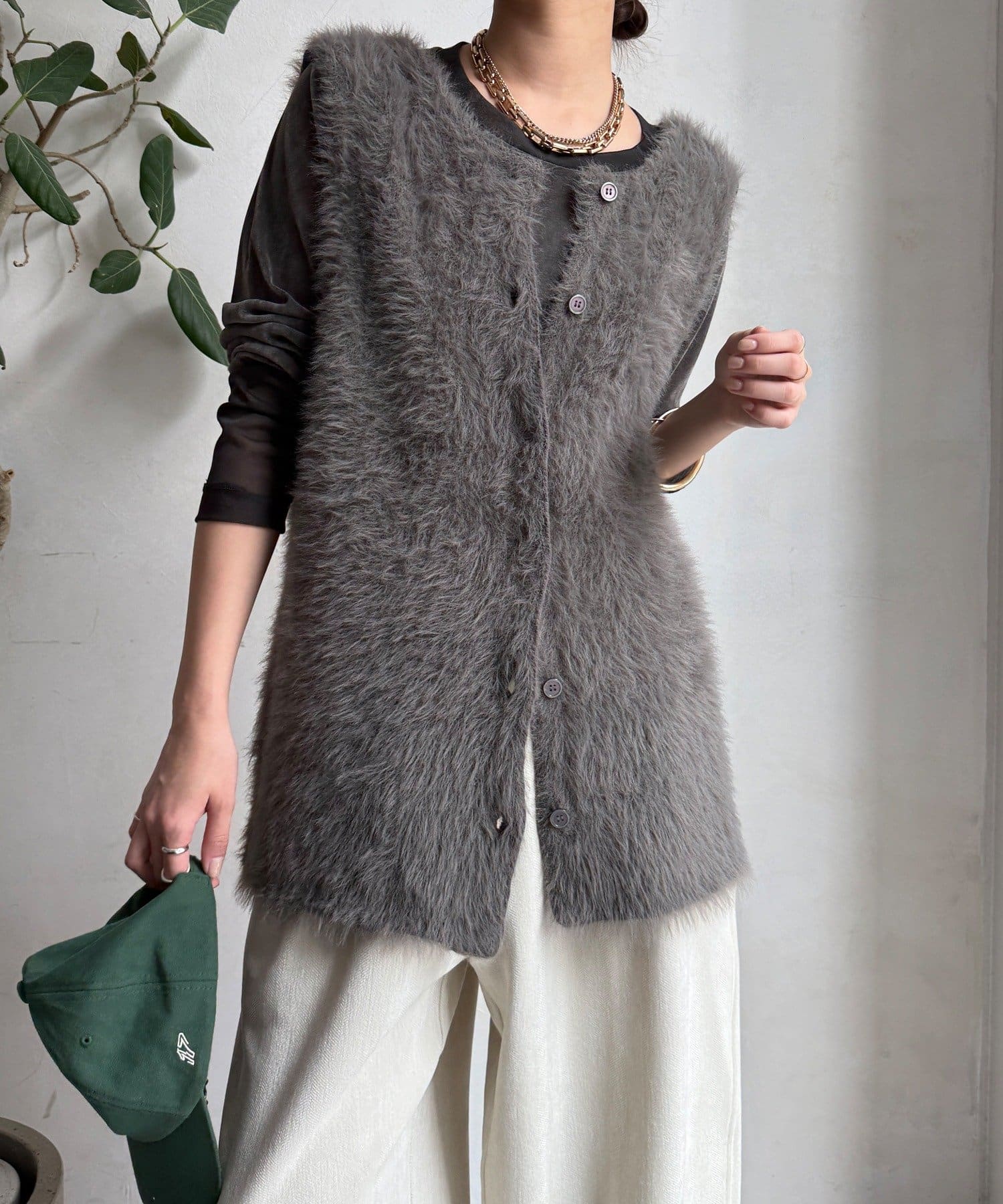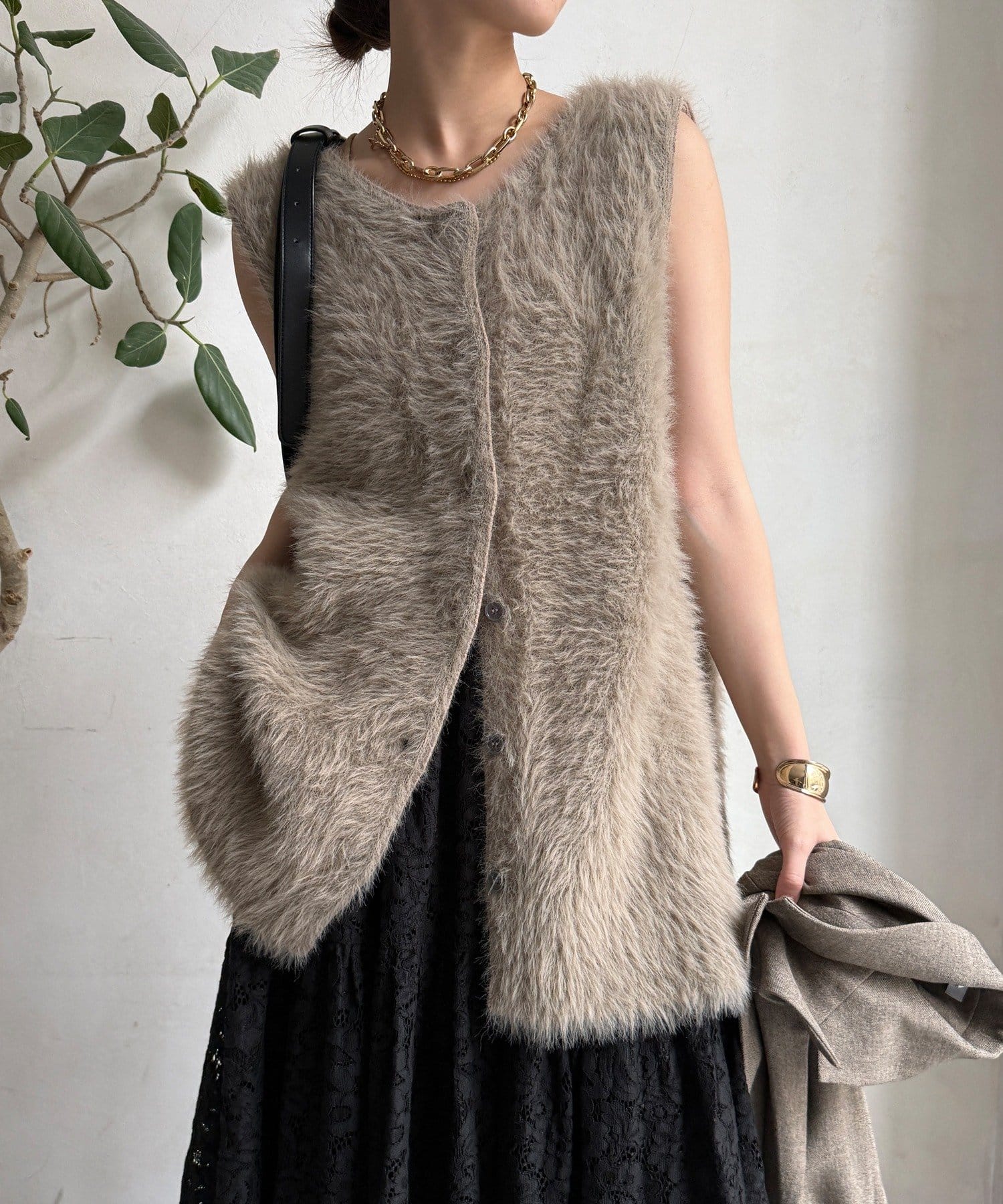 DOUDOU(ドゥドゥ) 【WEB限定】前後2WAYシャギーニットベスト