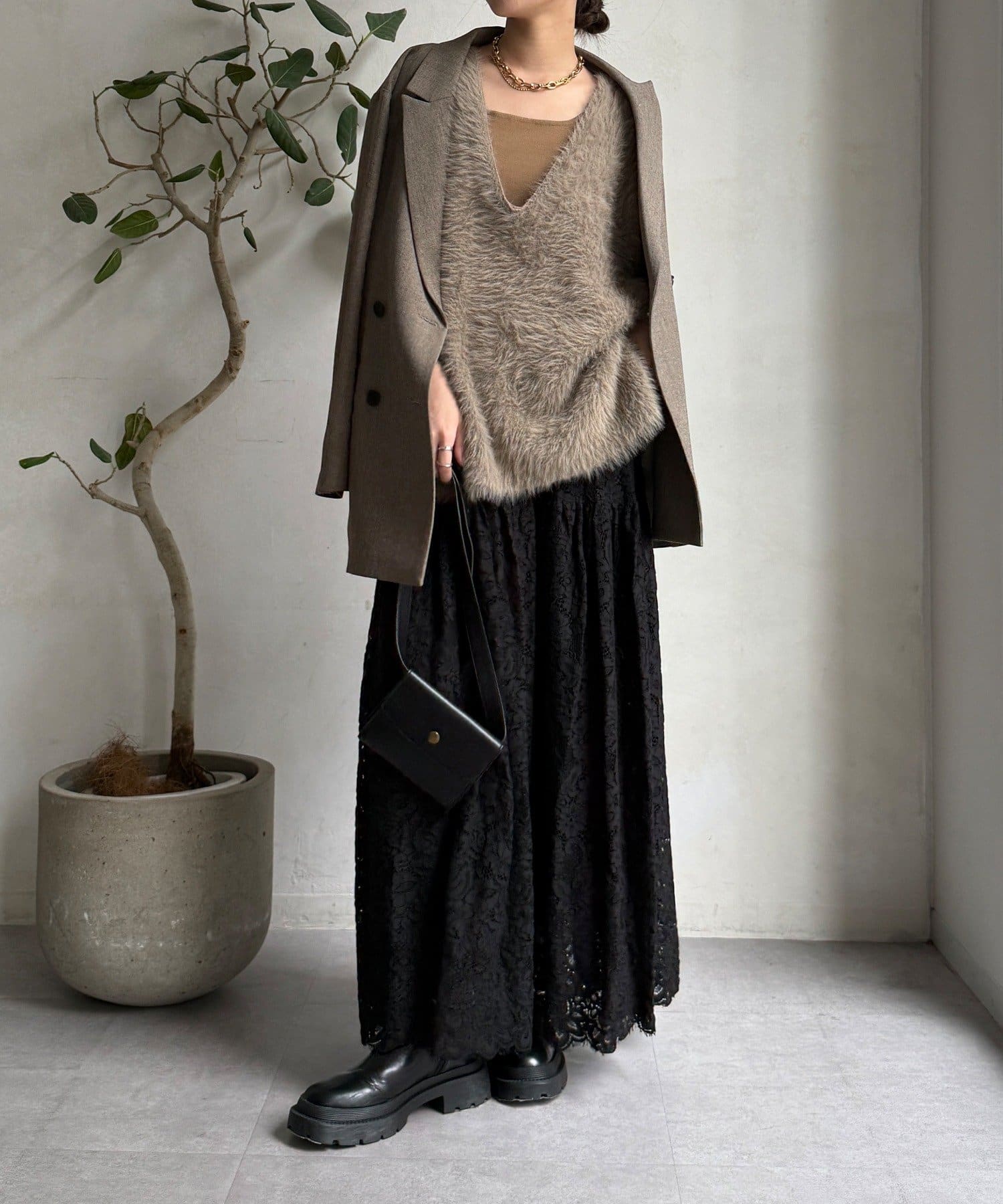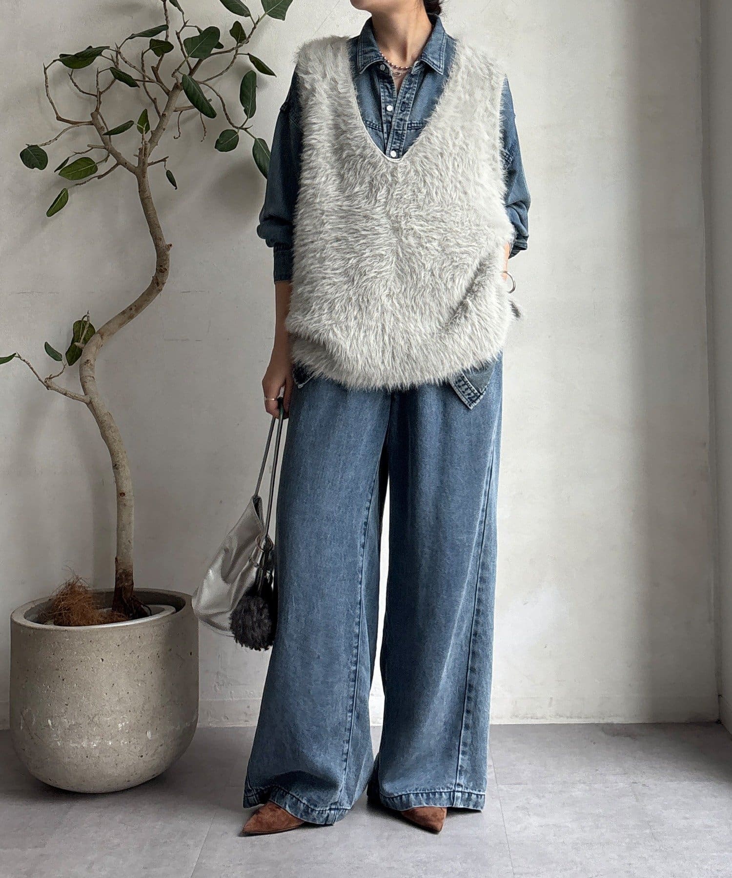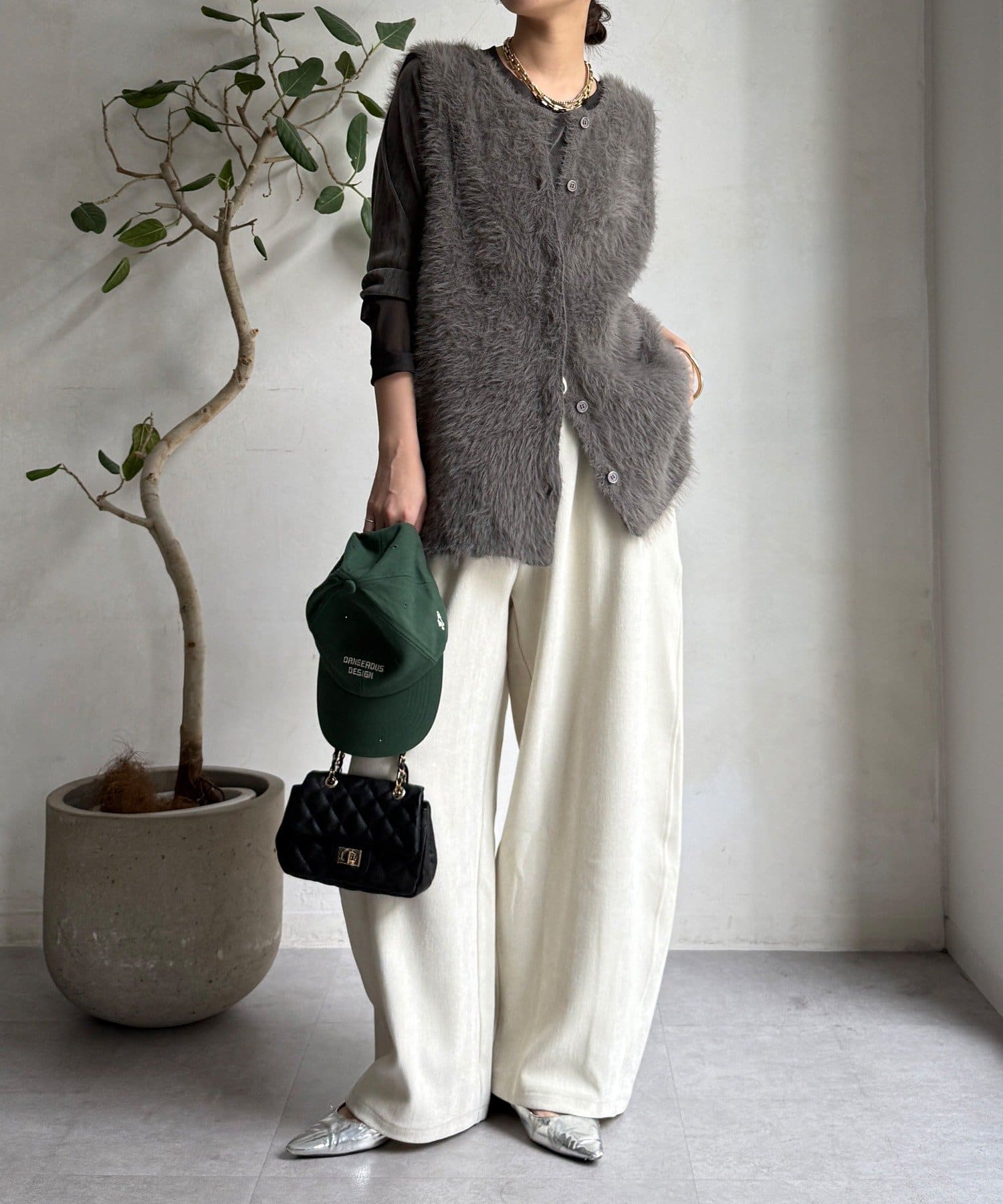 毛足のあるふわふわ素材が季節感をグッと高め、どんなスタイルにもすんなり馴染みます。