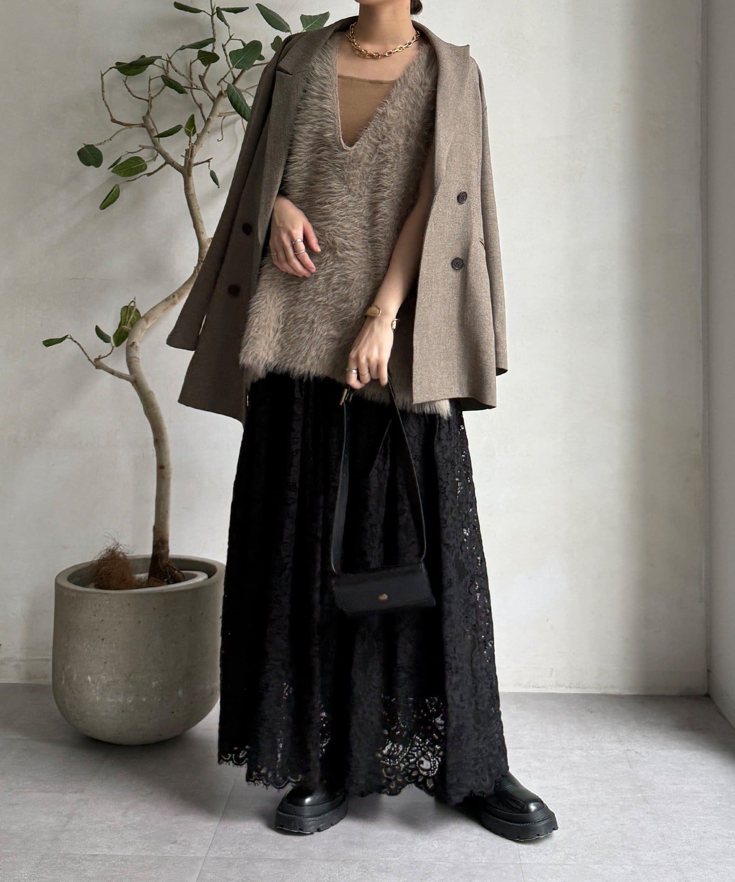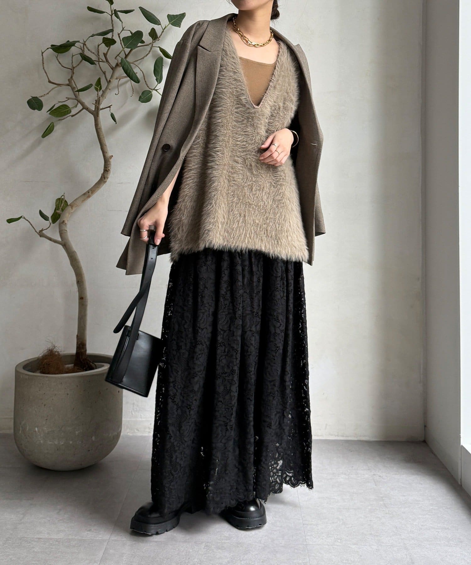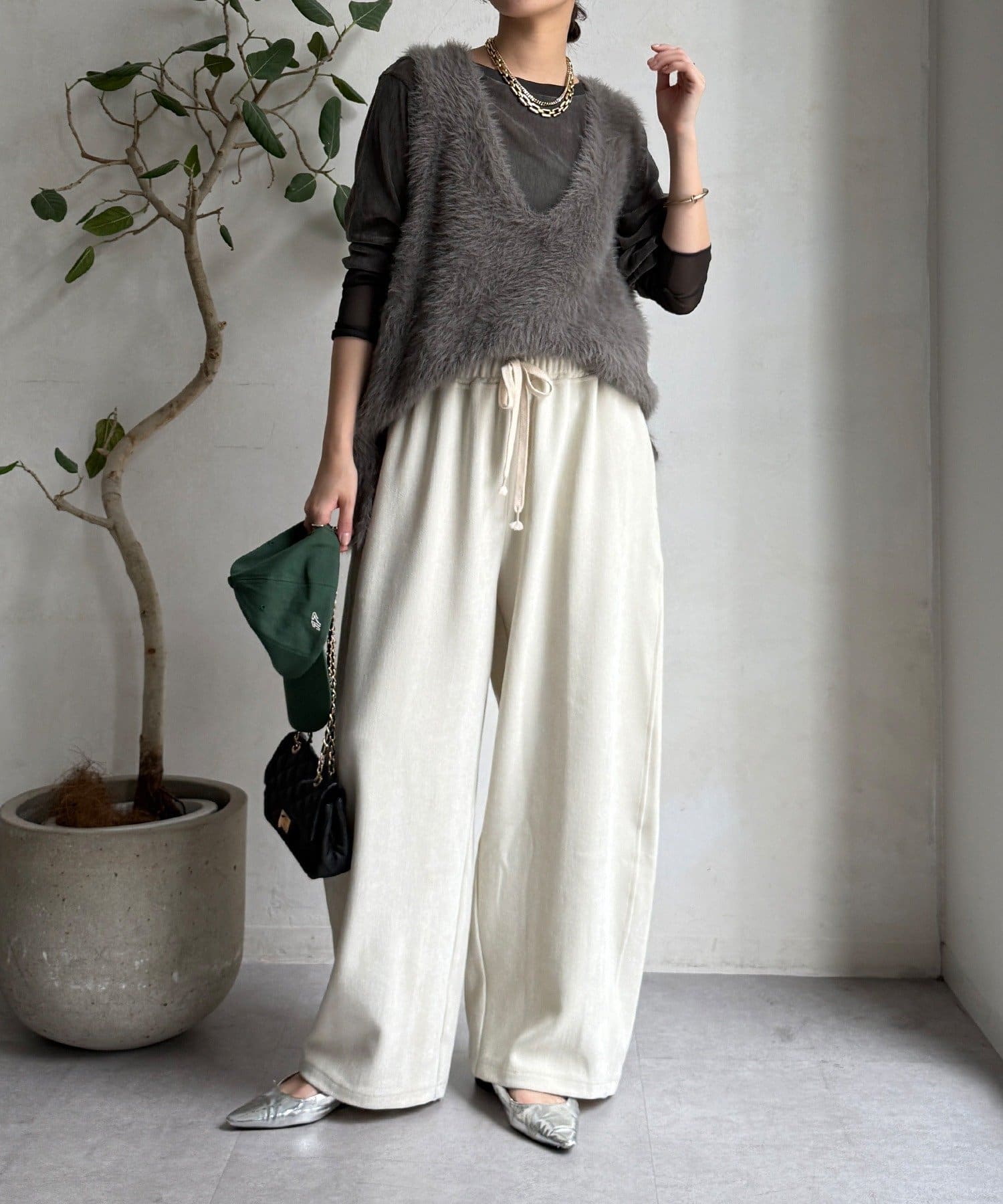 毛足のあるふわふわ素材が季節感をグッと高め、どんなスタイルにもすんなり馴染みます。