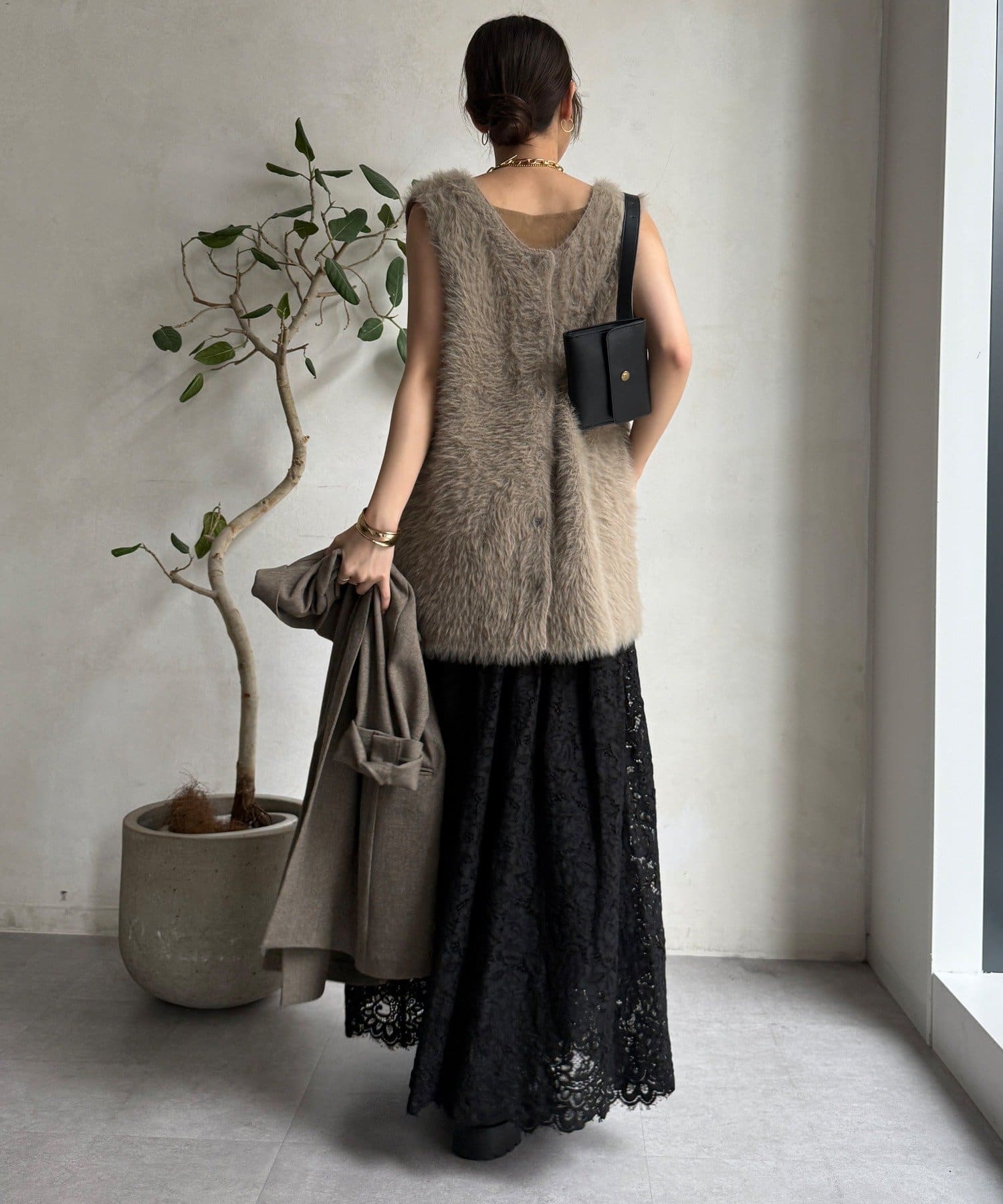 • DOUDOU(ドゥドゥ) 【WEB限定】前後2WAYシャギーニットベスト
