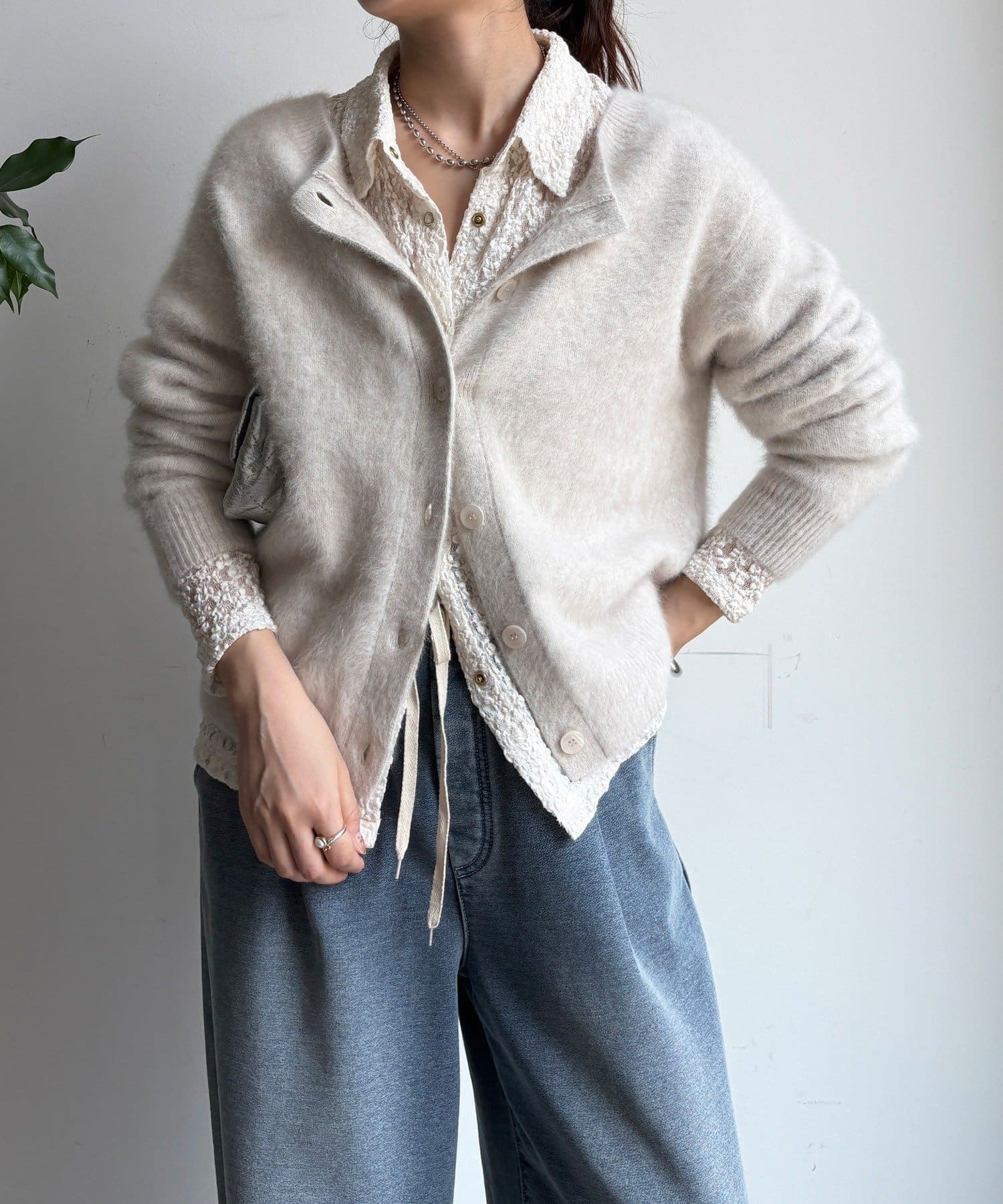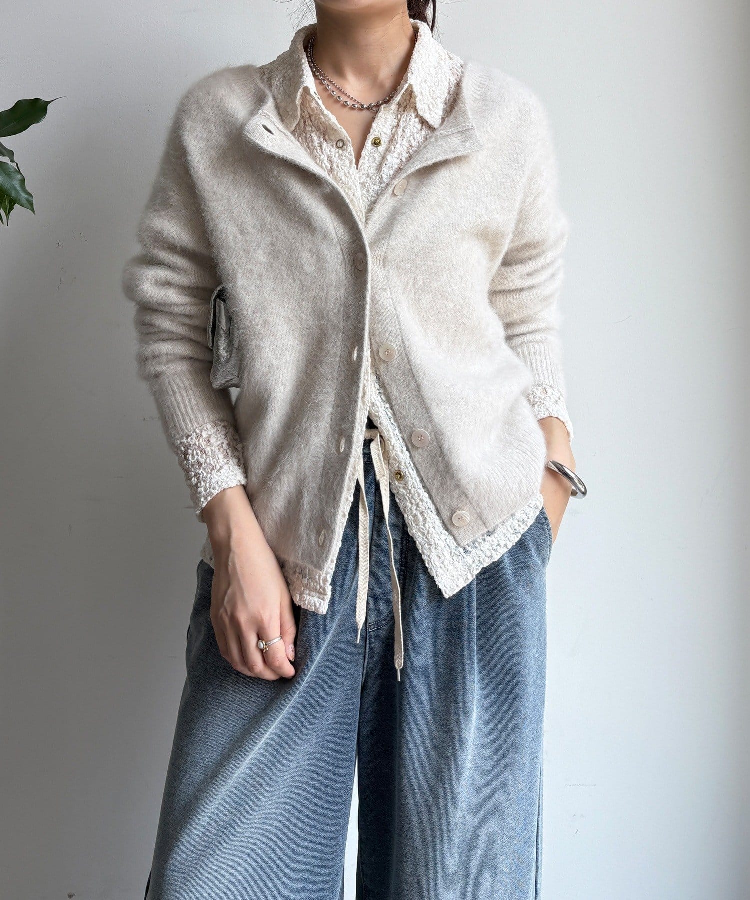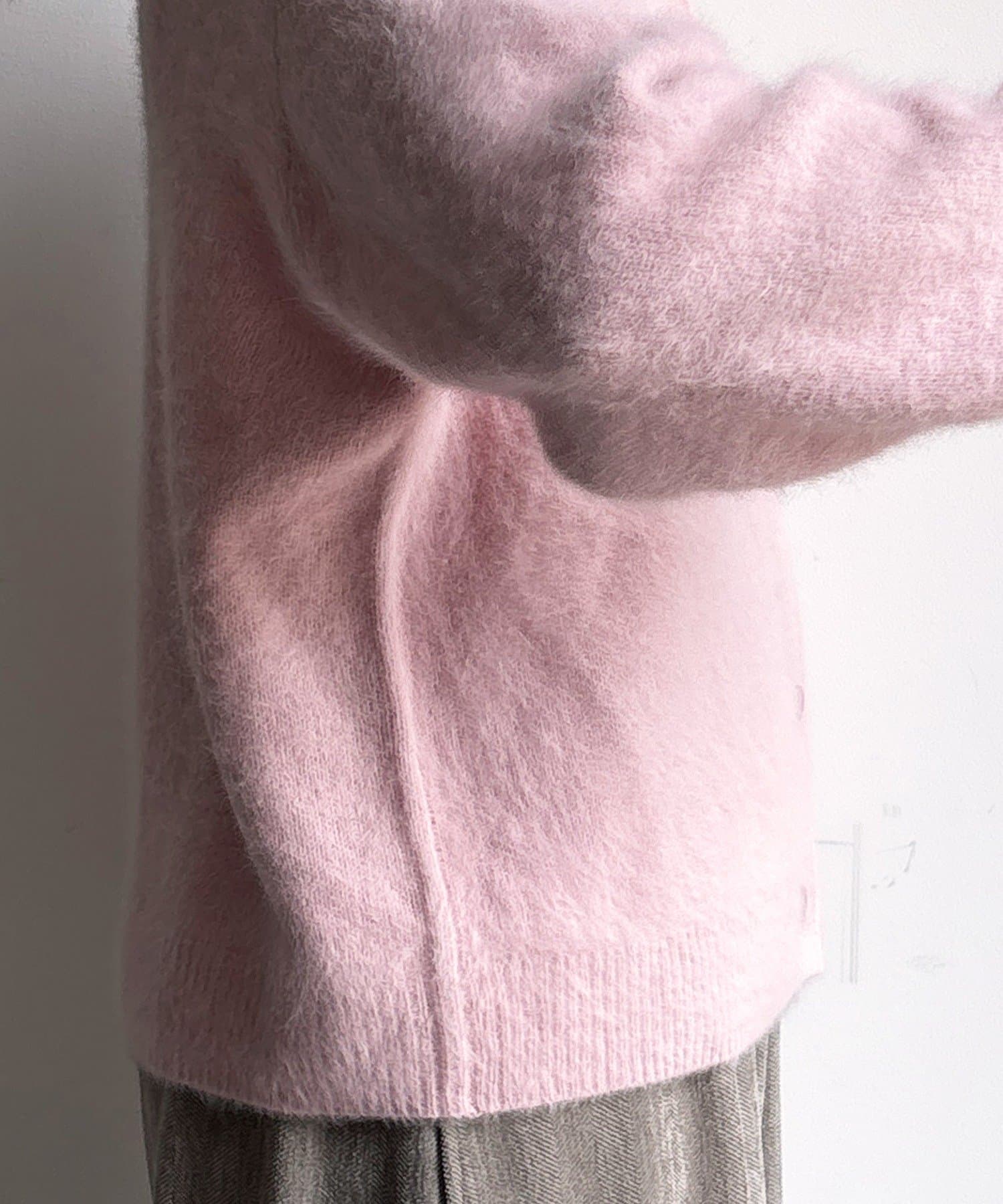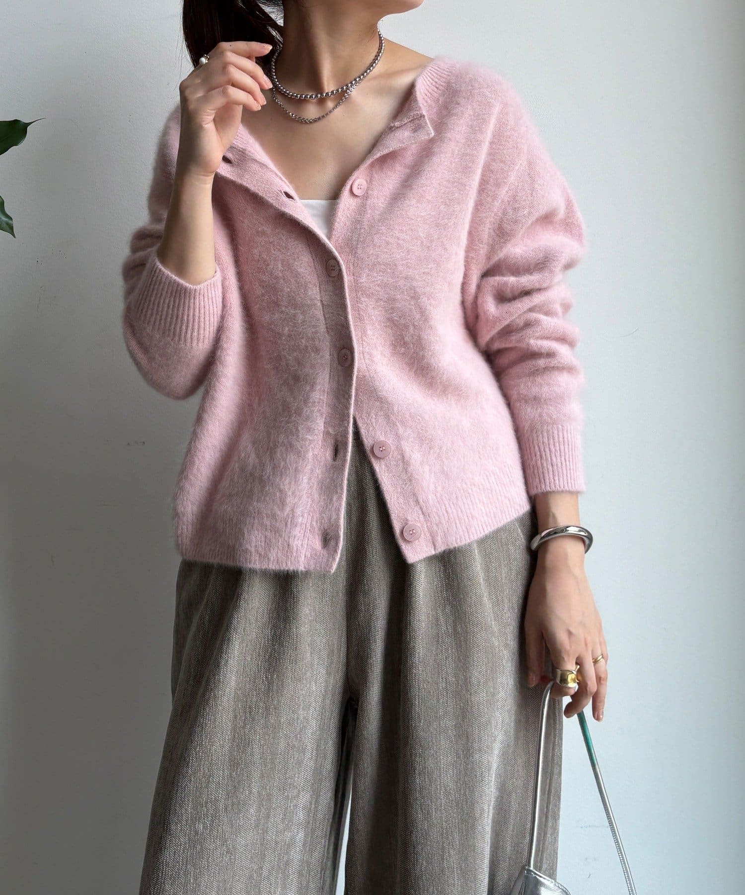 優しいカラーと飽きの来ないベーシックなデザインで、秋冬に長く重宝しそうなニットカーディガン。