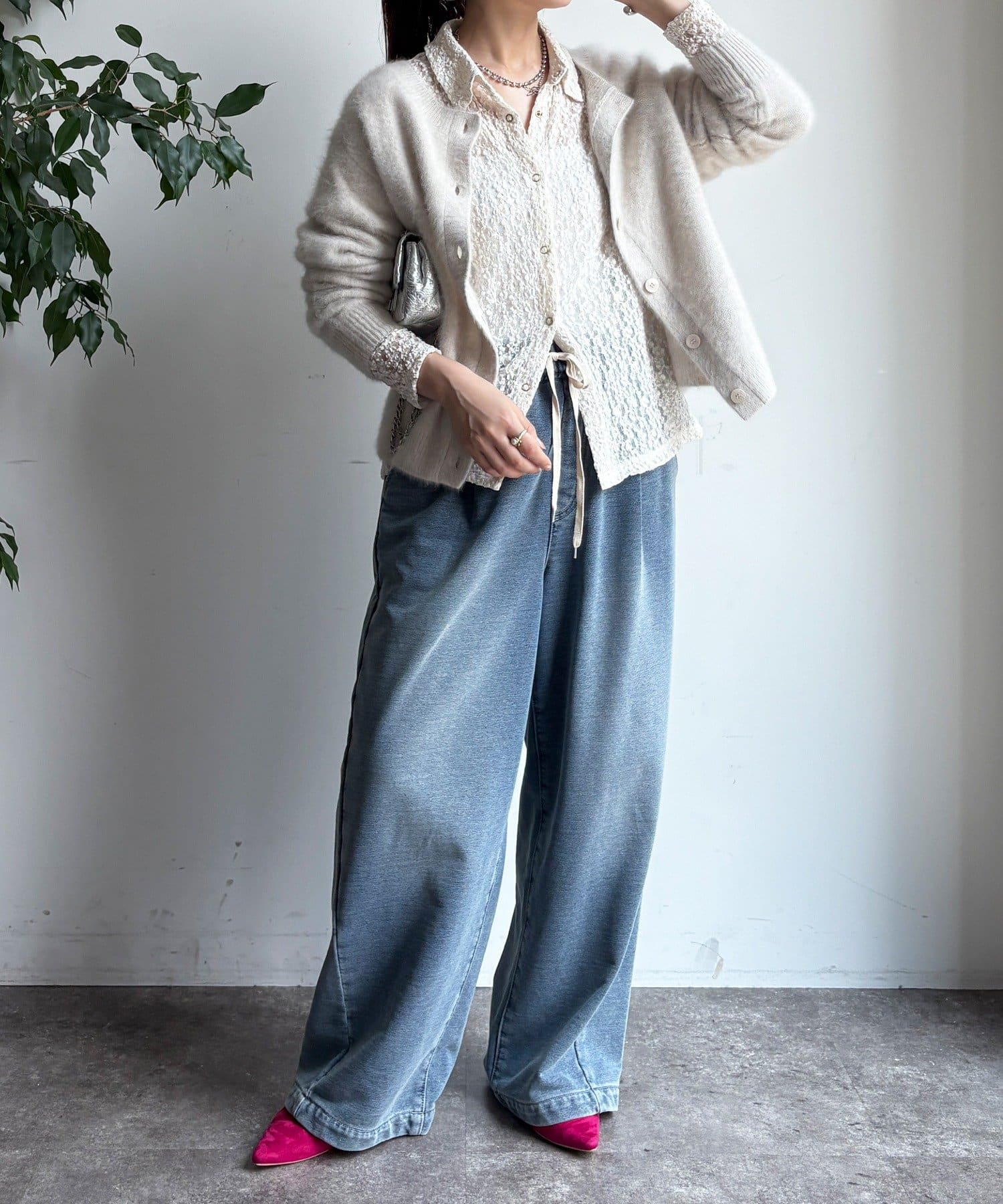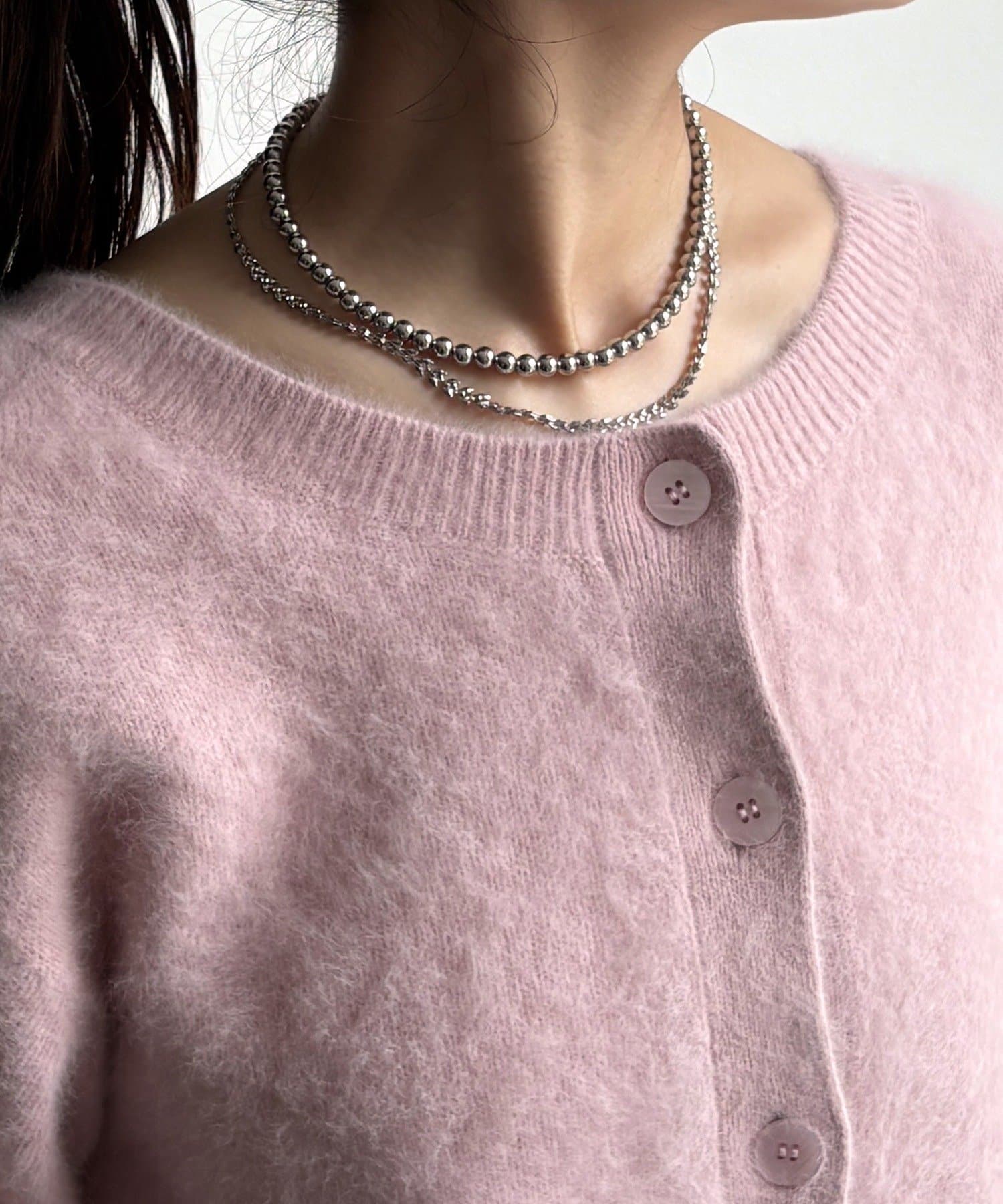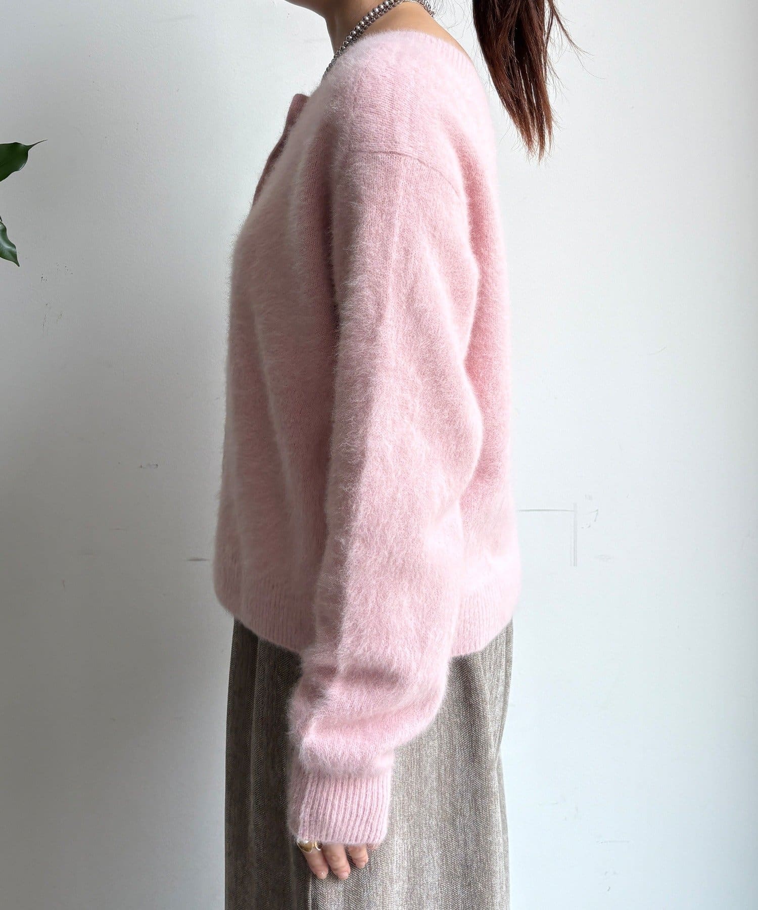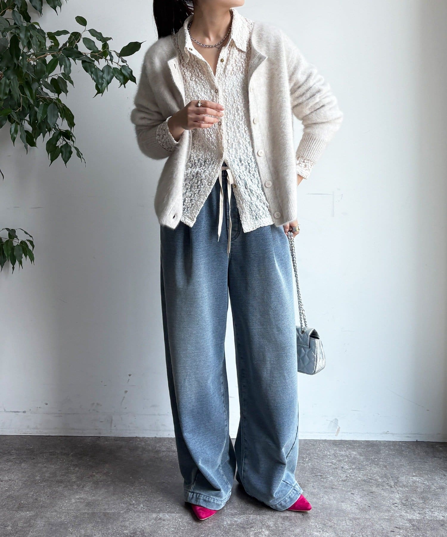 優しいカラーと飽きの来ないベーシックなデザインで、秋冬に長く重宝しそうなニットカーディガン。