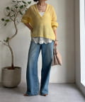 顔周りをすっきりと見せてくれるVネックデザイン。