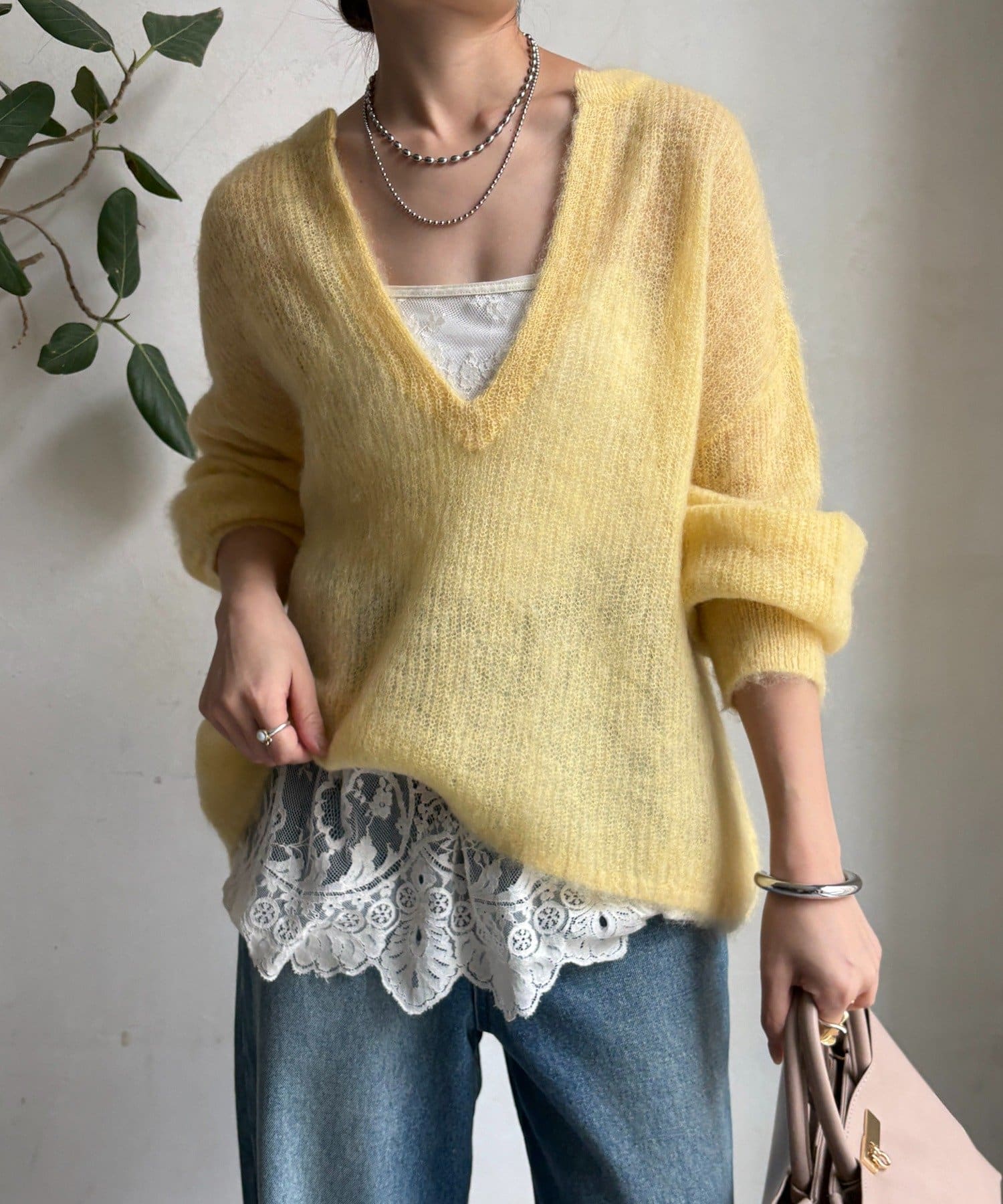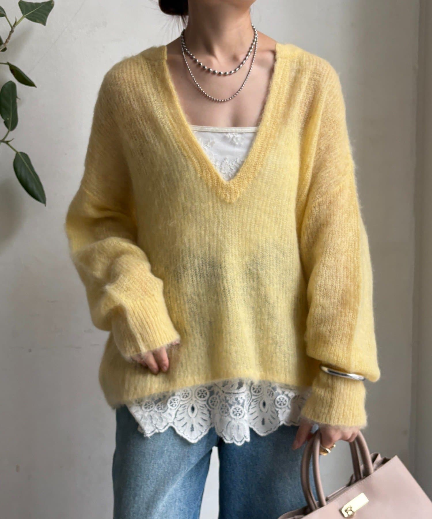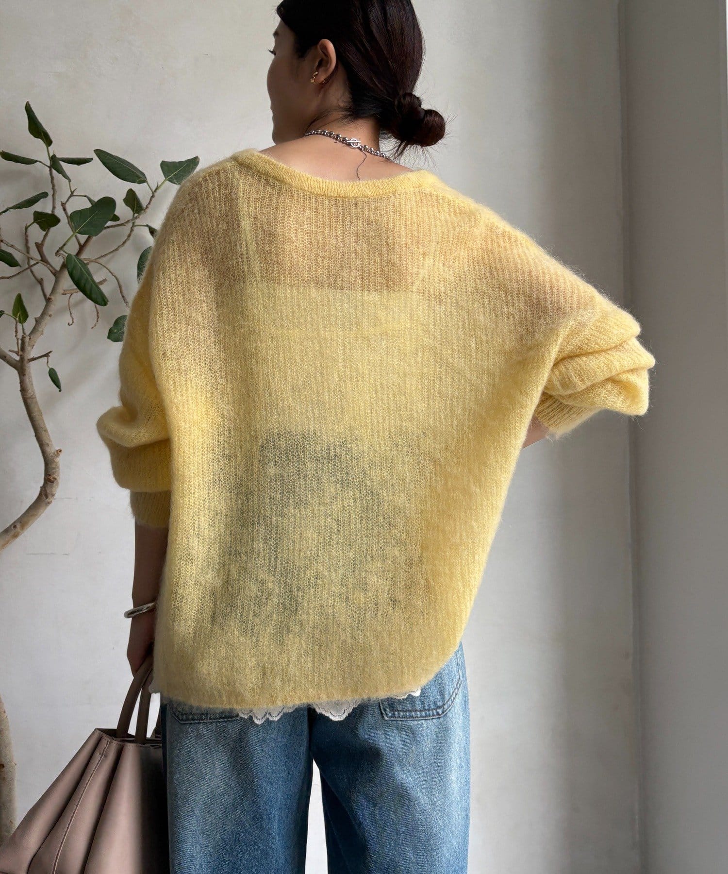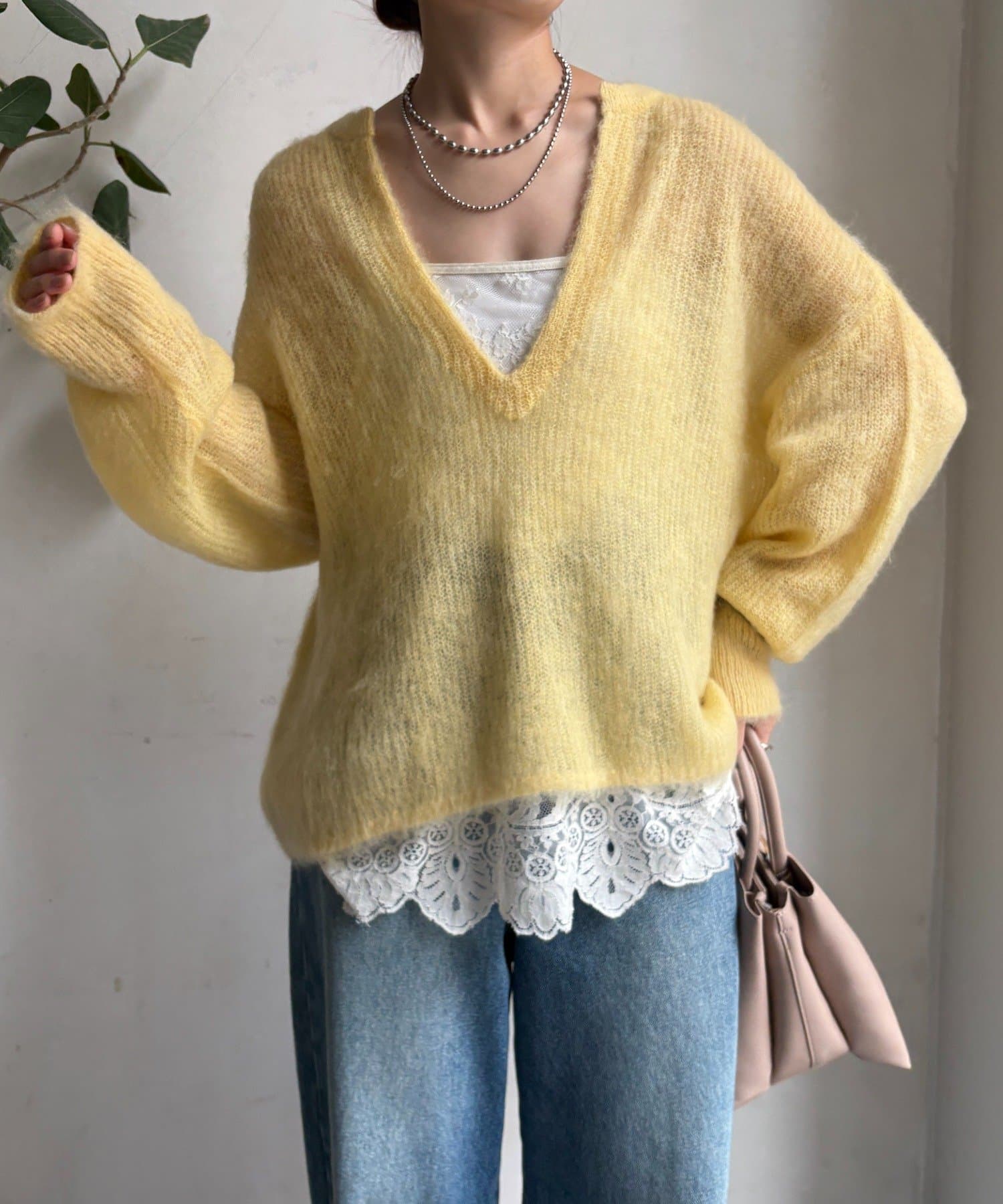 軽やかで、繊細な起毛感が魅力のモヘヤニットプルオーバー。