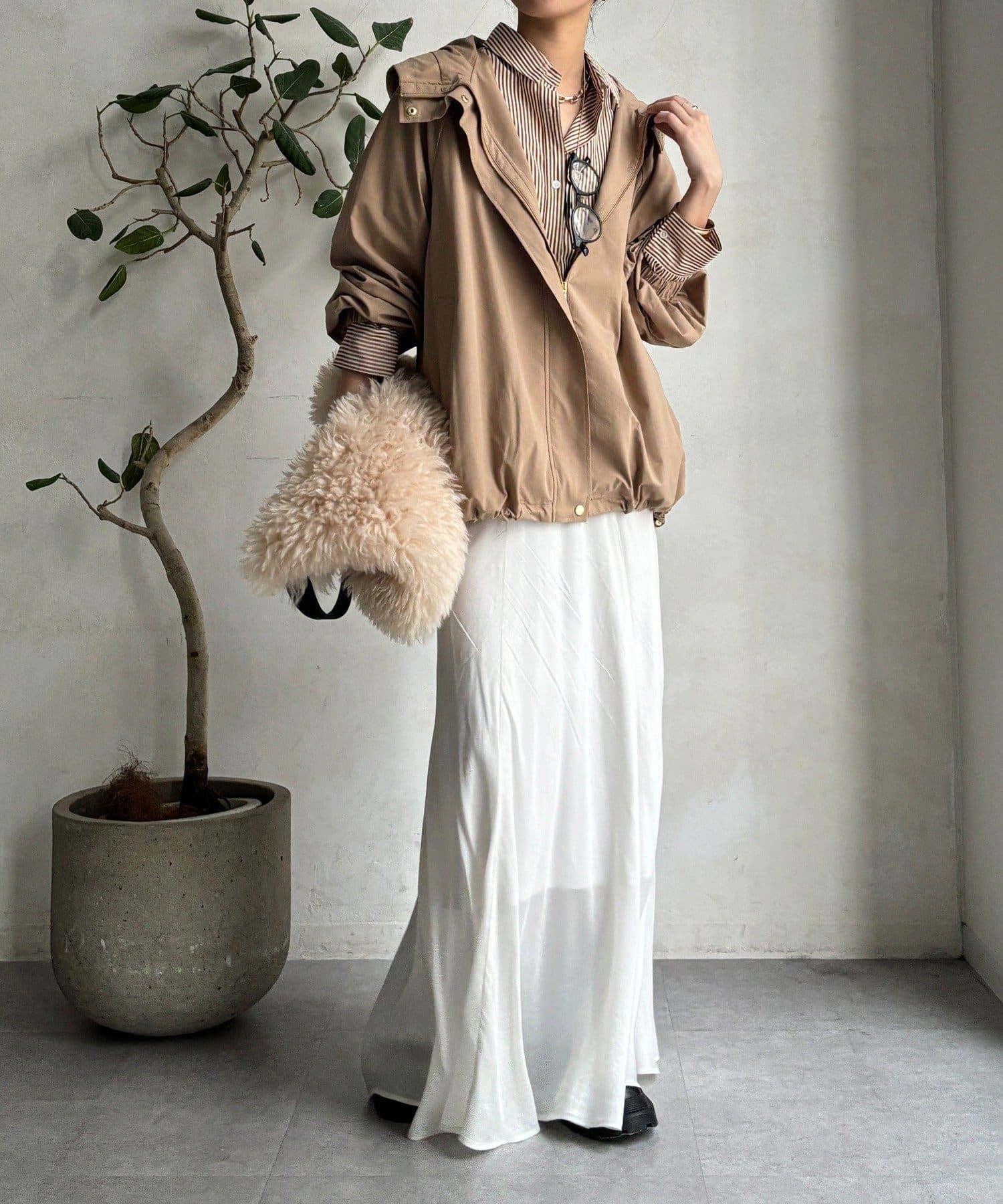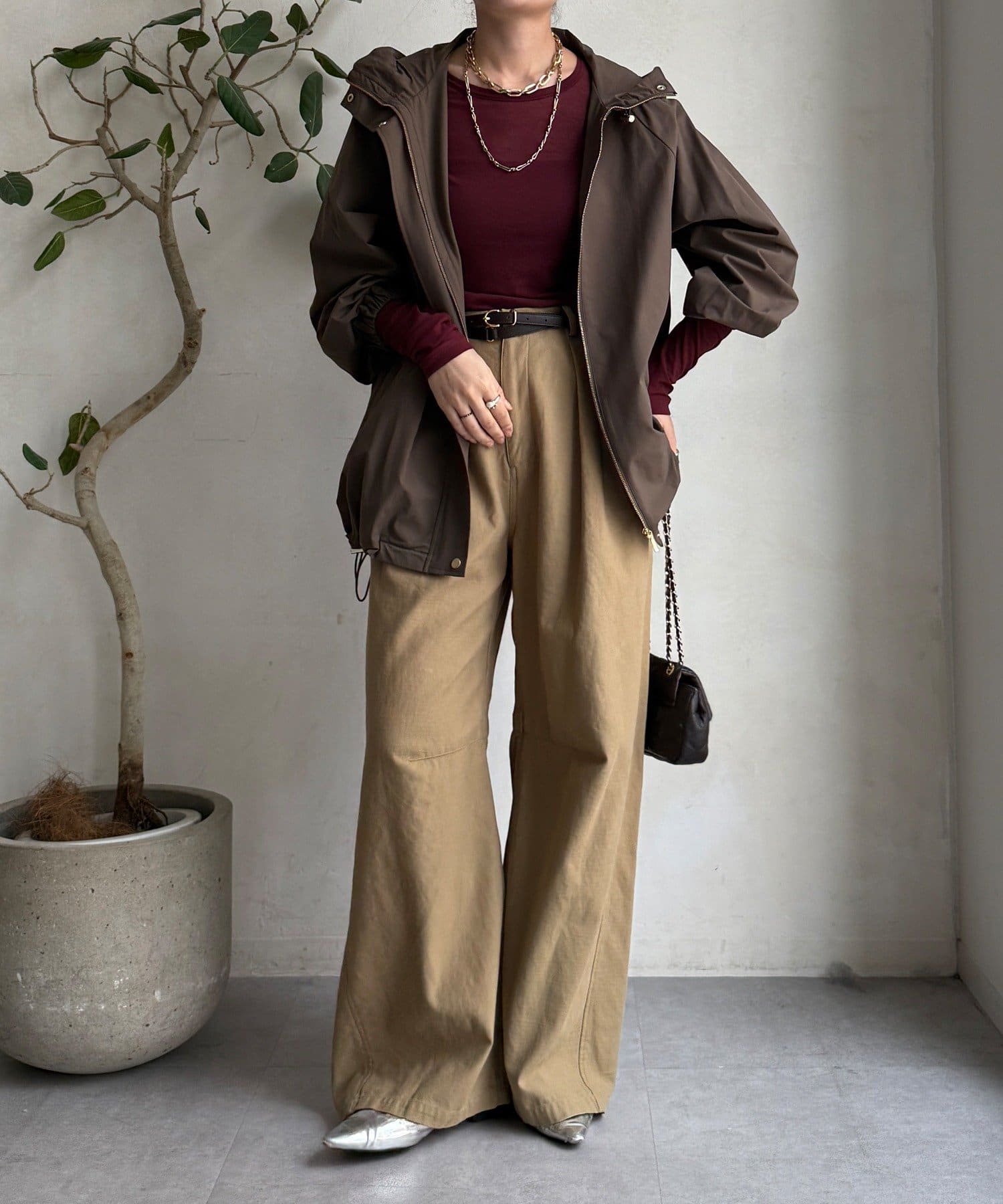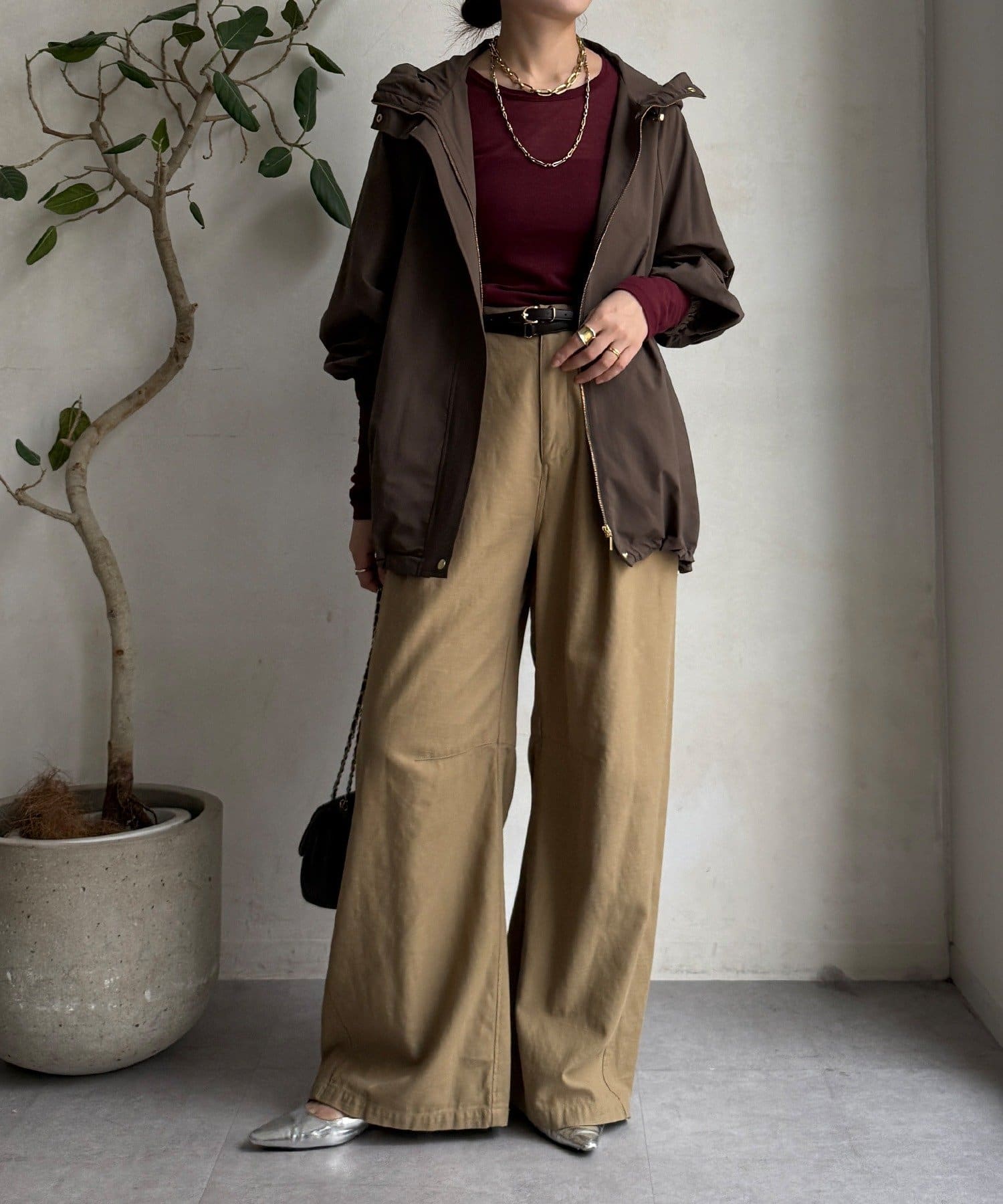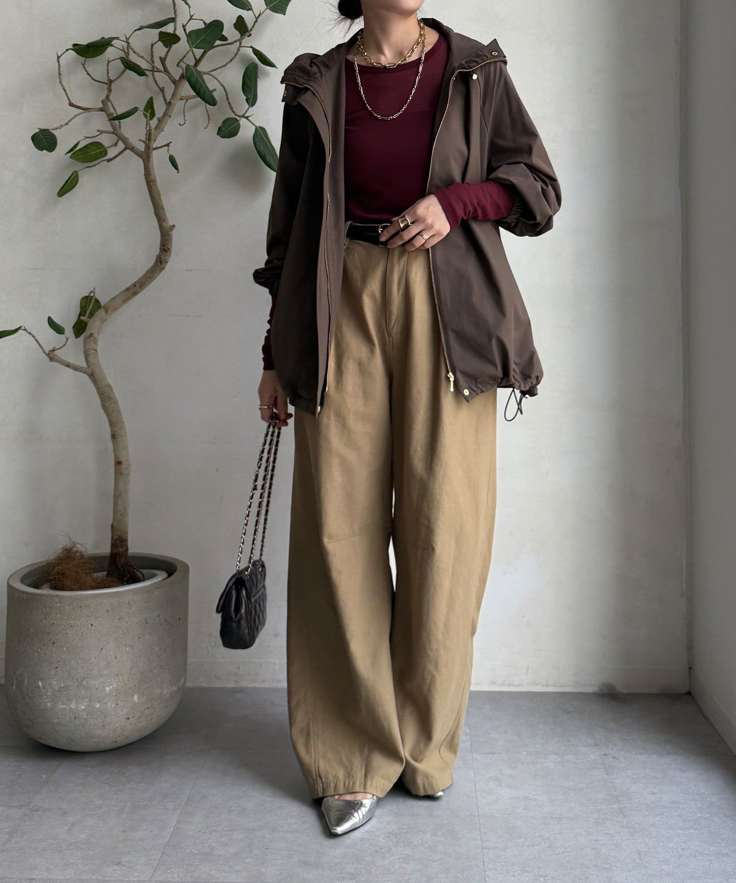 シルエットはミニマルで洗練されたデザインで、カジュアルすぎずキレイめスタイルにもマッチする、トレンドに左右されないベーシックな形な長く使えますよ。