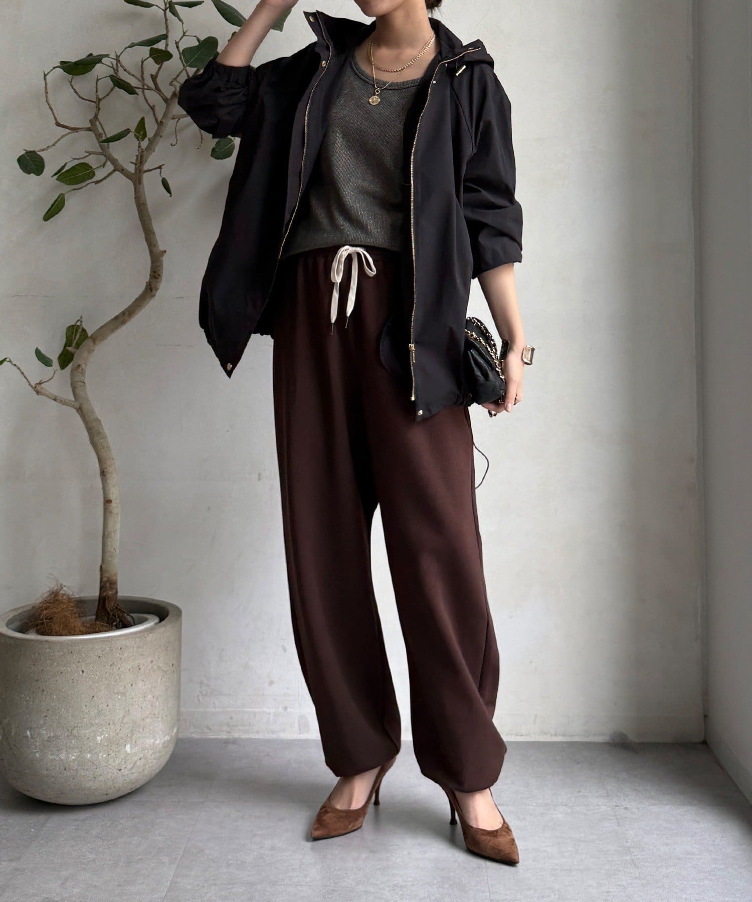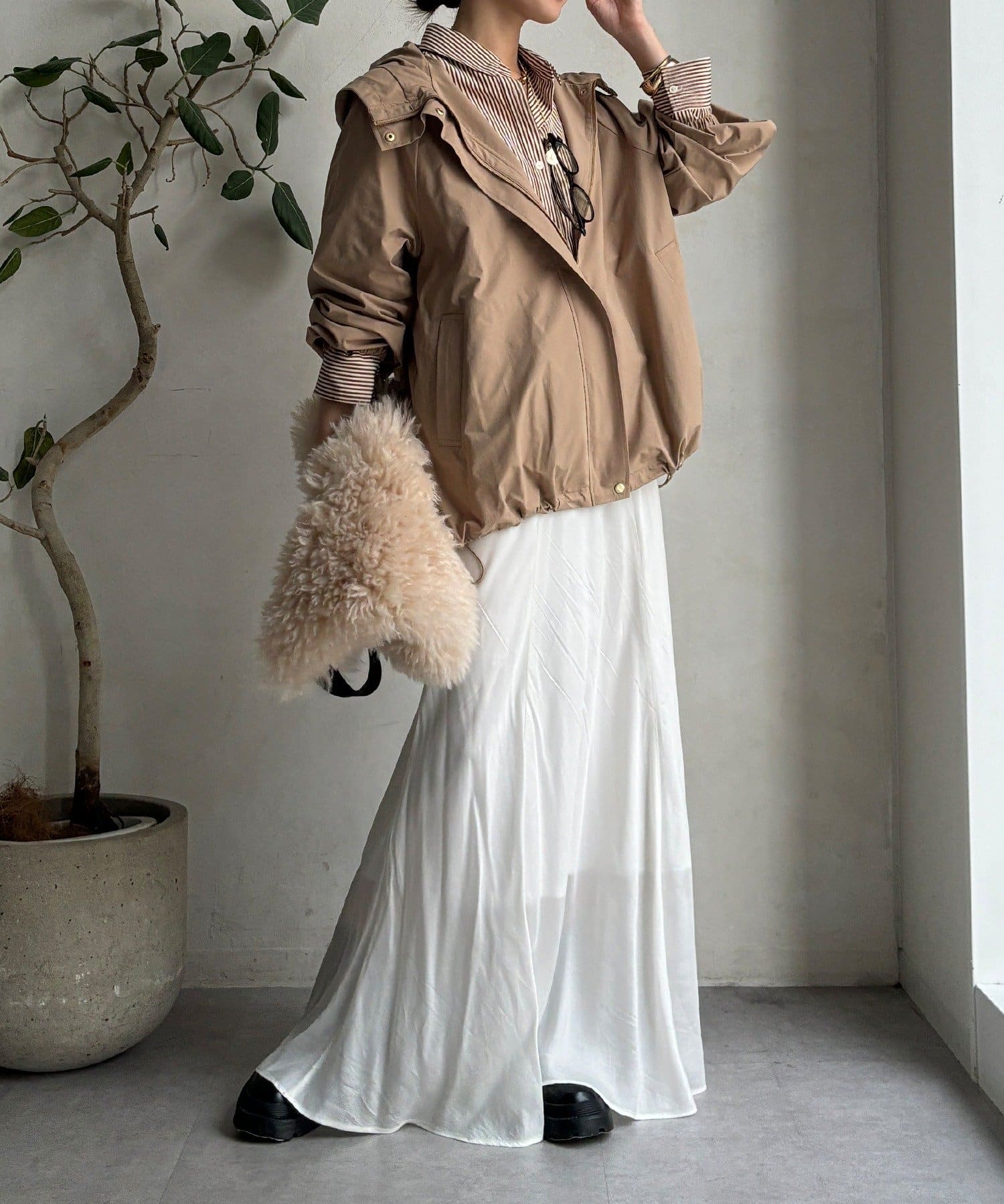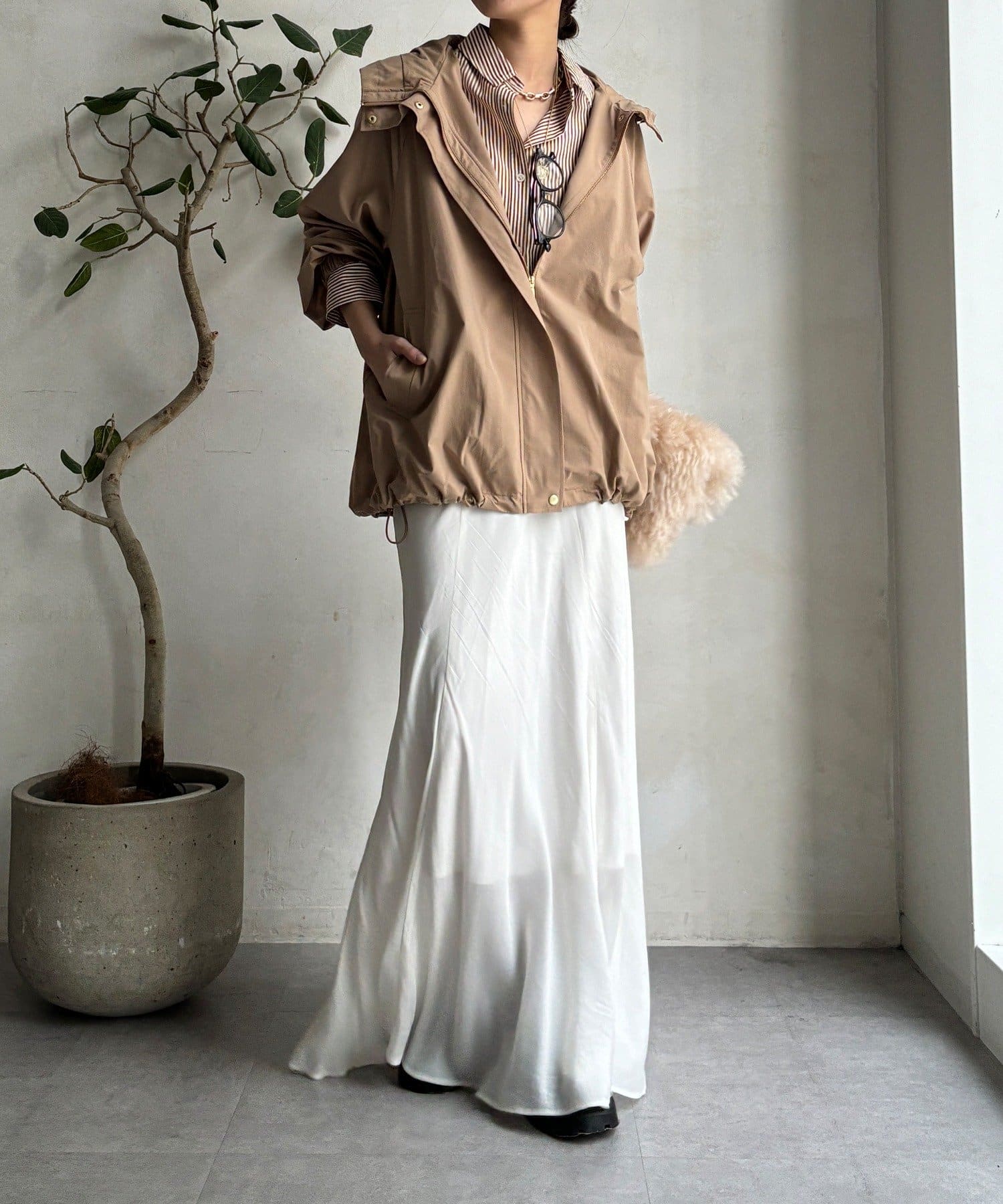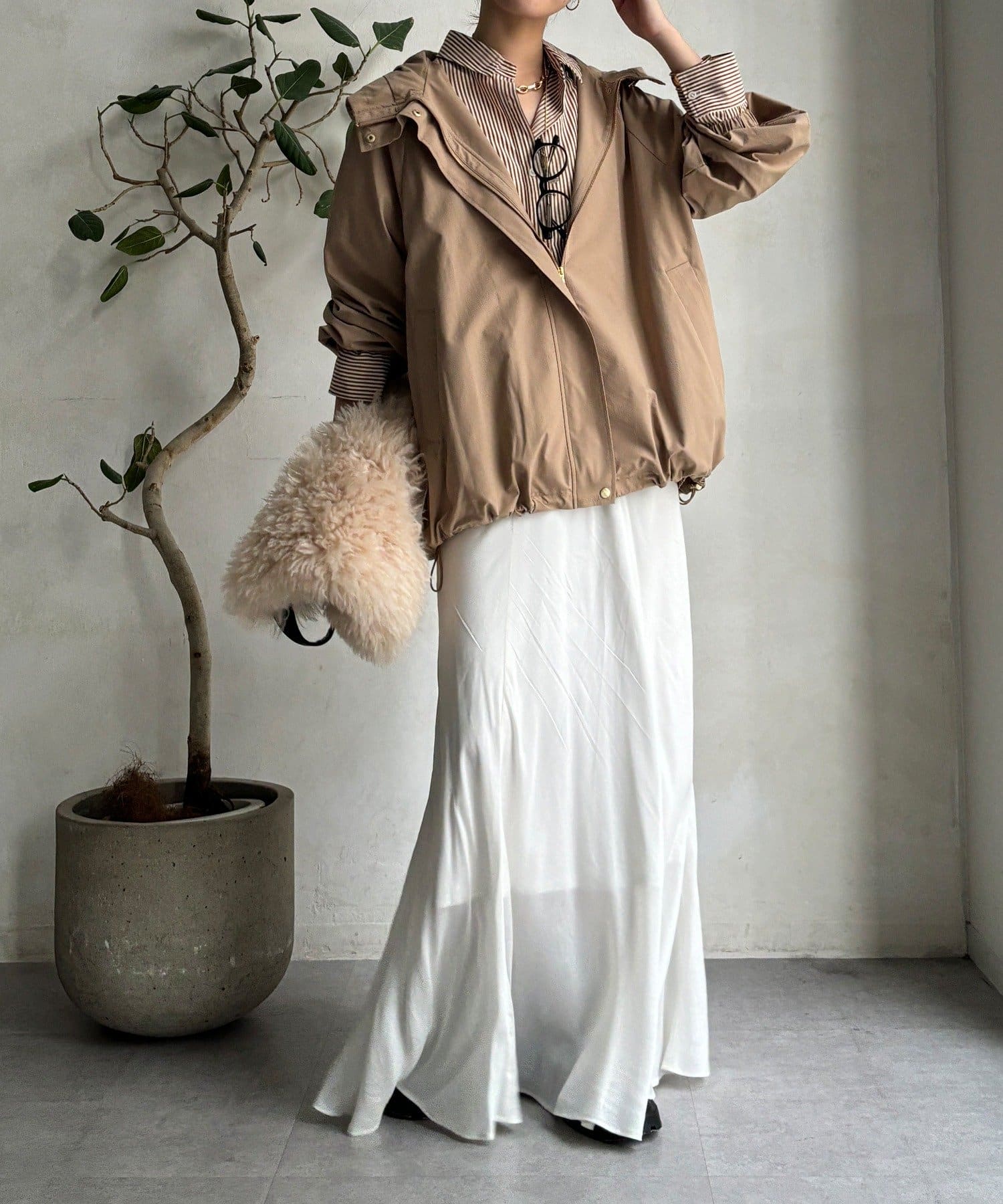 シルエットはミニマルで洗練されたデザインで、カジュアルすぎずキレイめスタイルにもマッチする、トレンドに左右されないベーシックな形な長く使えますよ。