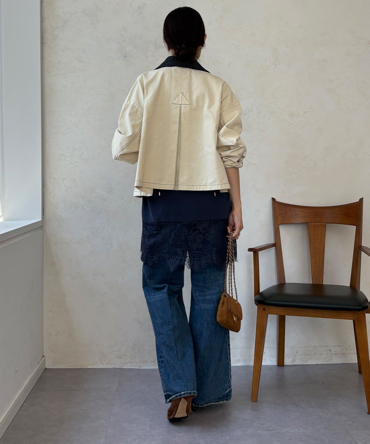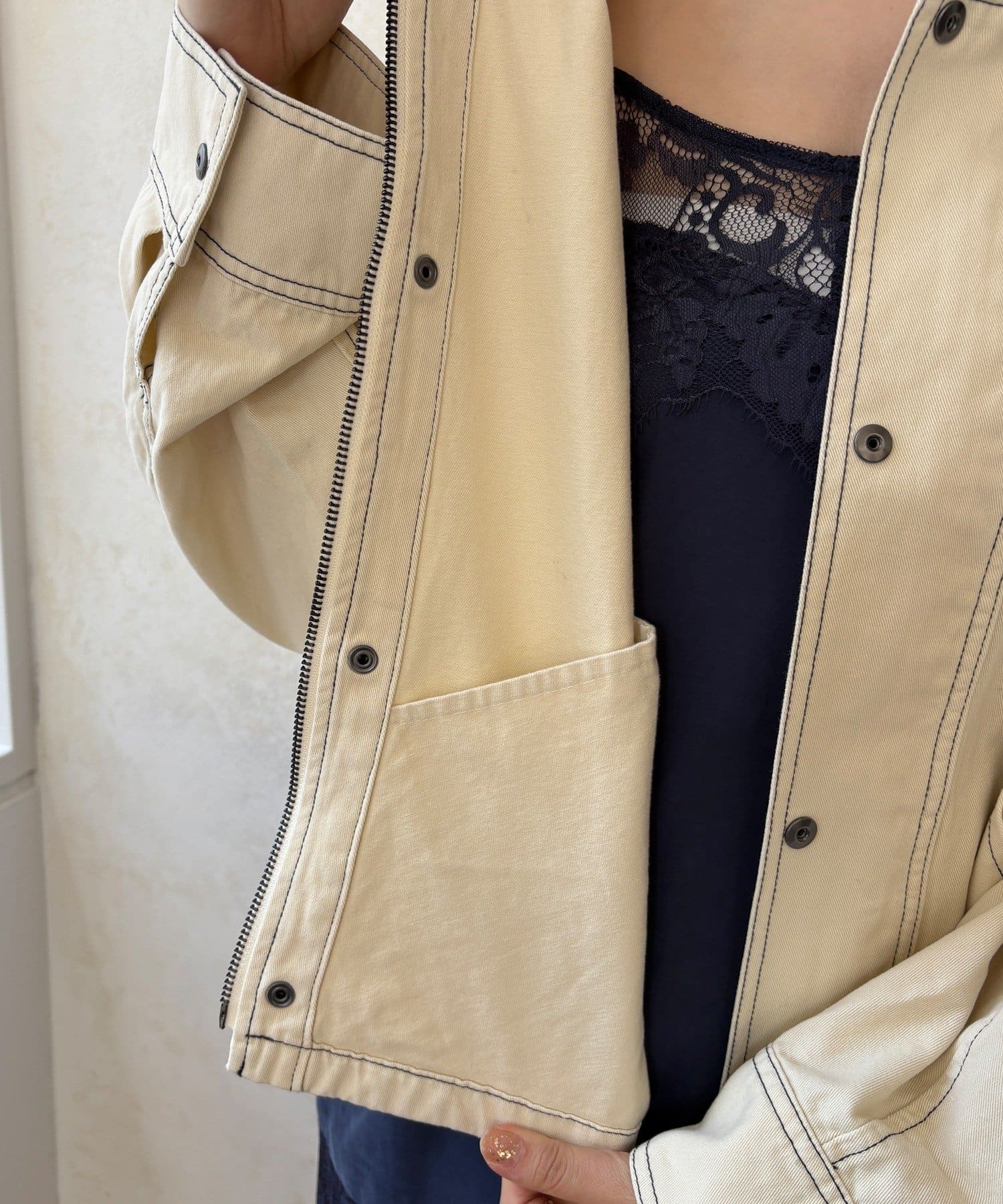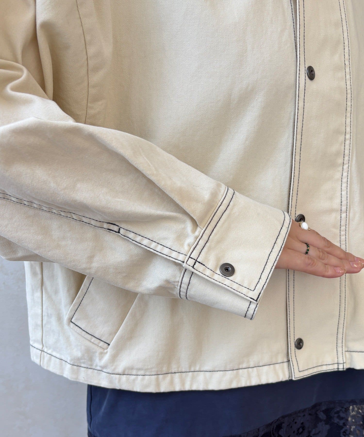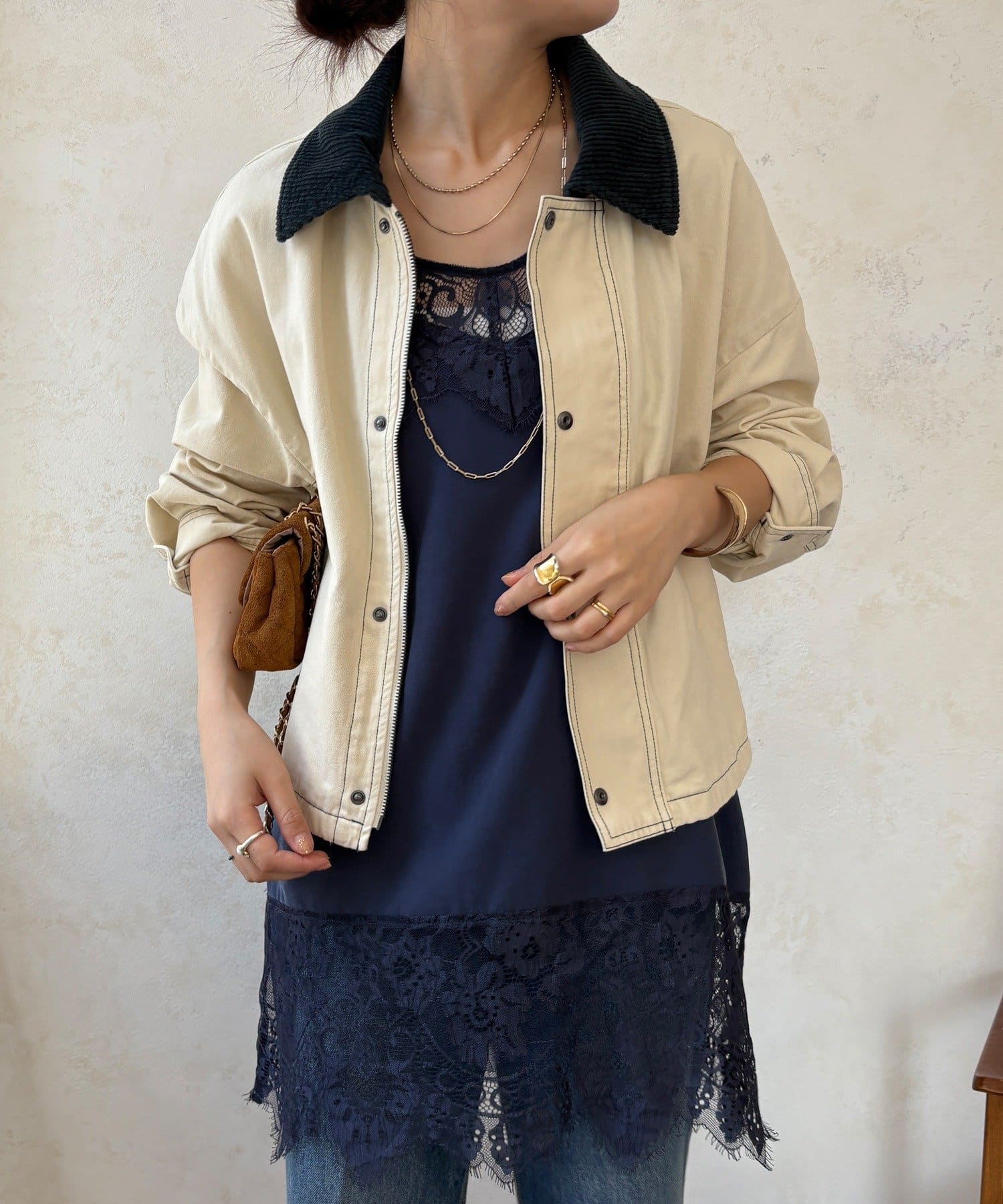 ステッチがアクセント!コーデュロイ襟で仕上げた大人のジャケット