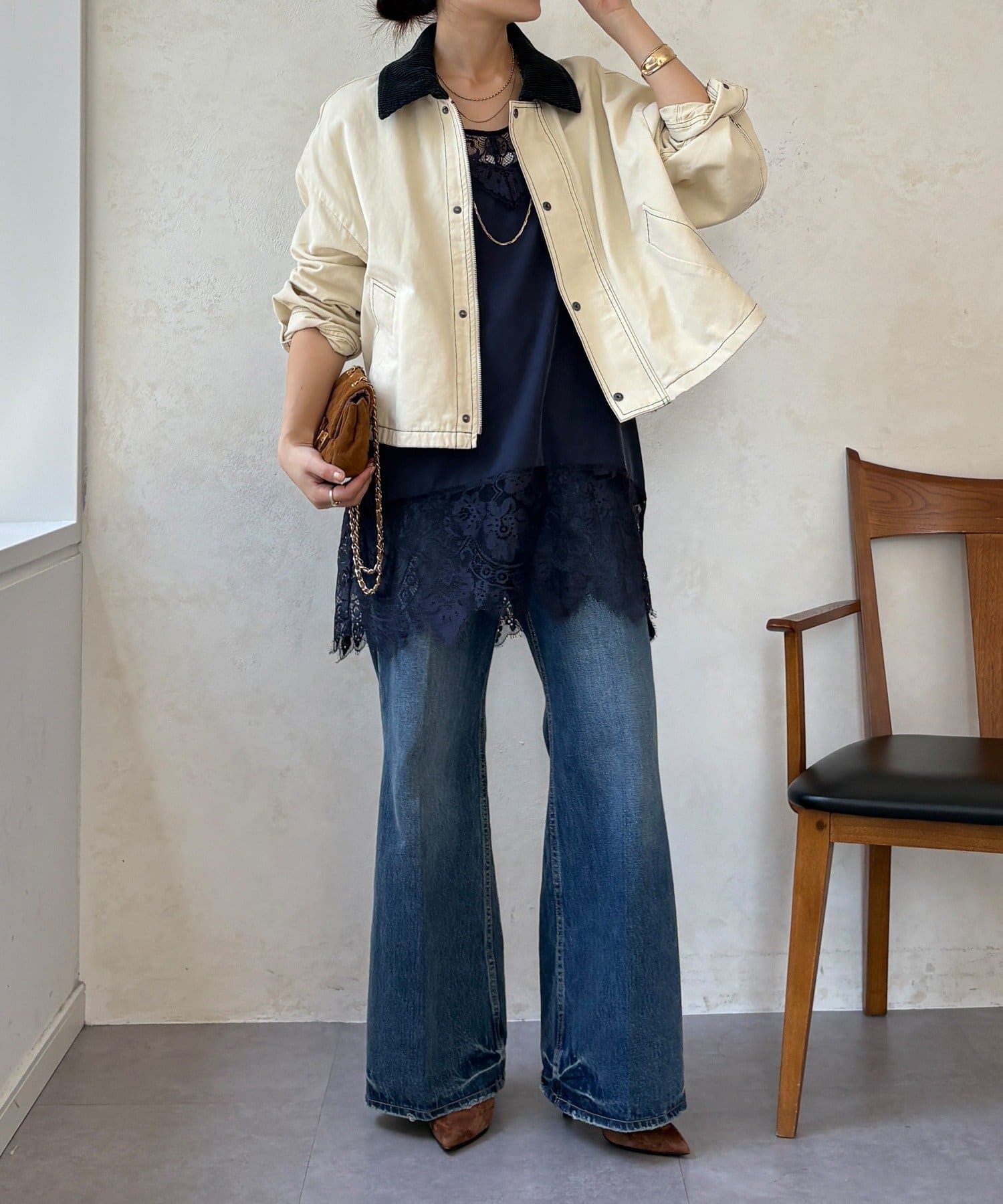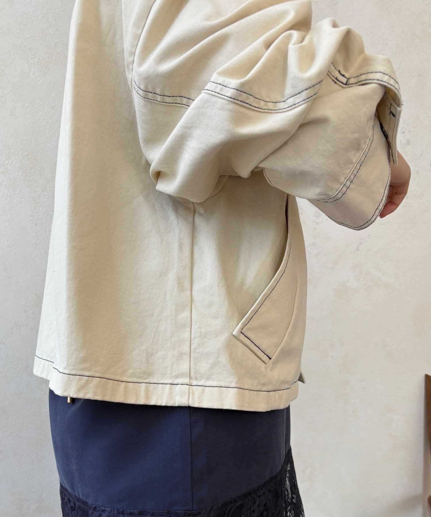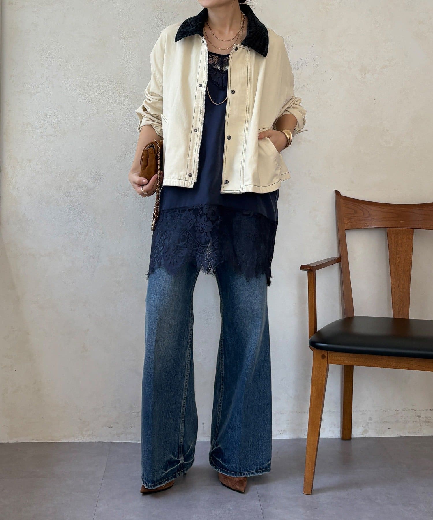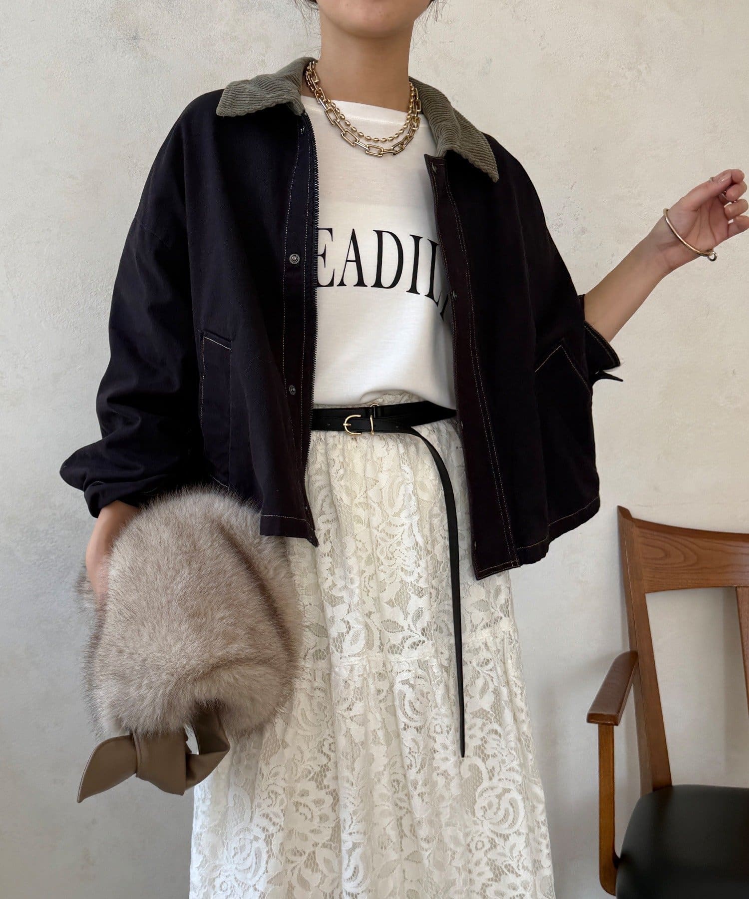 ステッチがアクセント!コーデュロイ襟で仕上げた大人のジャケット