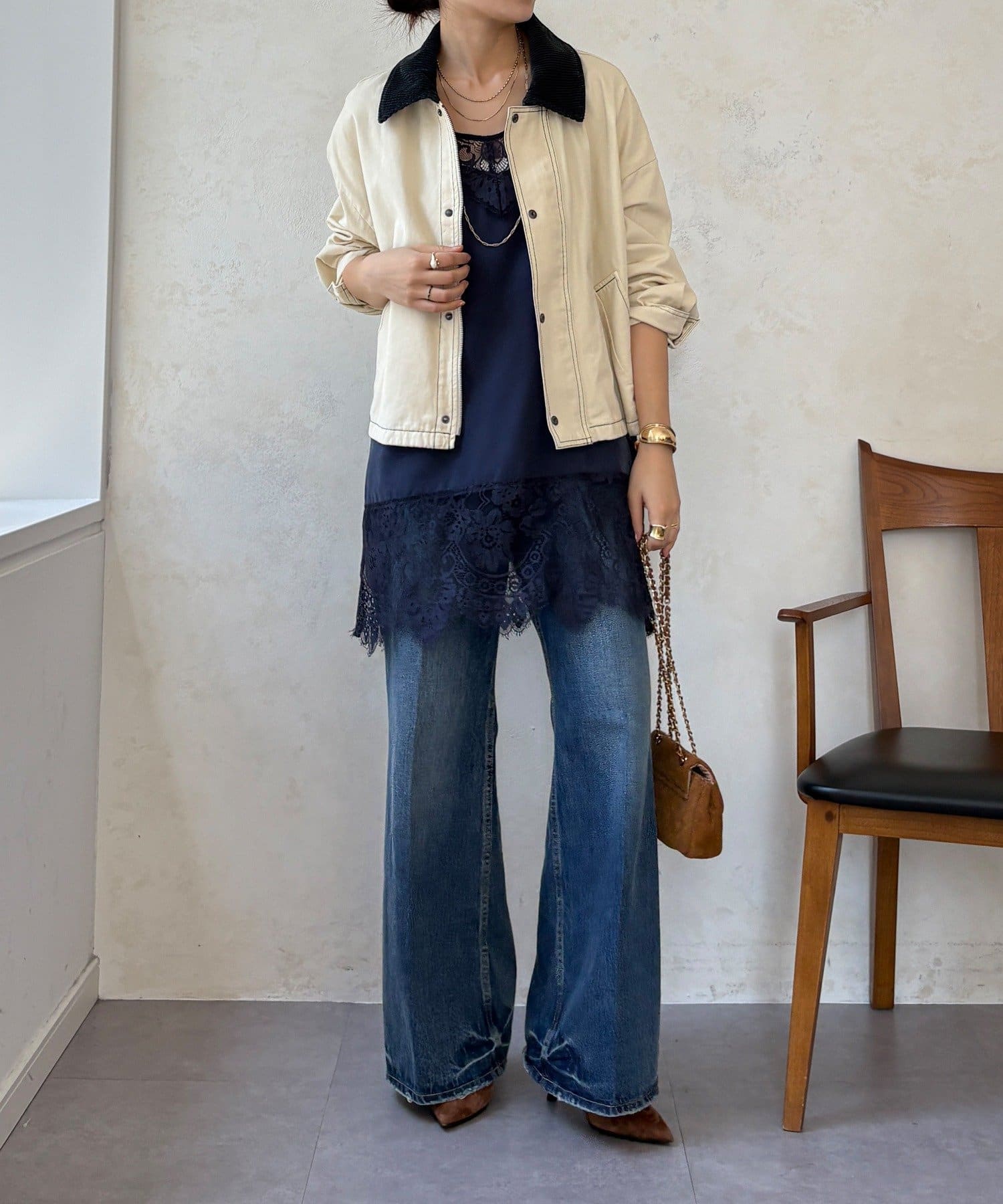 ※着用、お取り扱いの際は、商品についている品質表示とアテンションタグを必ずご確認下さい。シンプルなTシャツやタンクトップに合わせるだけで、こなれたレイヤードスタイルが完成。