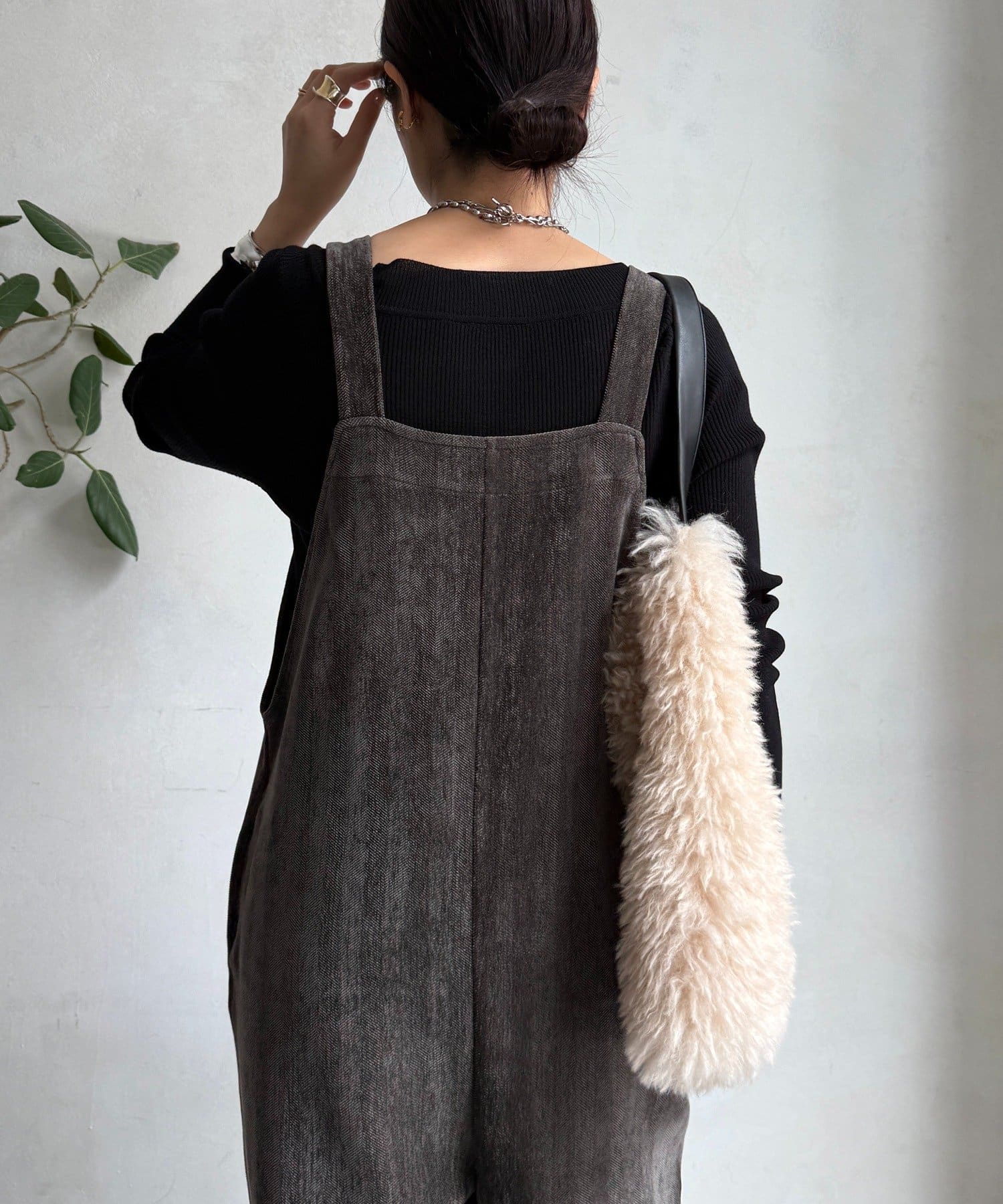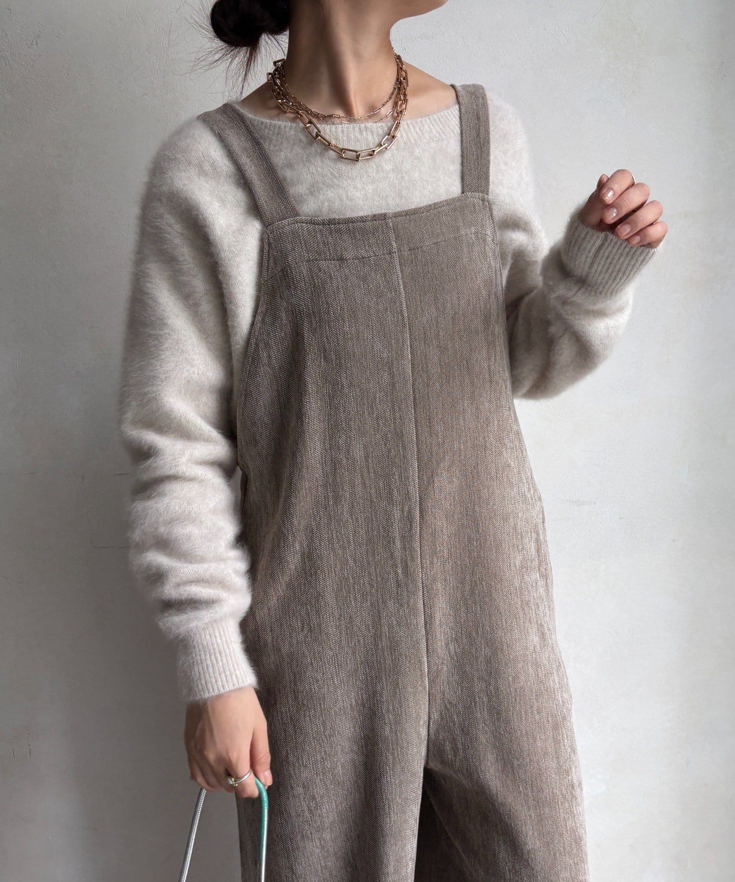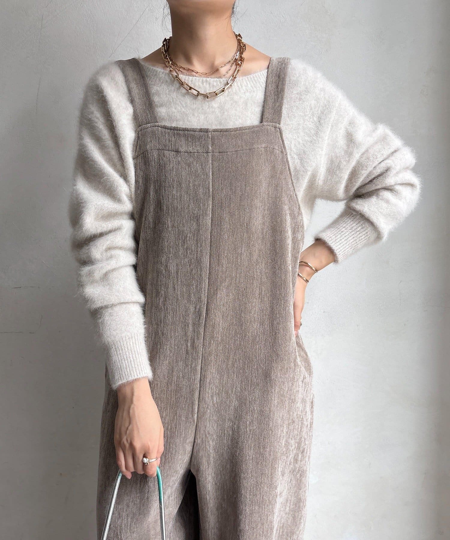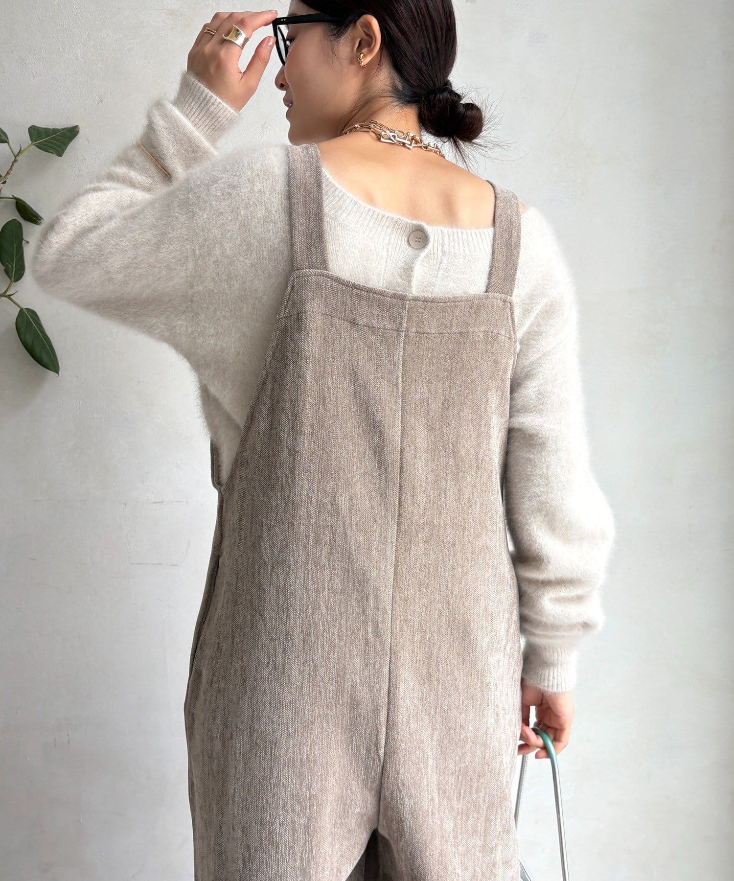 ヘリンボーンで魅せる、大人のこなれ感サロペット