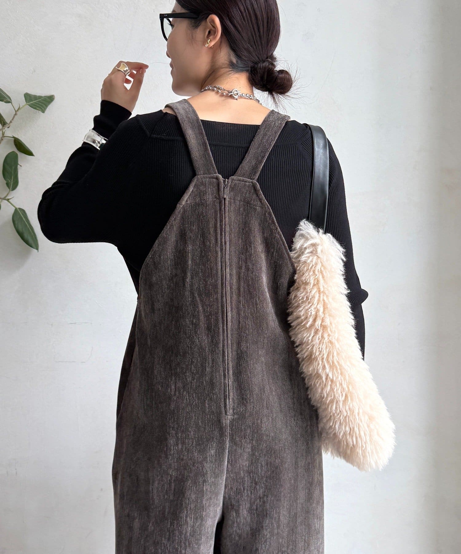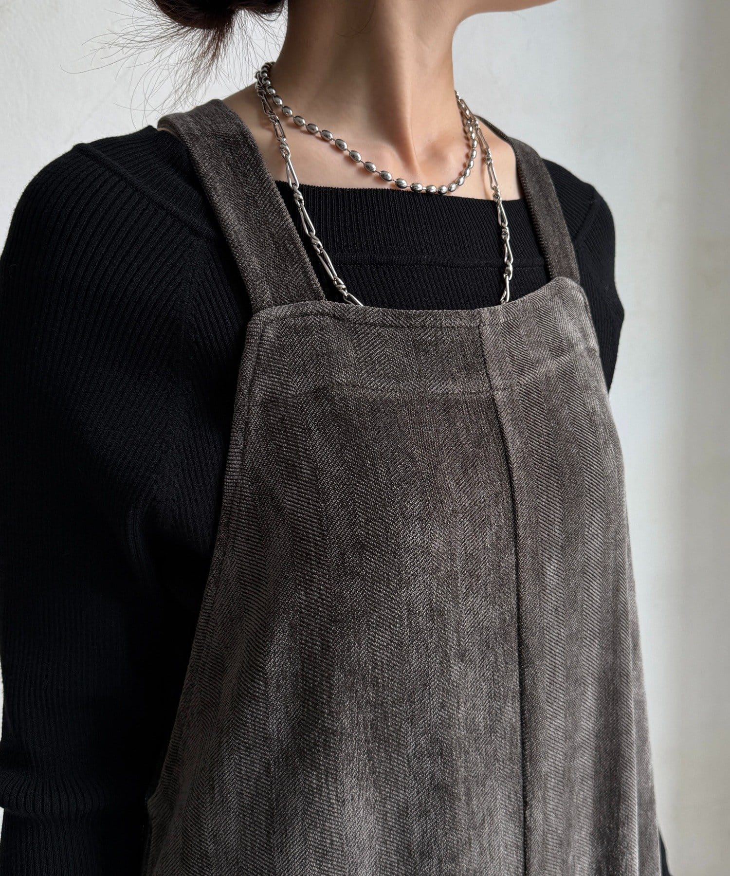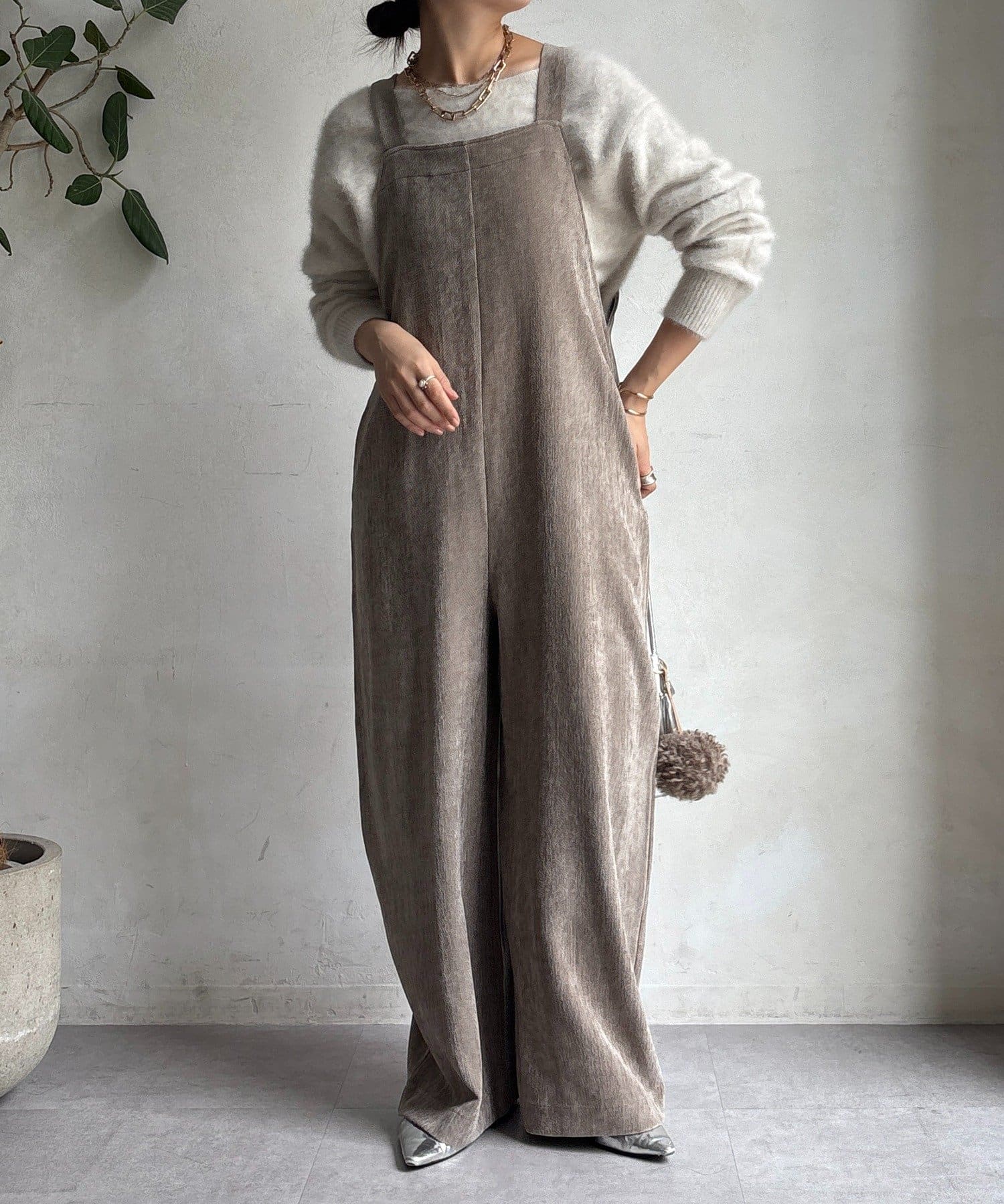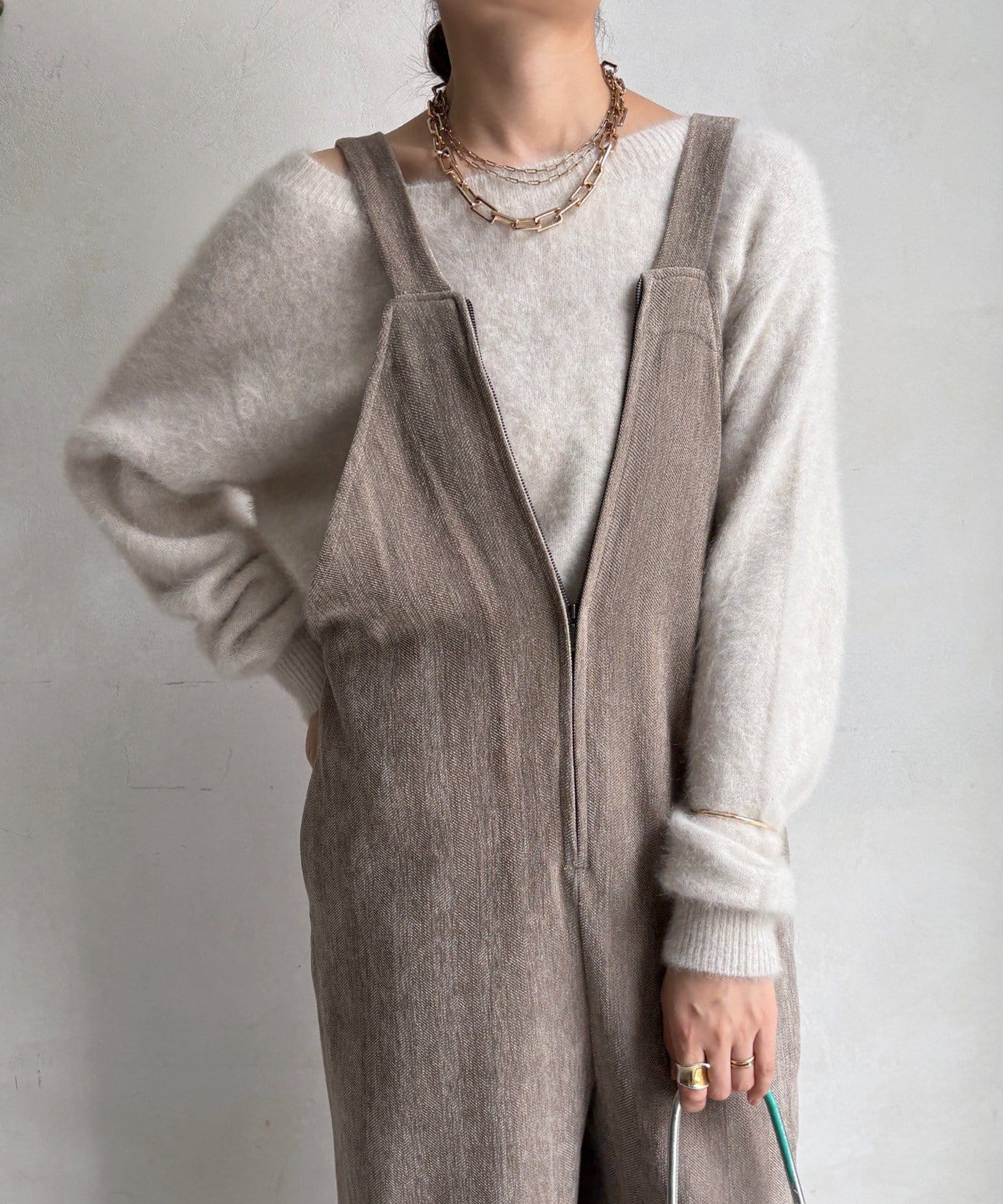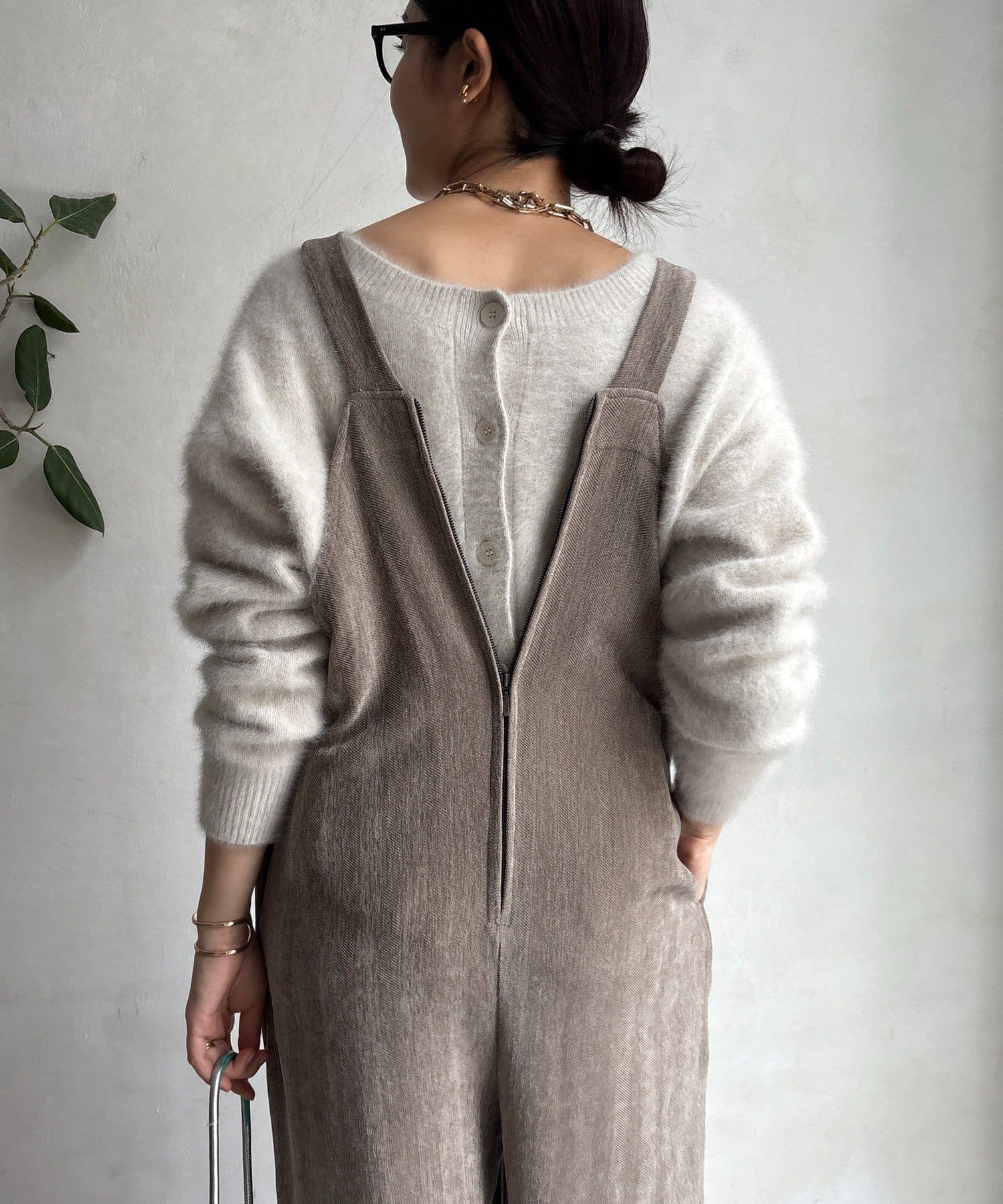 ヘリンボーンで魅せる、大人のこなれ感サロペット