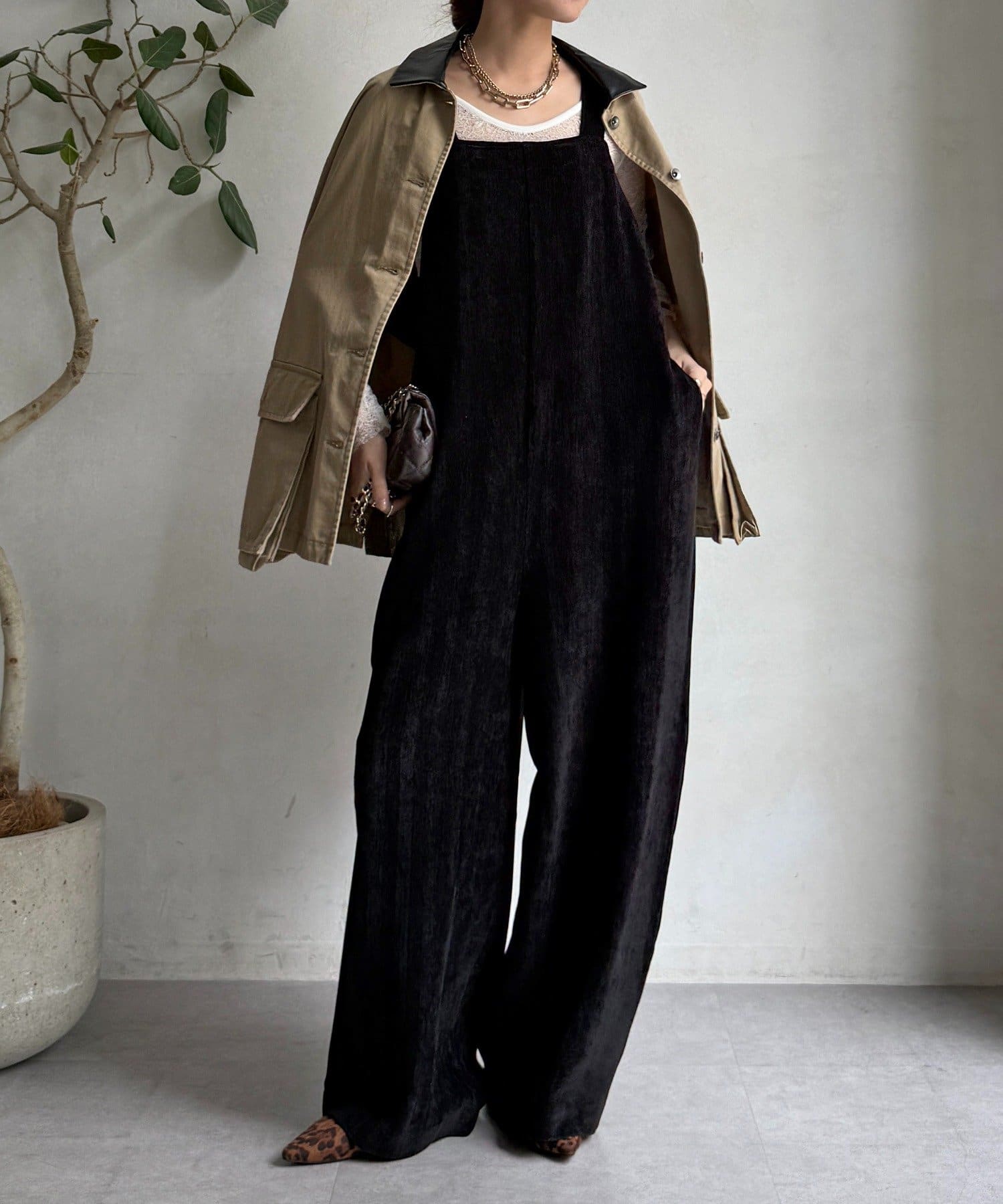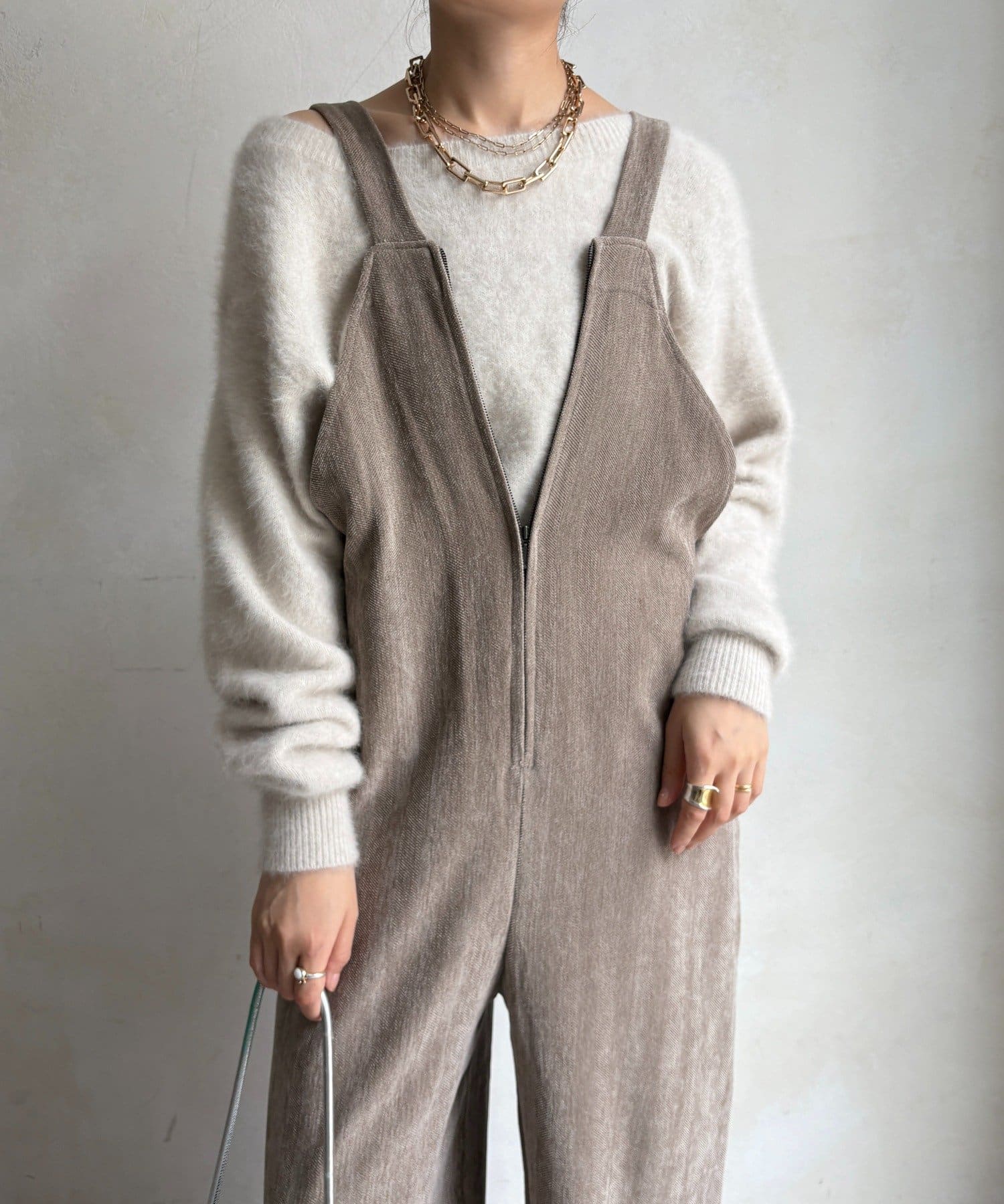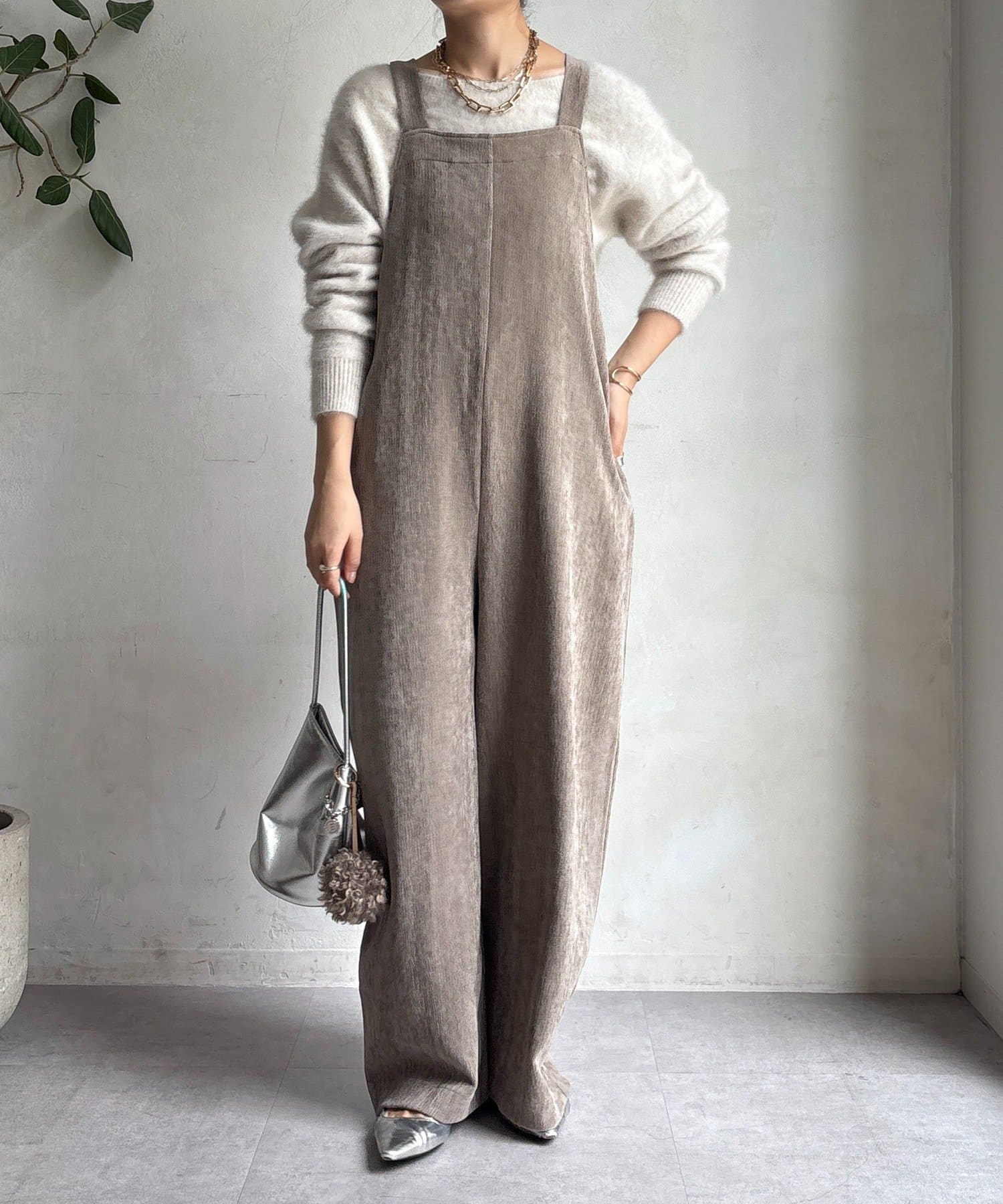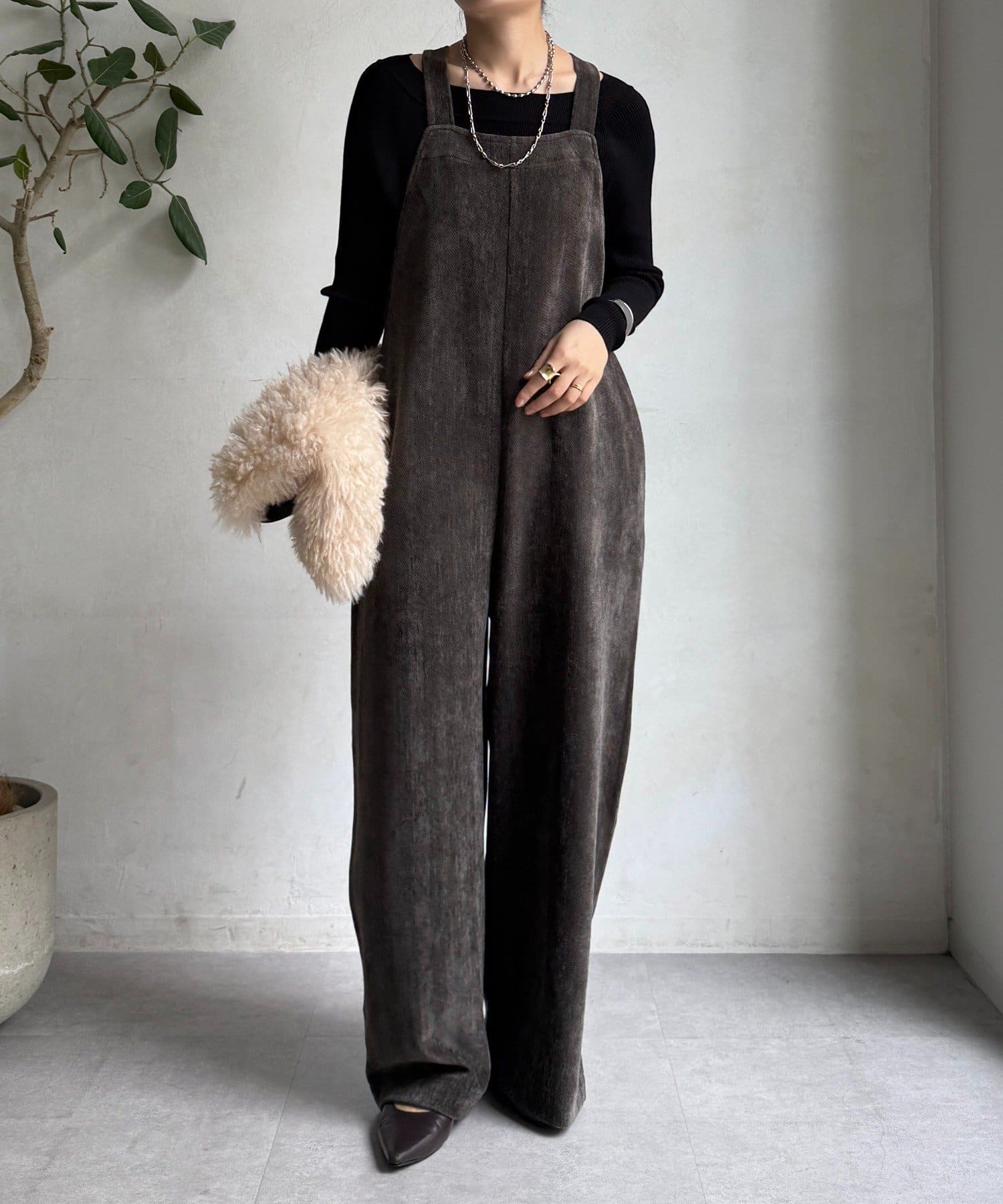 ヘリンボーンで魅せる、大人のこなれ感サロペット