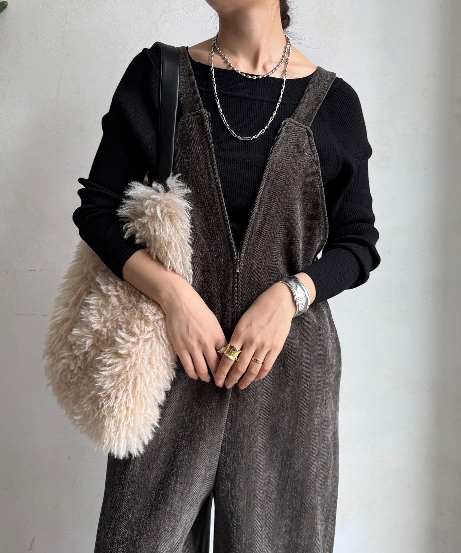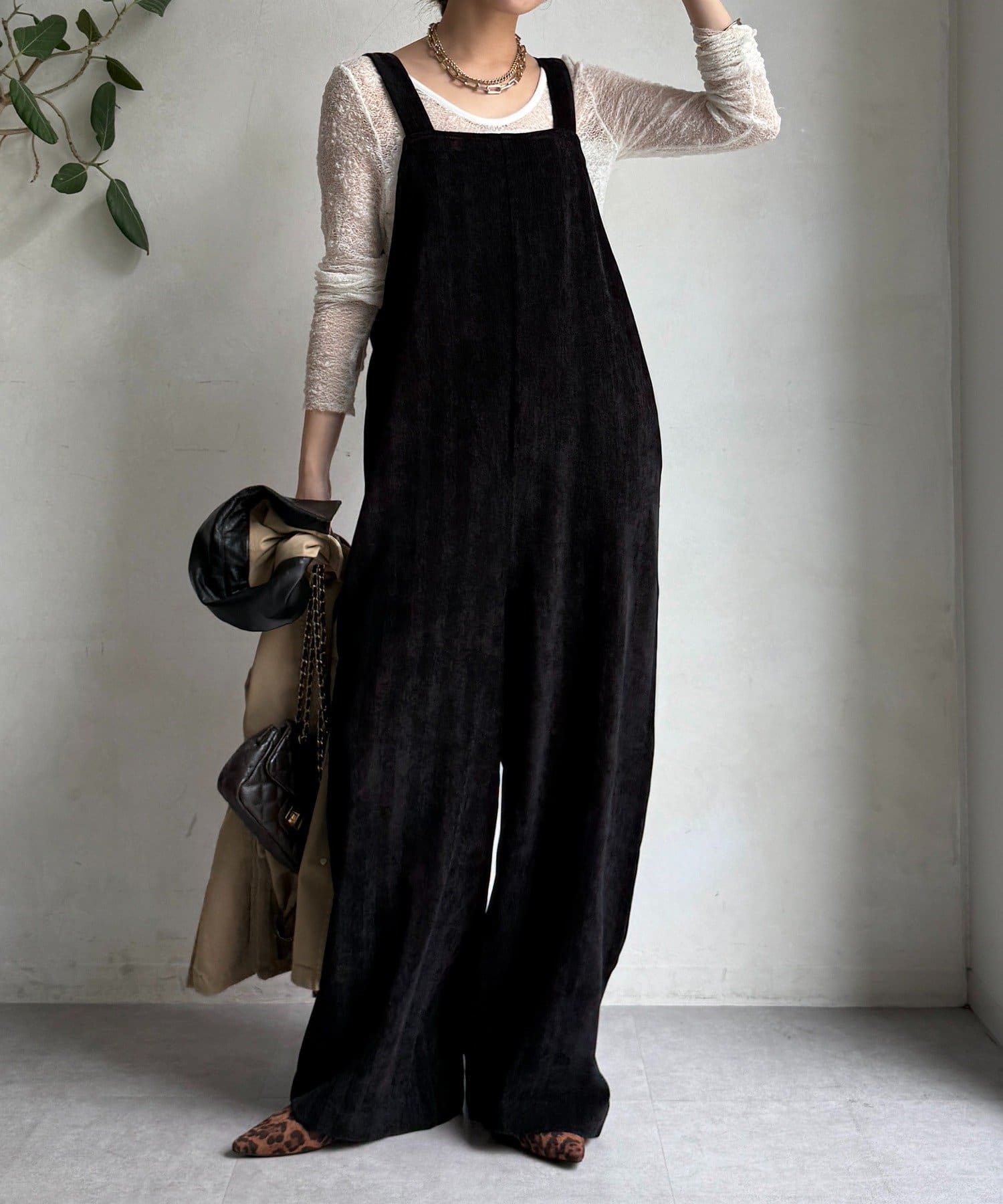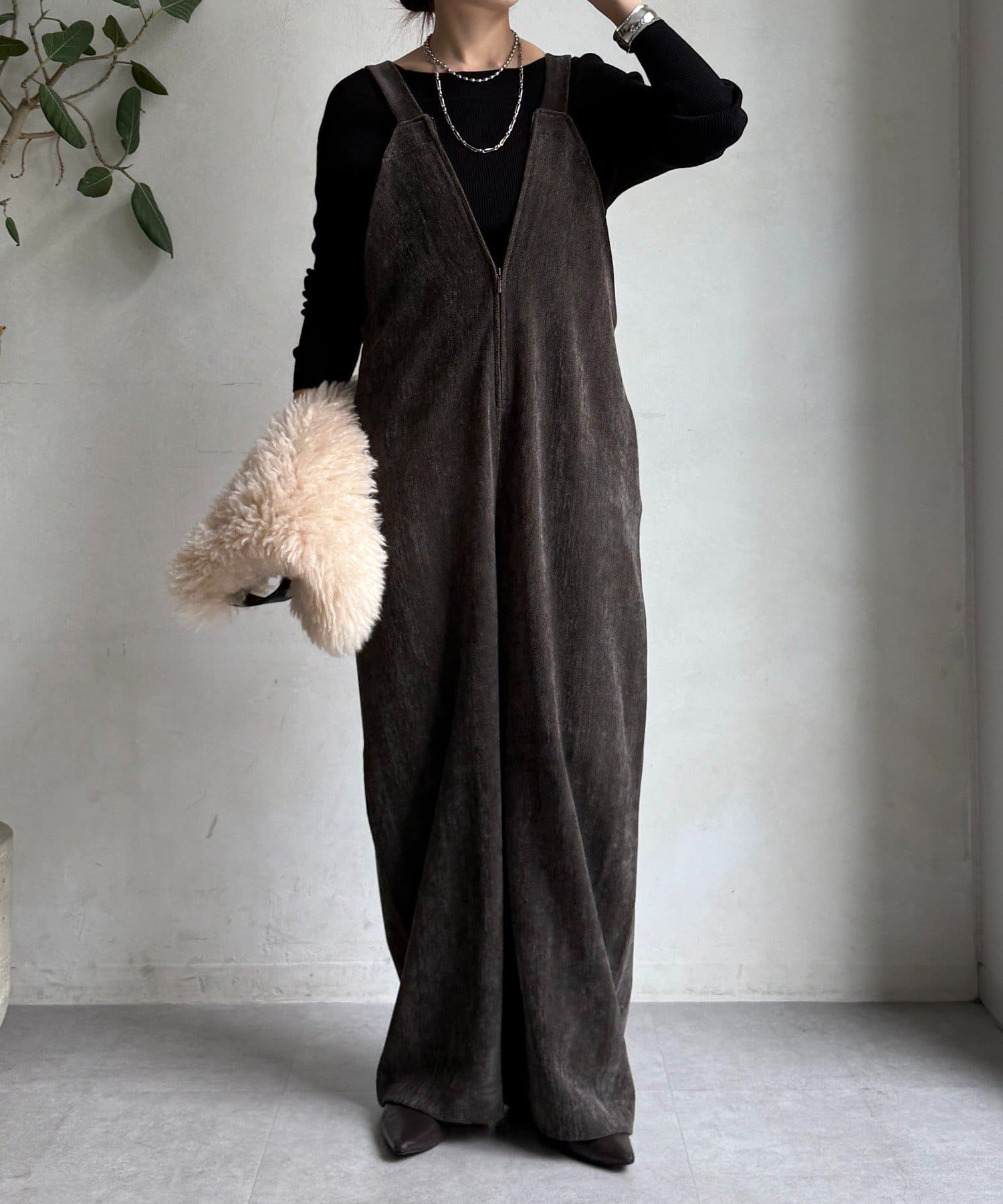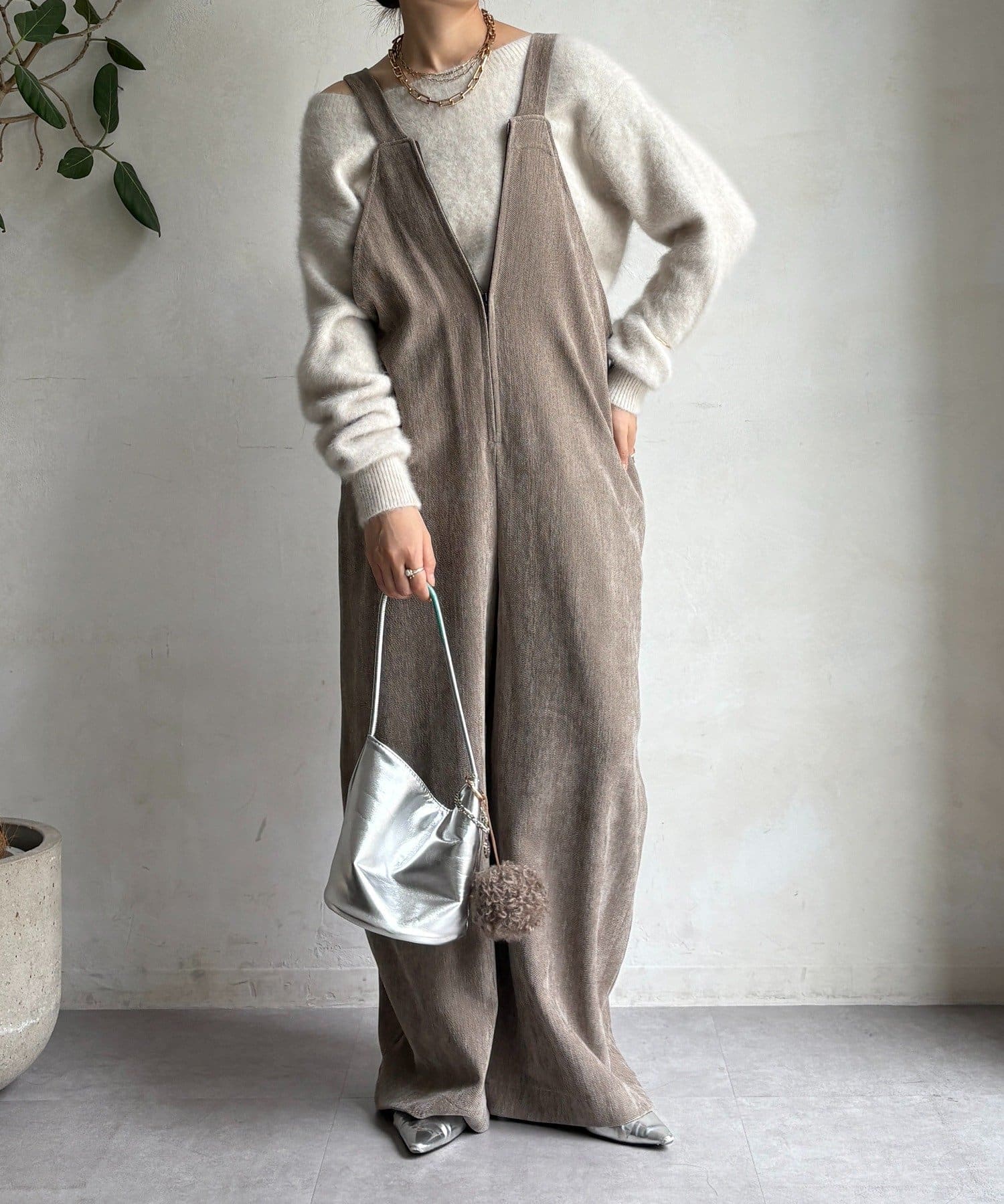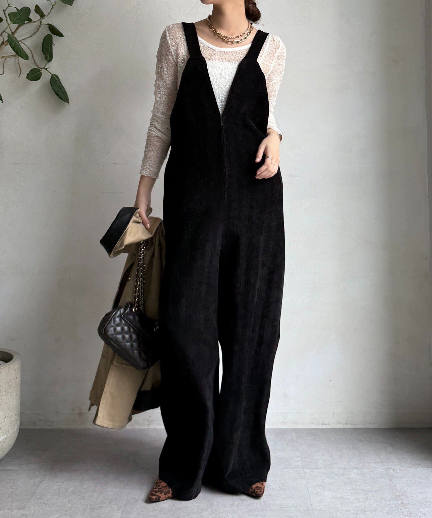 ヘリンボーンで魅せる、大人のこなれ感サロペット
