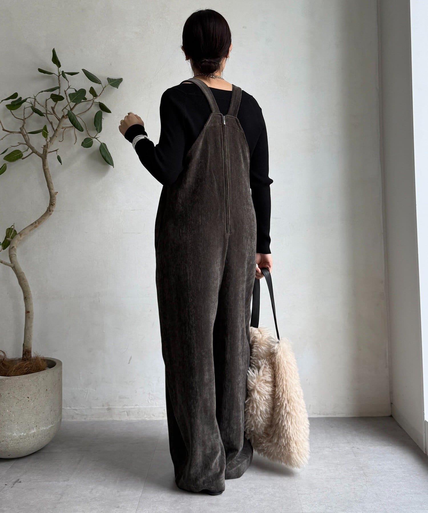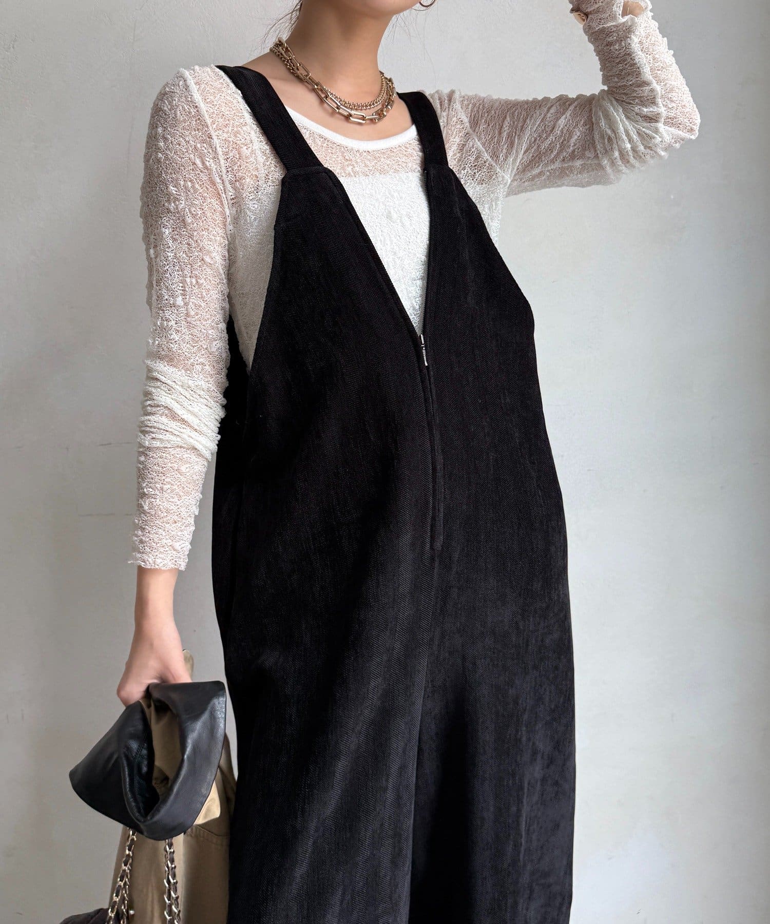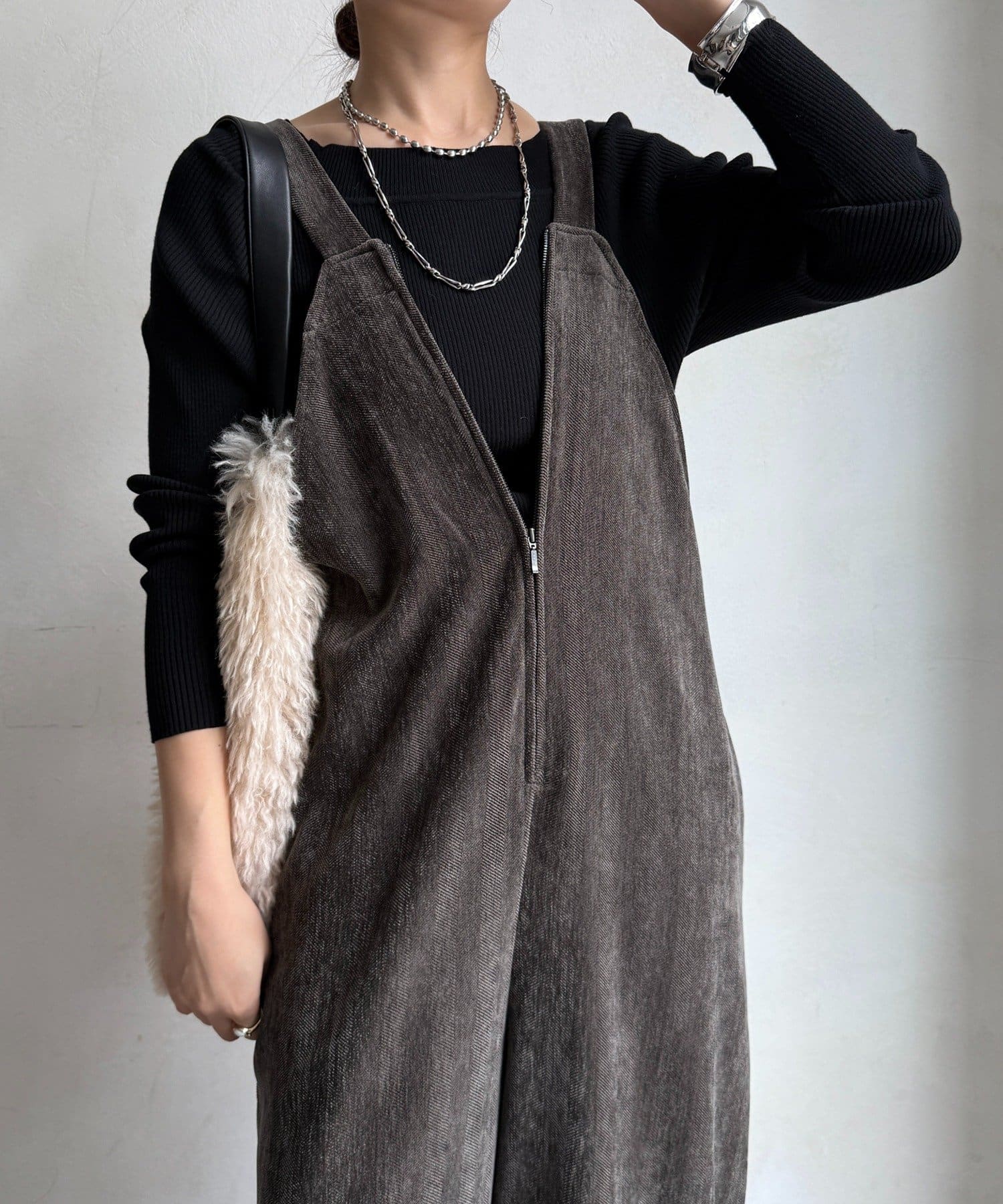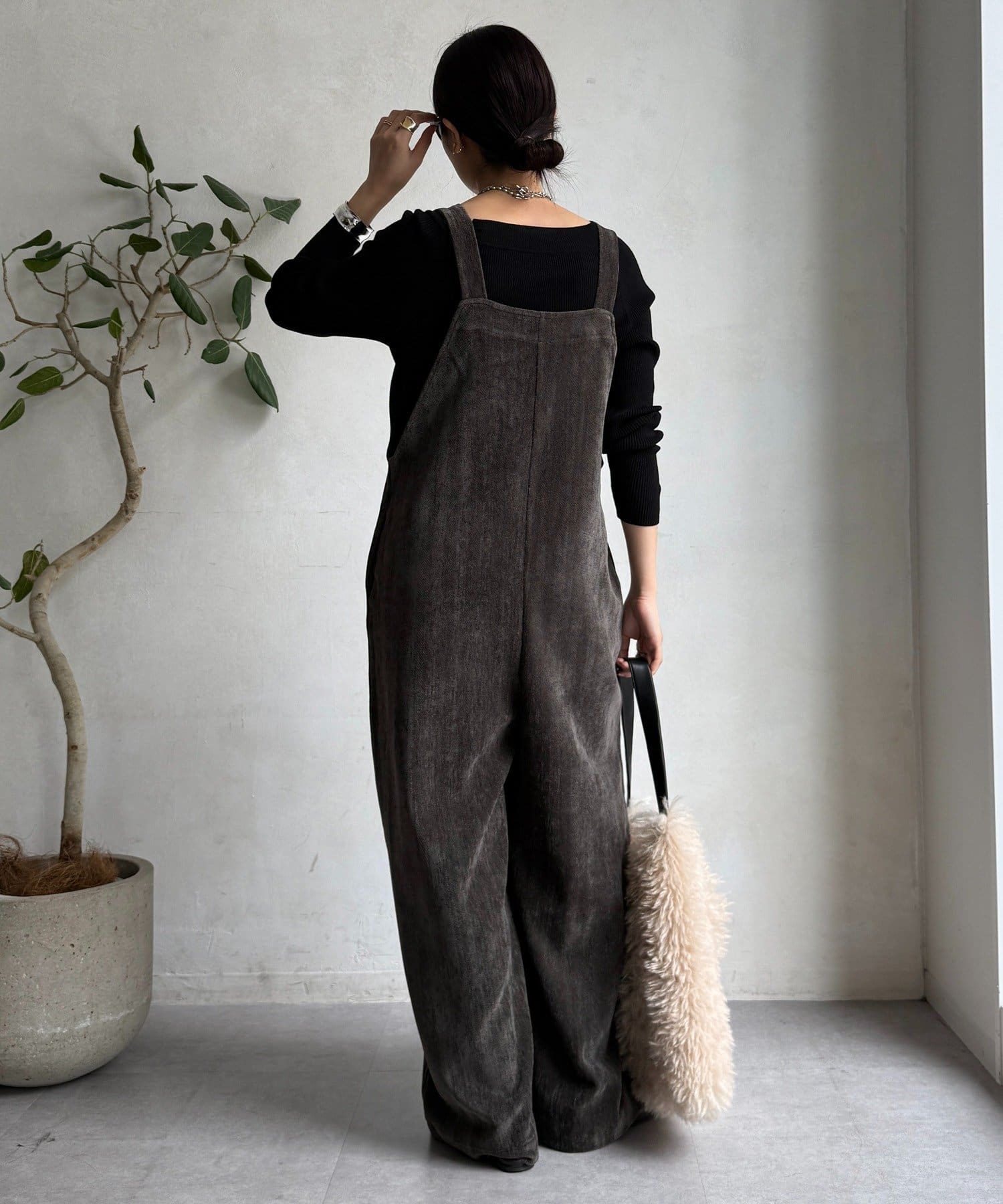ヘリンボーンで魅せる、大人のこなれ感サロペット