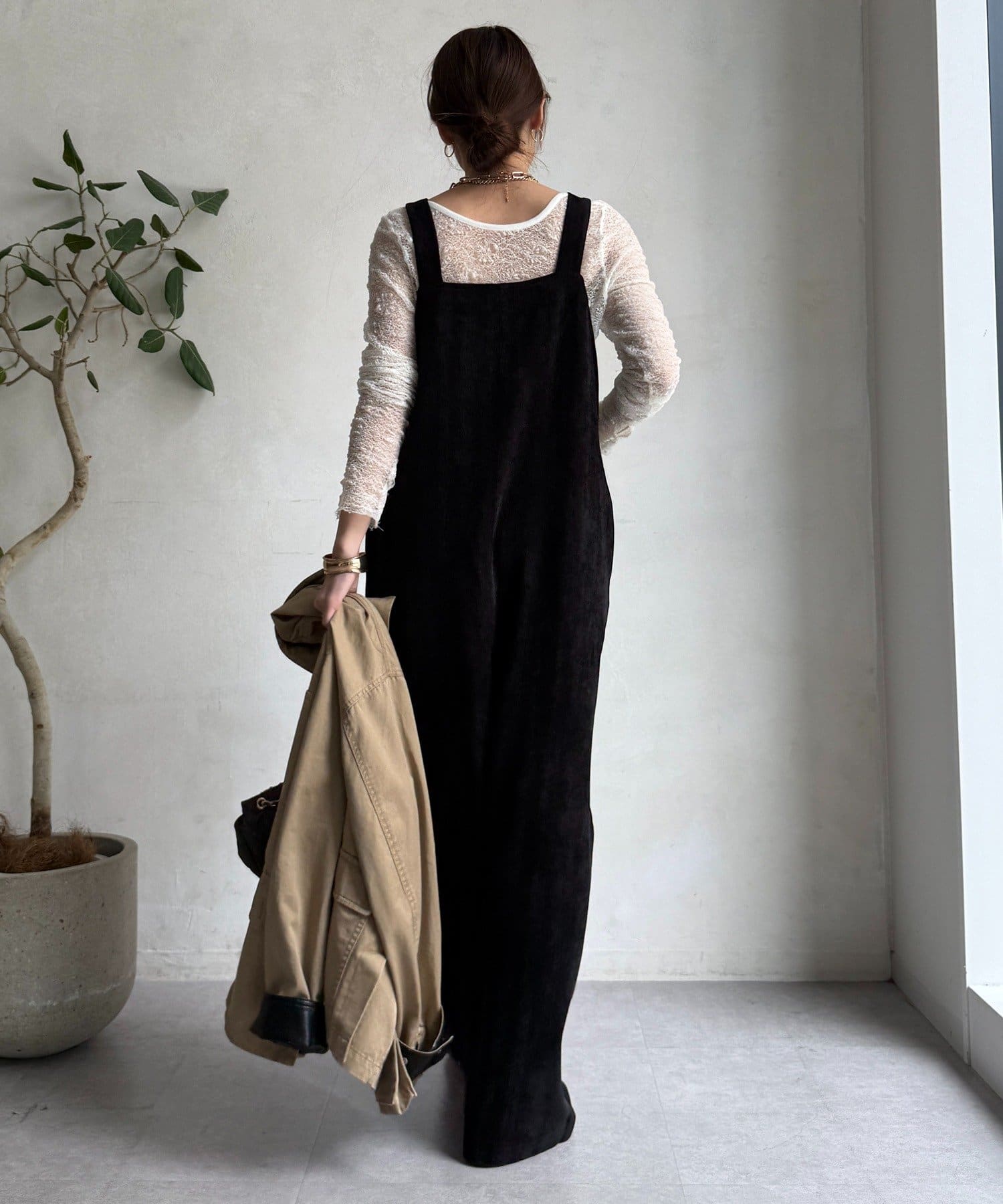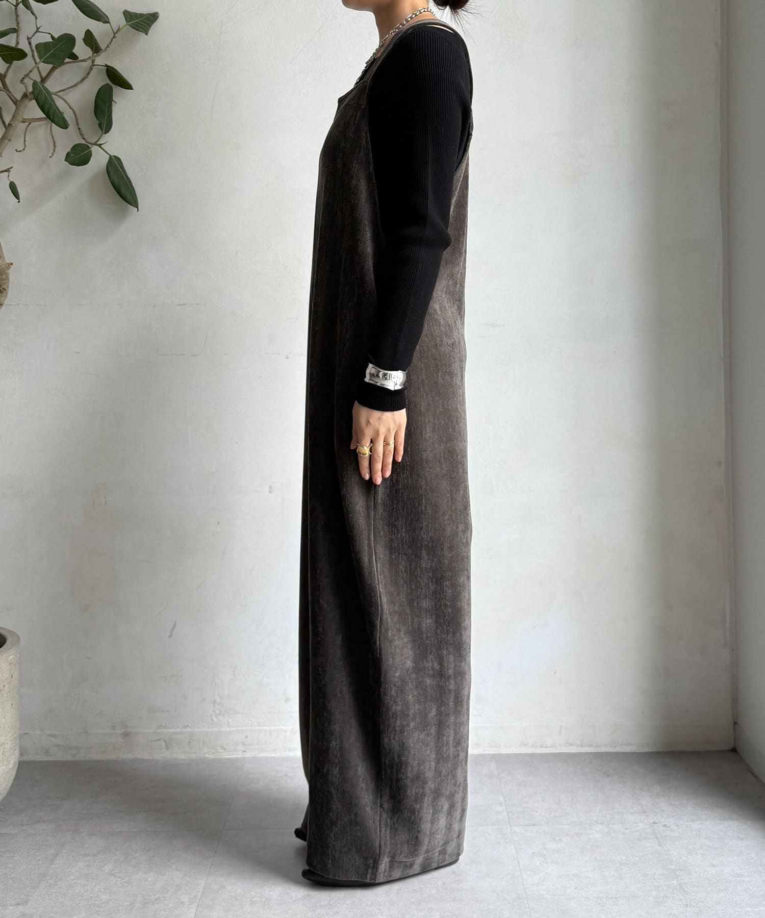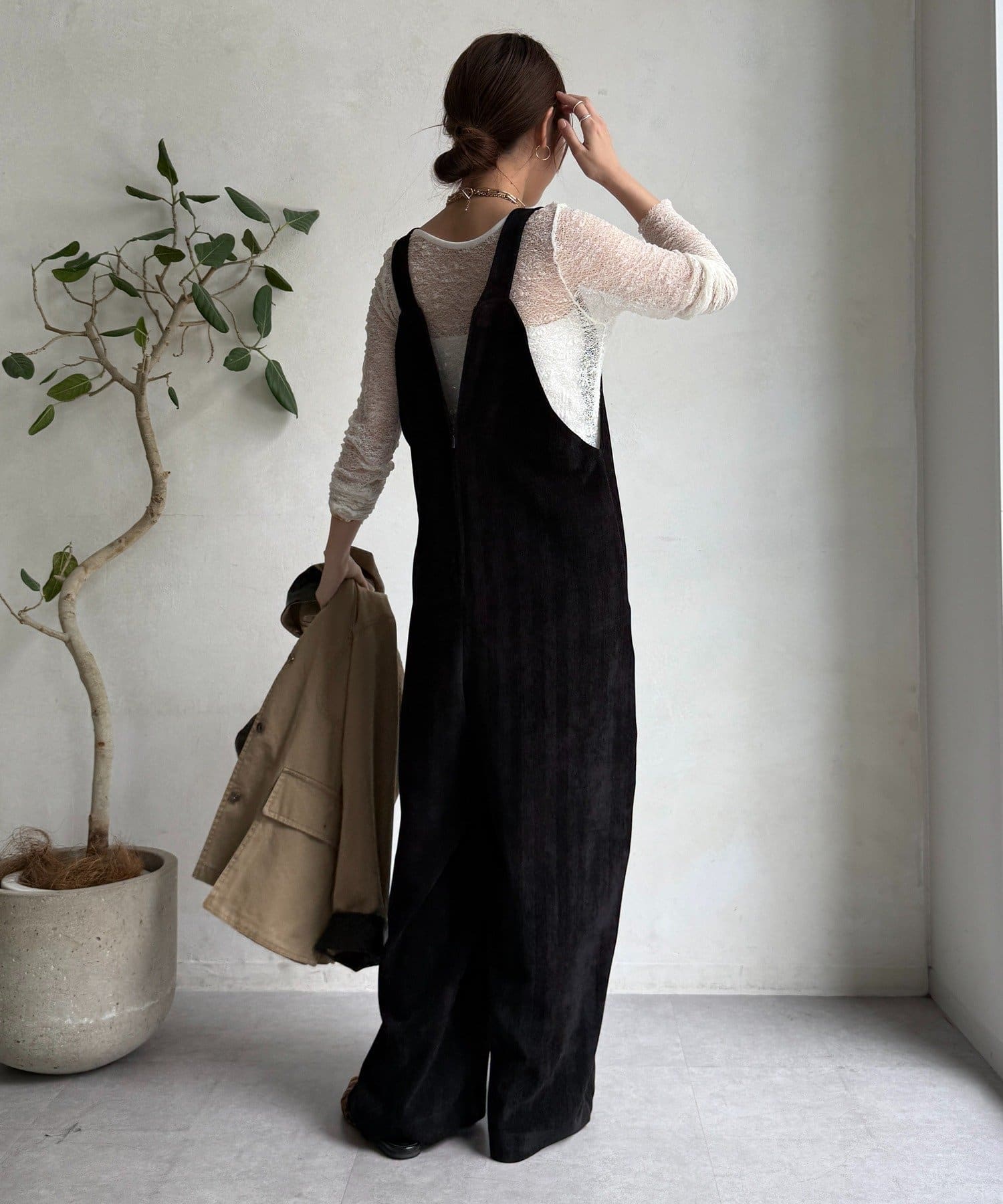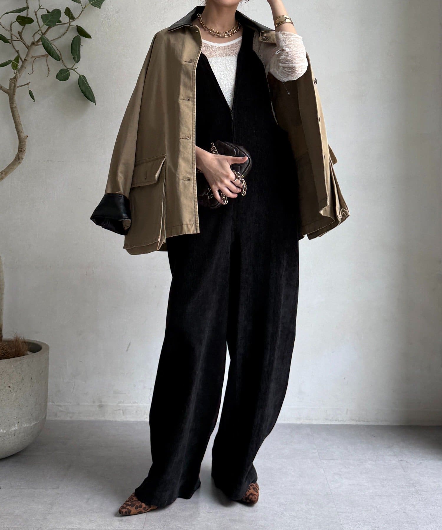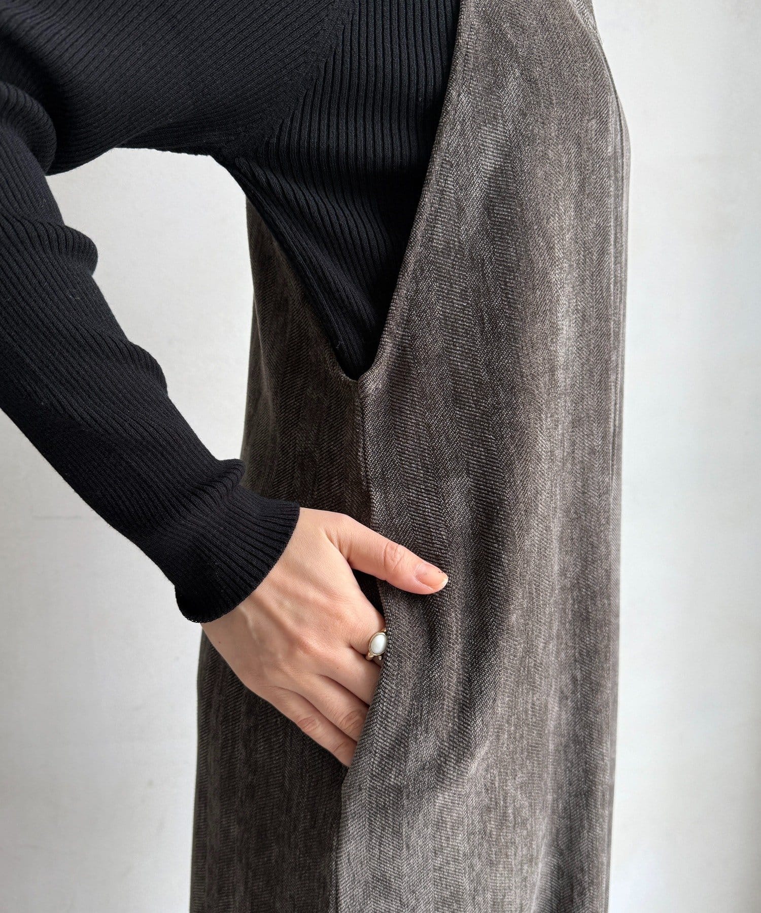 ヘリンボーンで魅せる、大人のこなれ感サロペット