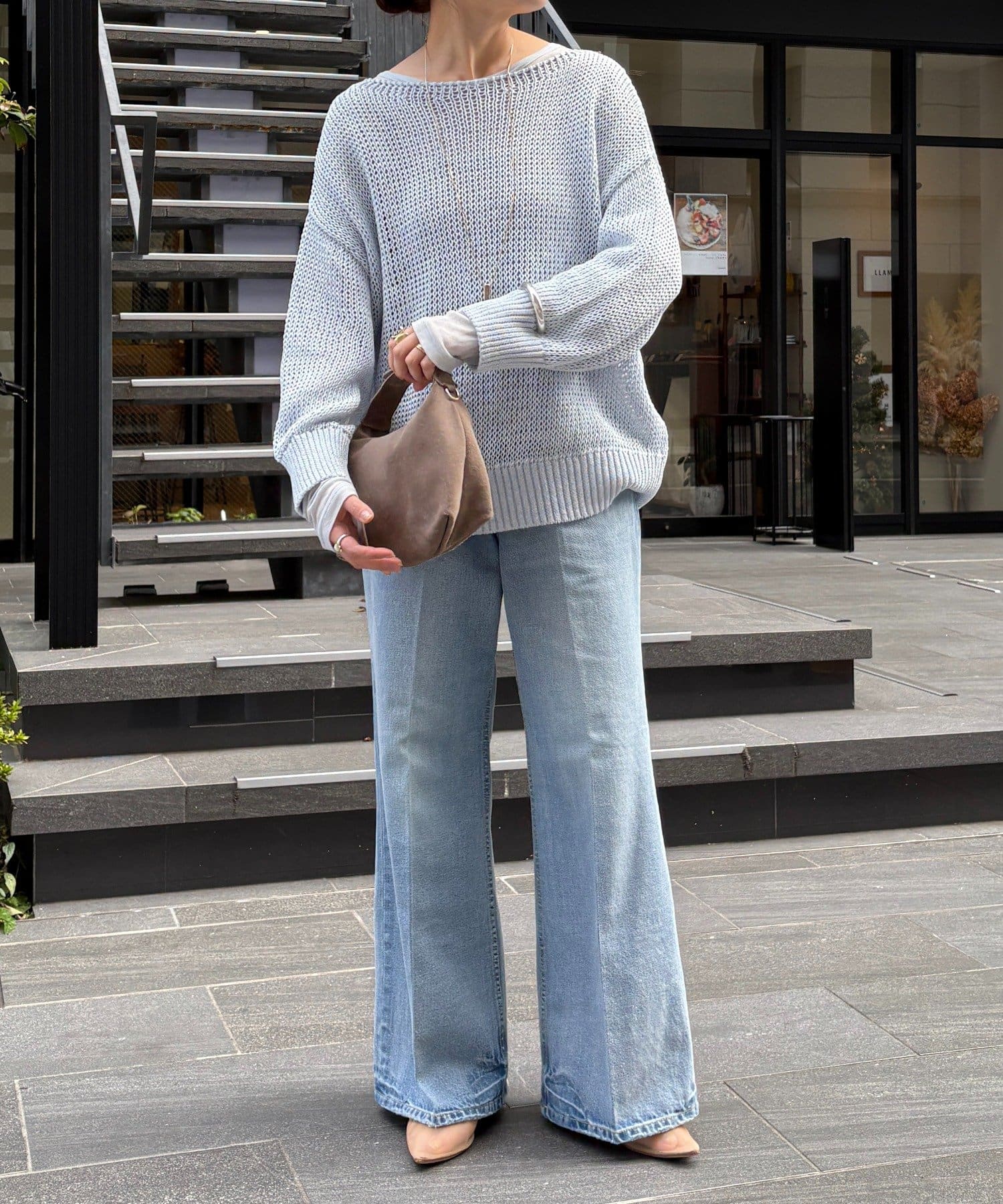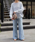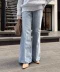 【完売カラー再追加!/2サイズ展開/美脚効果】ルーズフレアデニム