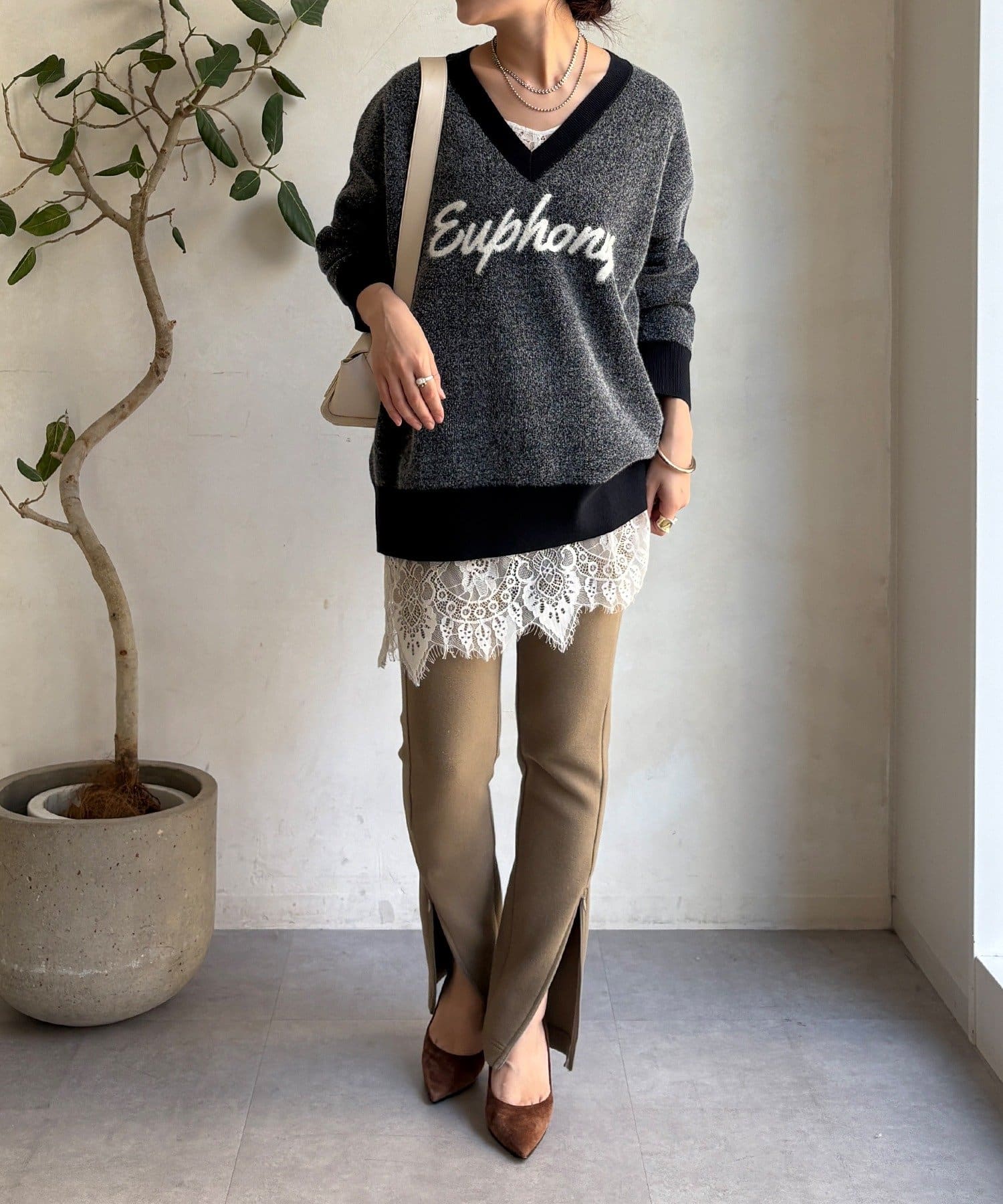リラックス感がありながらも、計算された丈感とスリット位置でバランスよく着こなせます。