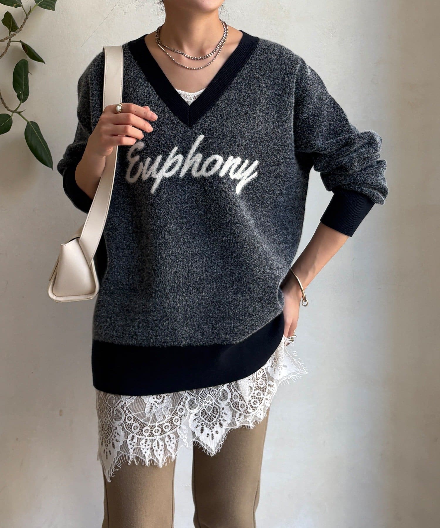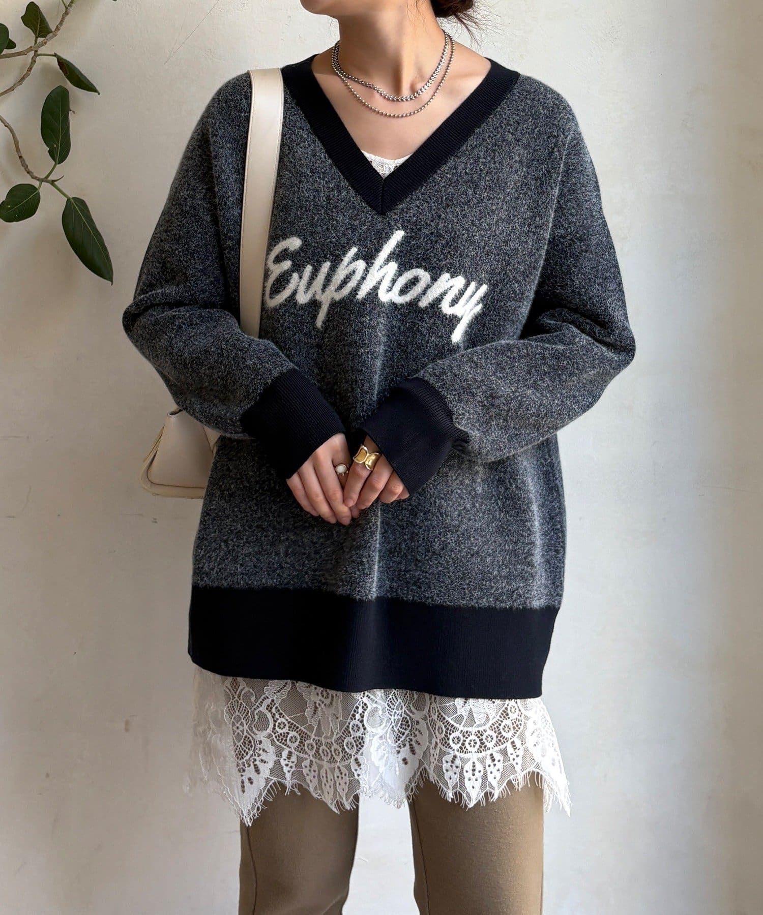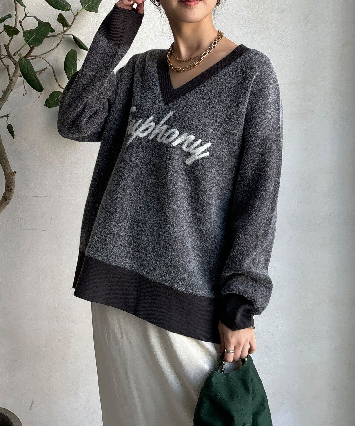 • DOUDOU(ドゥドゥ) 【WEB限定】ロゴシャギーニット