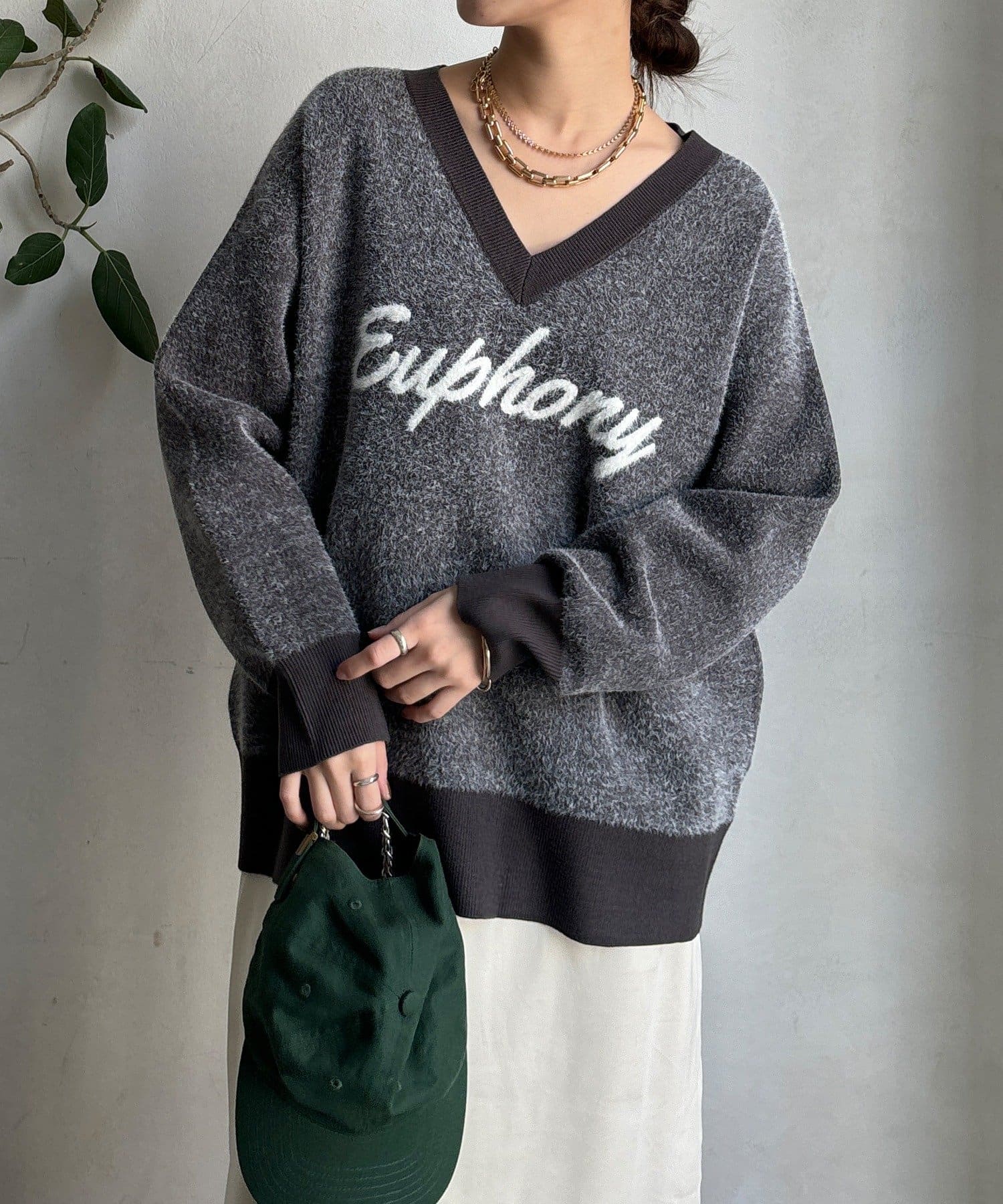 DOUDOU(ドゥドゥ) 【WEB限定】ロゴシャギーニット