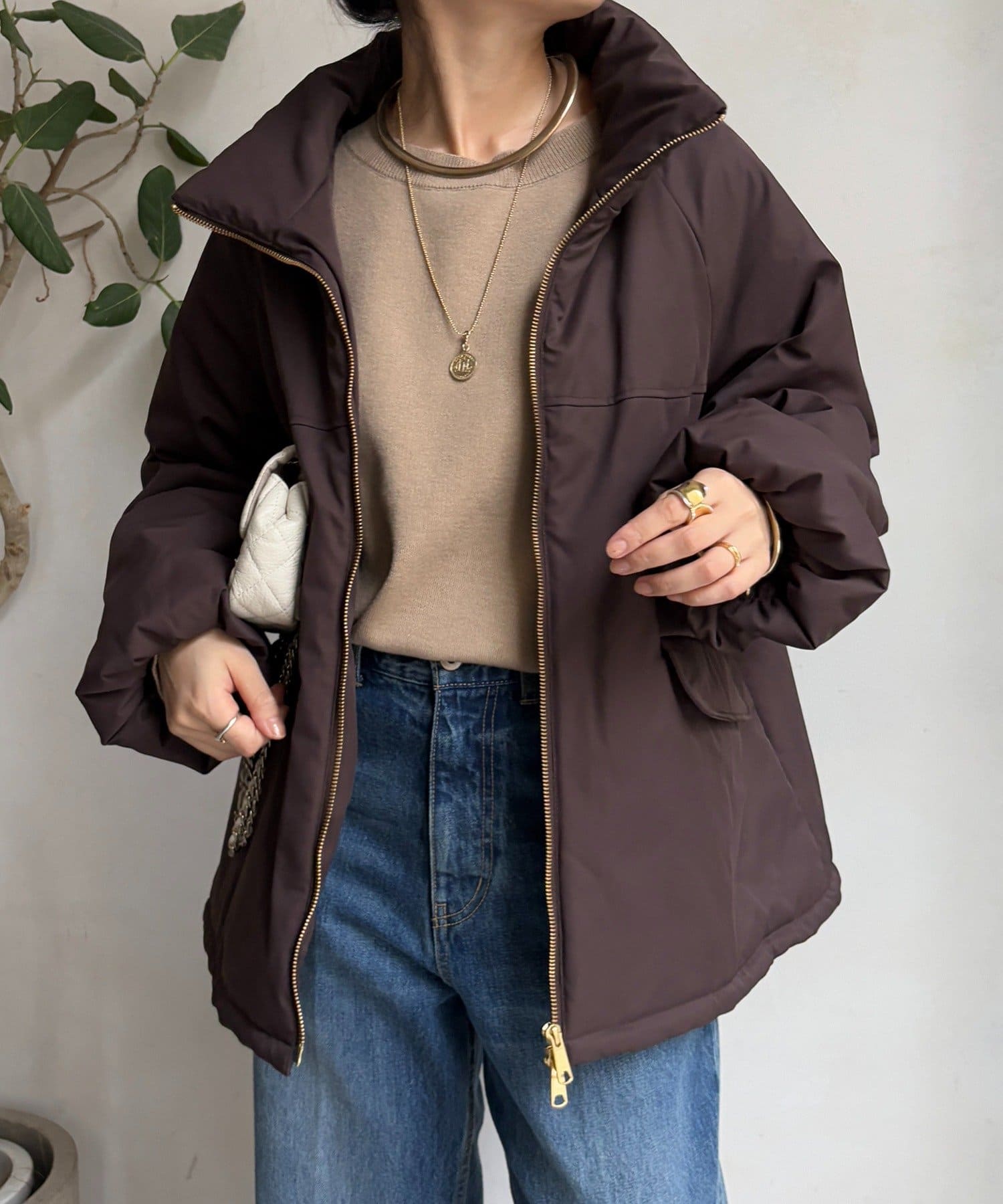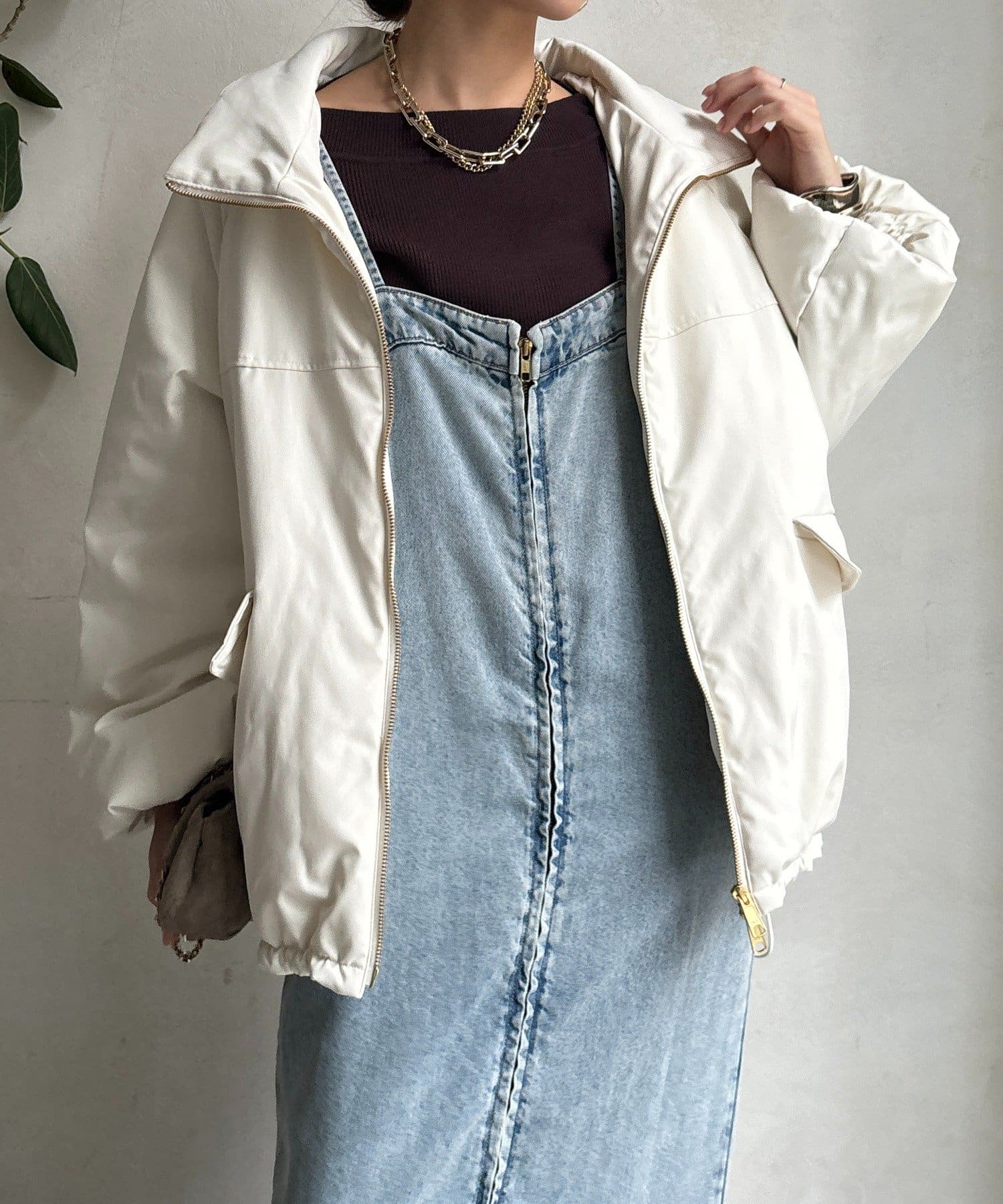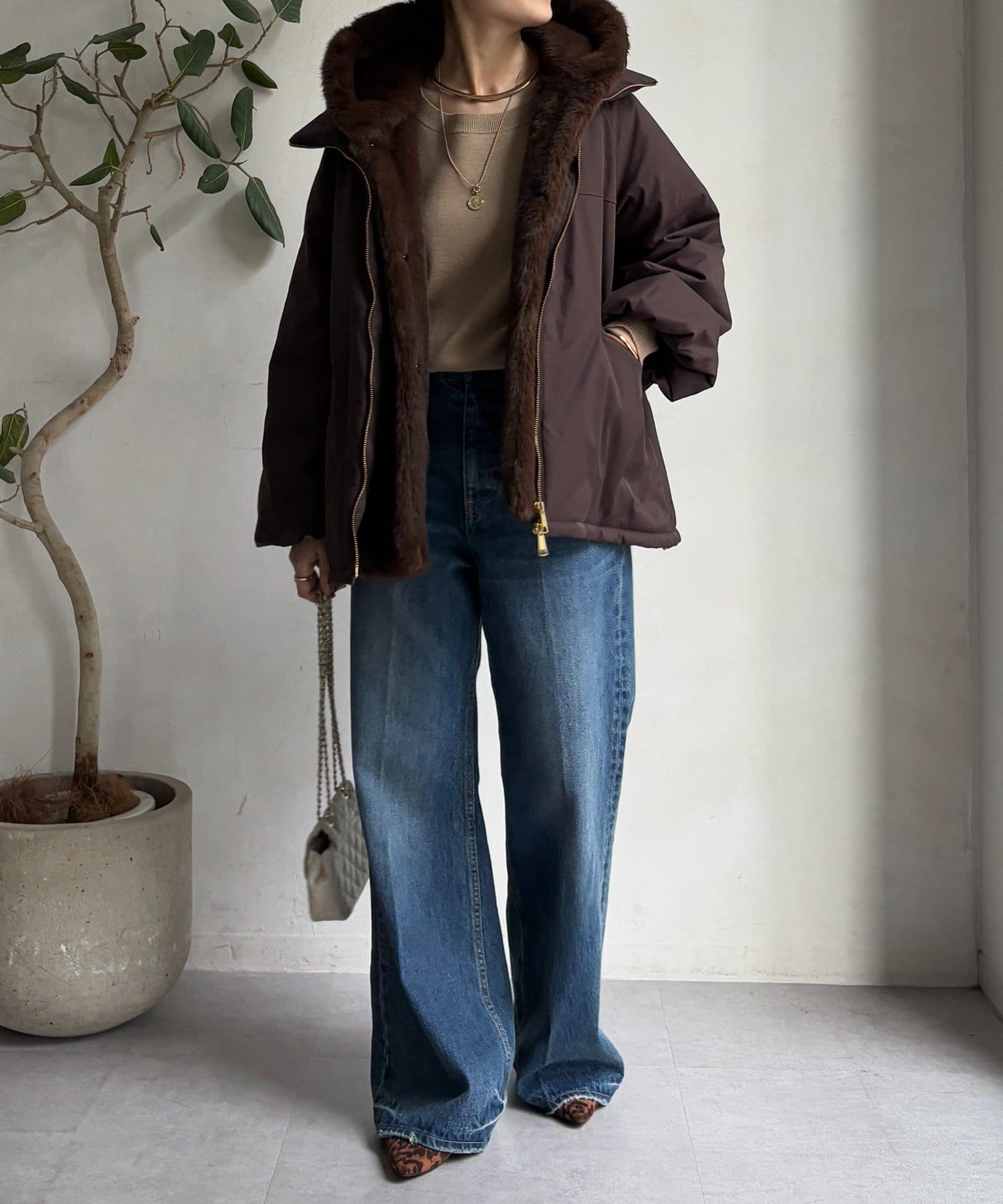 厚手のニットやスウェットの上にも楽に羽織ることができ、こなれ感を演出できます!