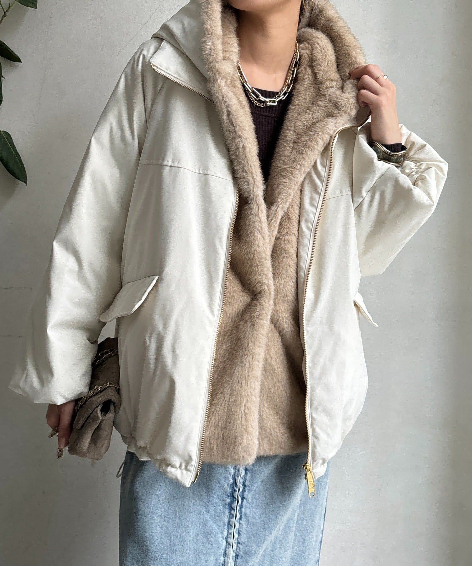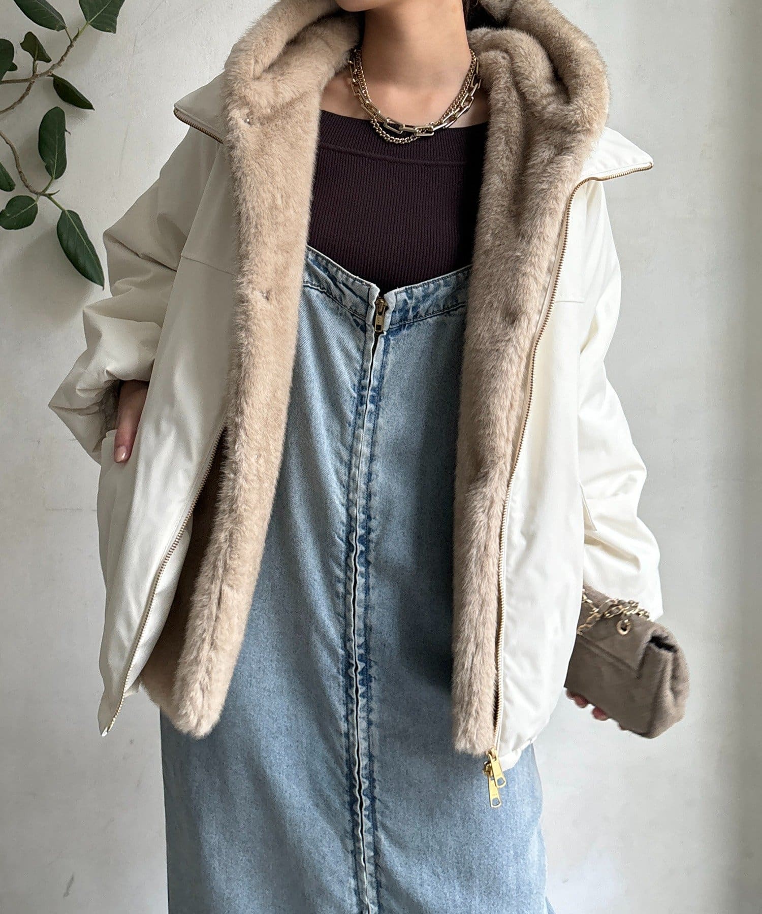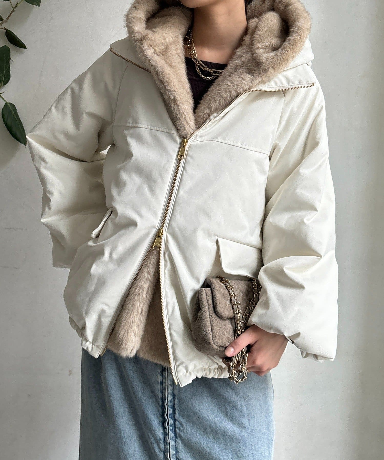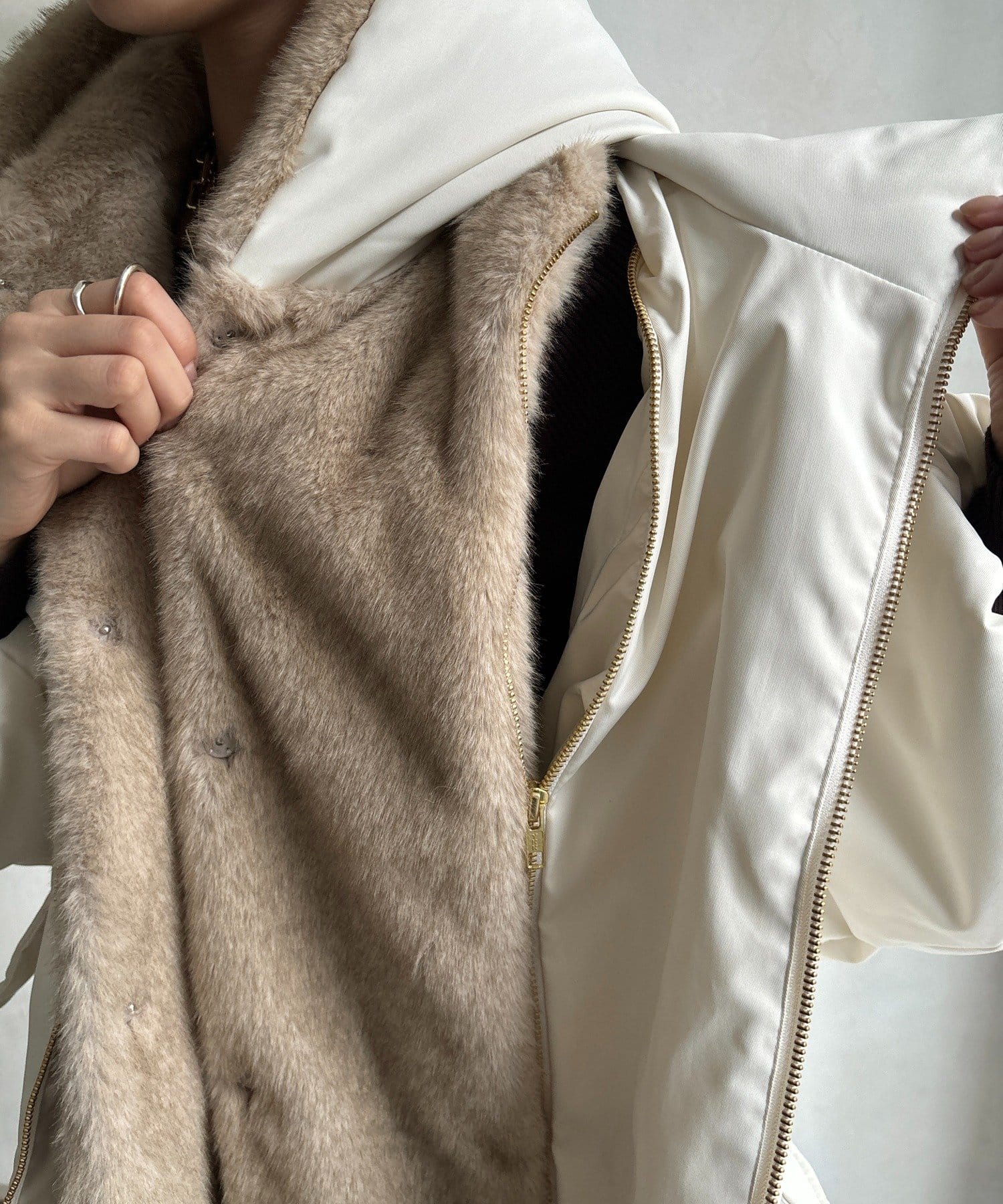 ファーはファスナーで取り外しが可能な2WAY仕様です。