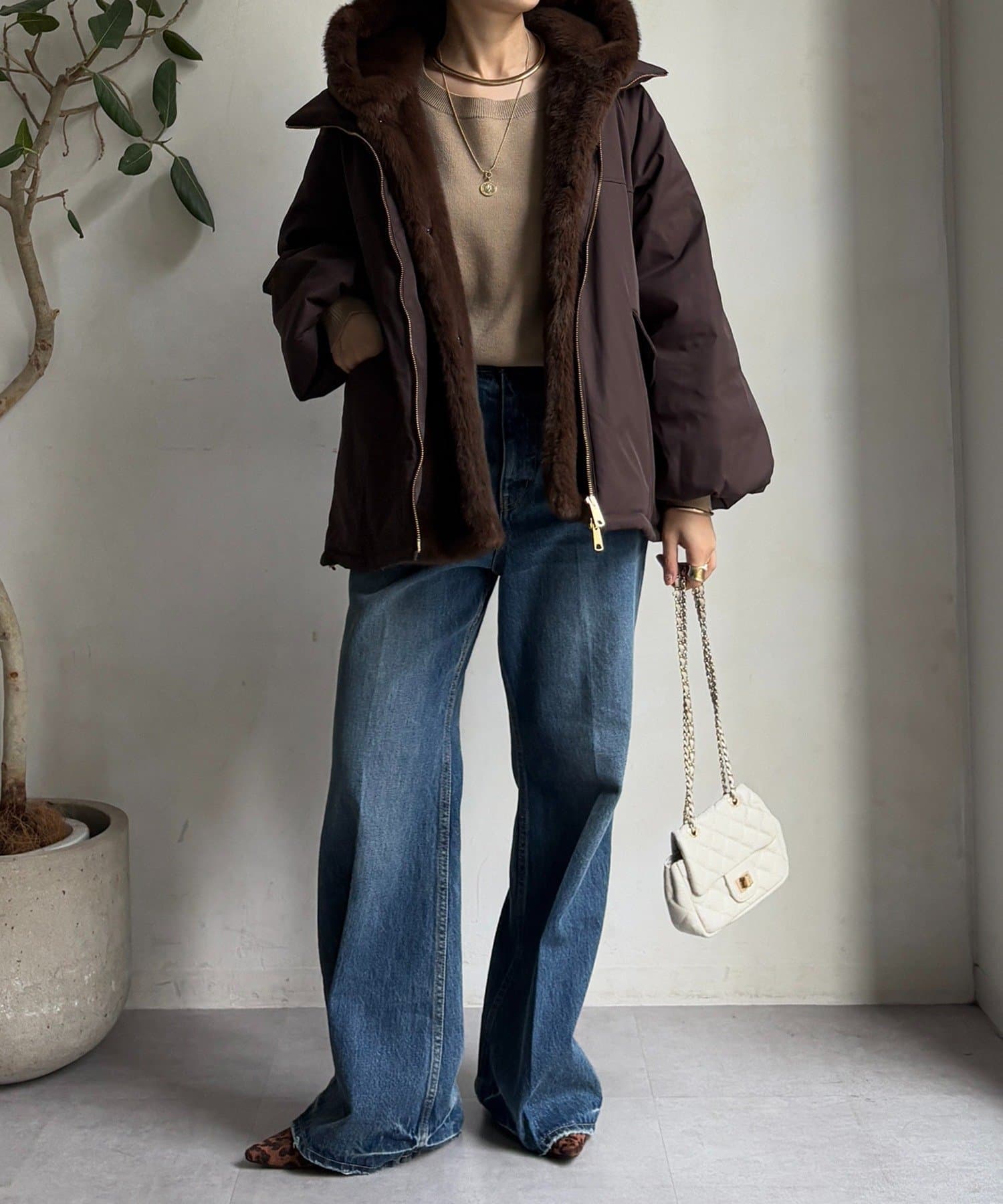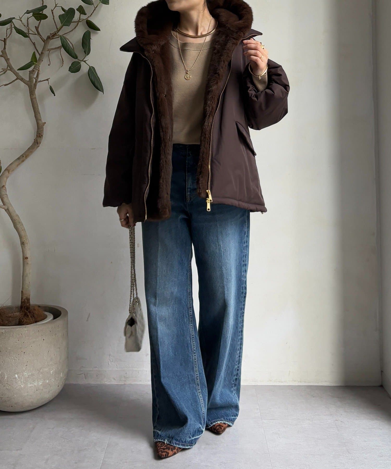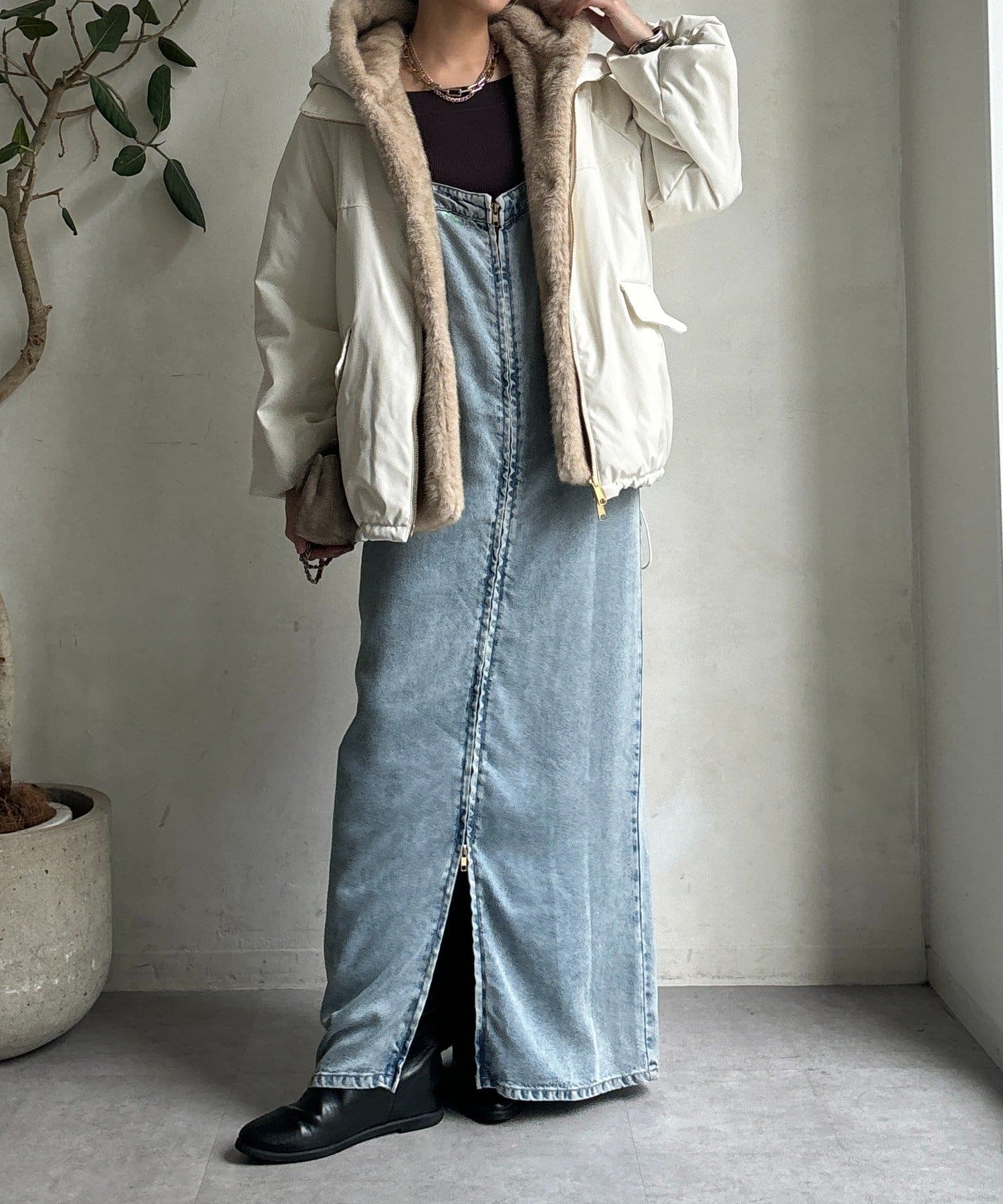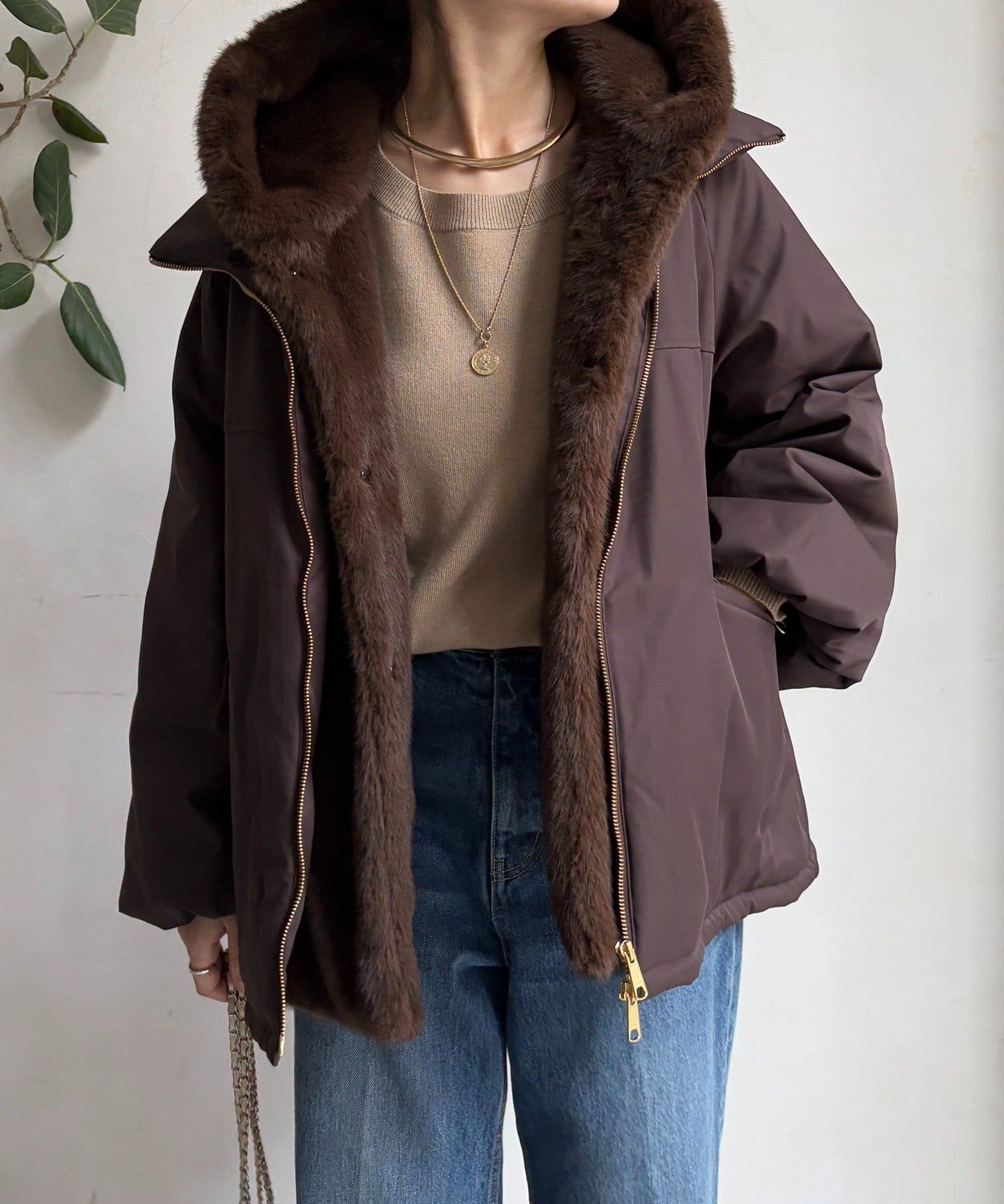 ファーはファスナーで取り外しが可能な2WAY仕様です。