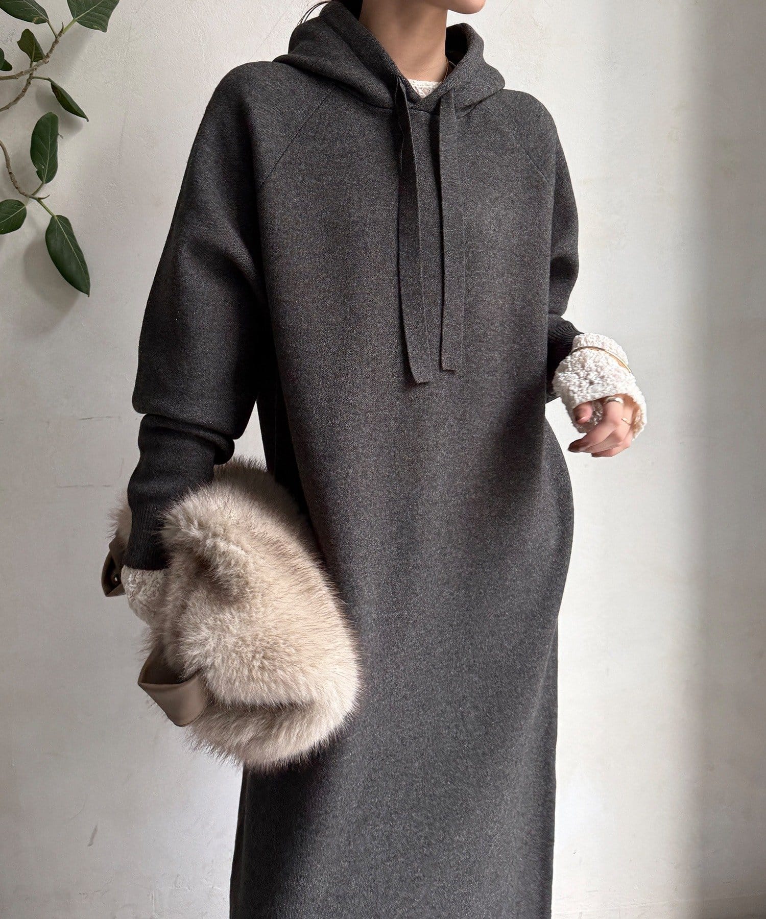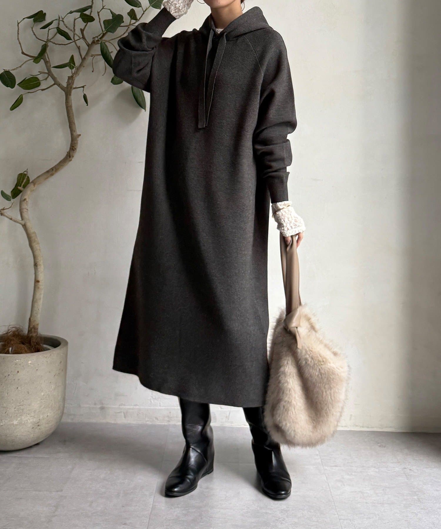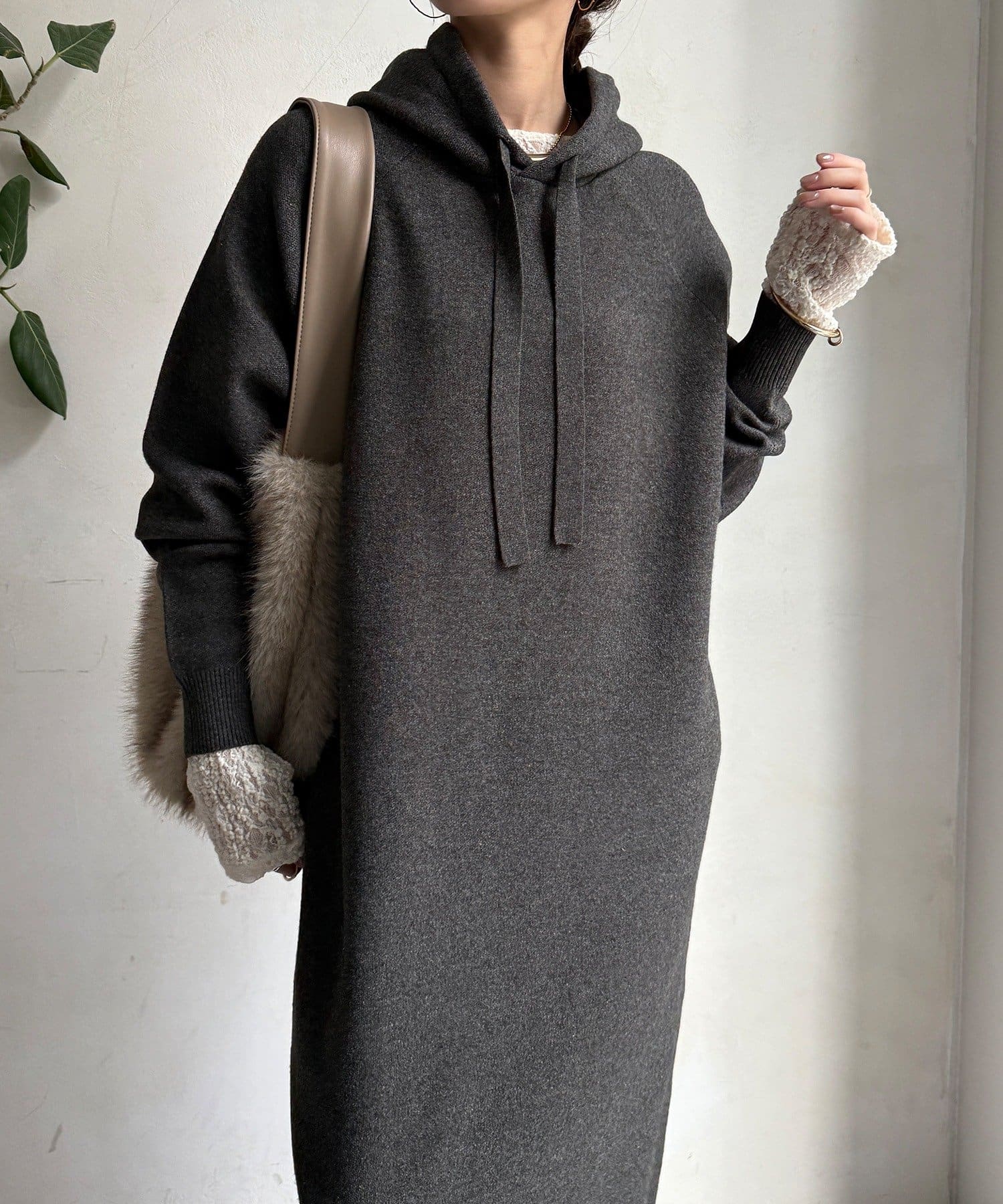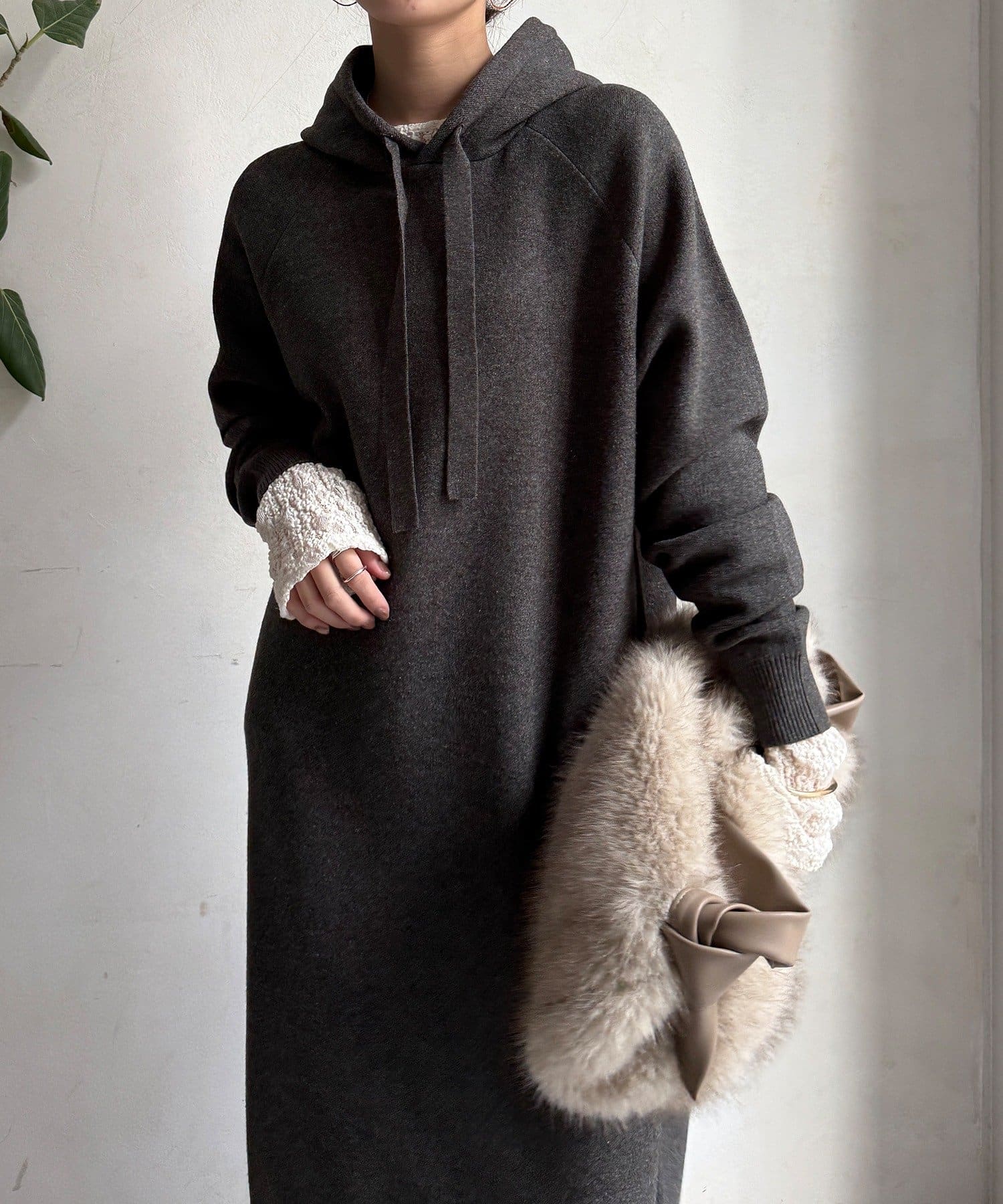 DOUDOU(ドゥドゥ) 【WEB限定】フーディーニットワンピース