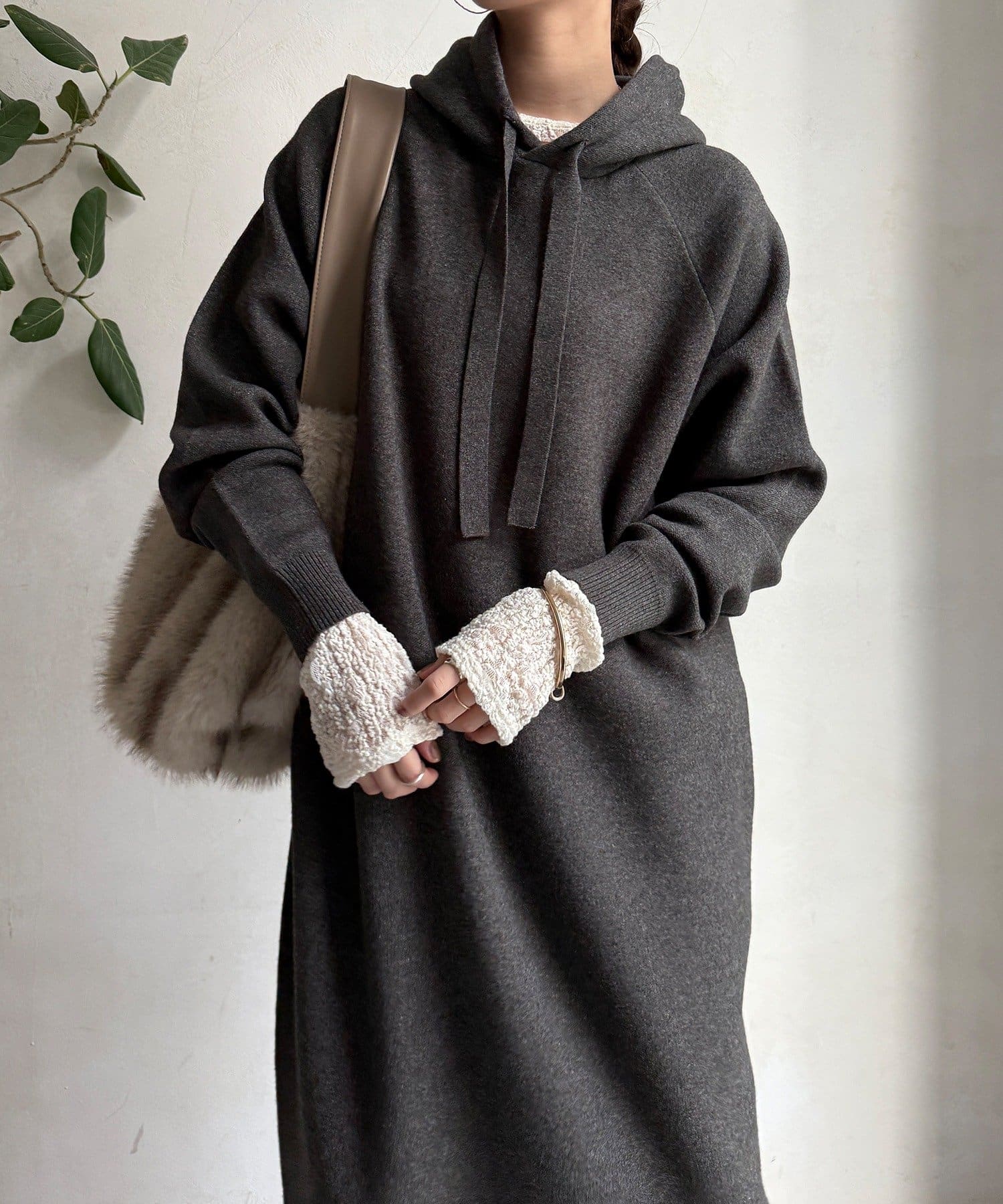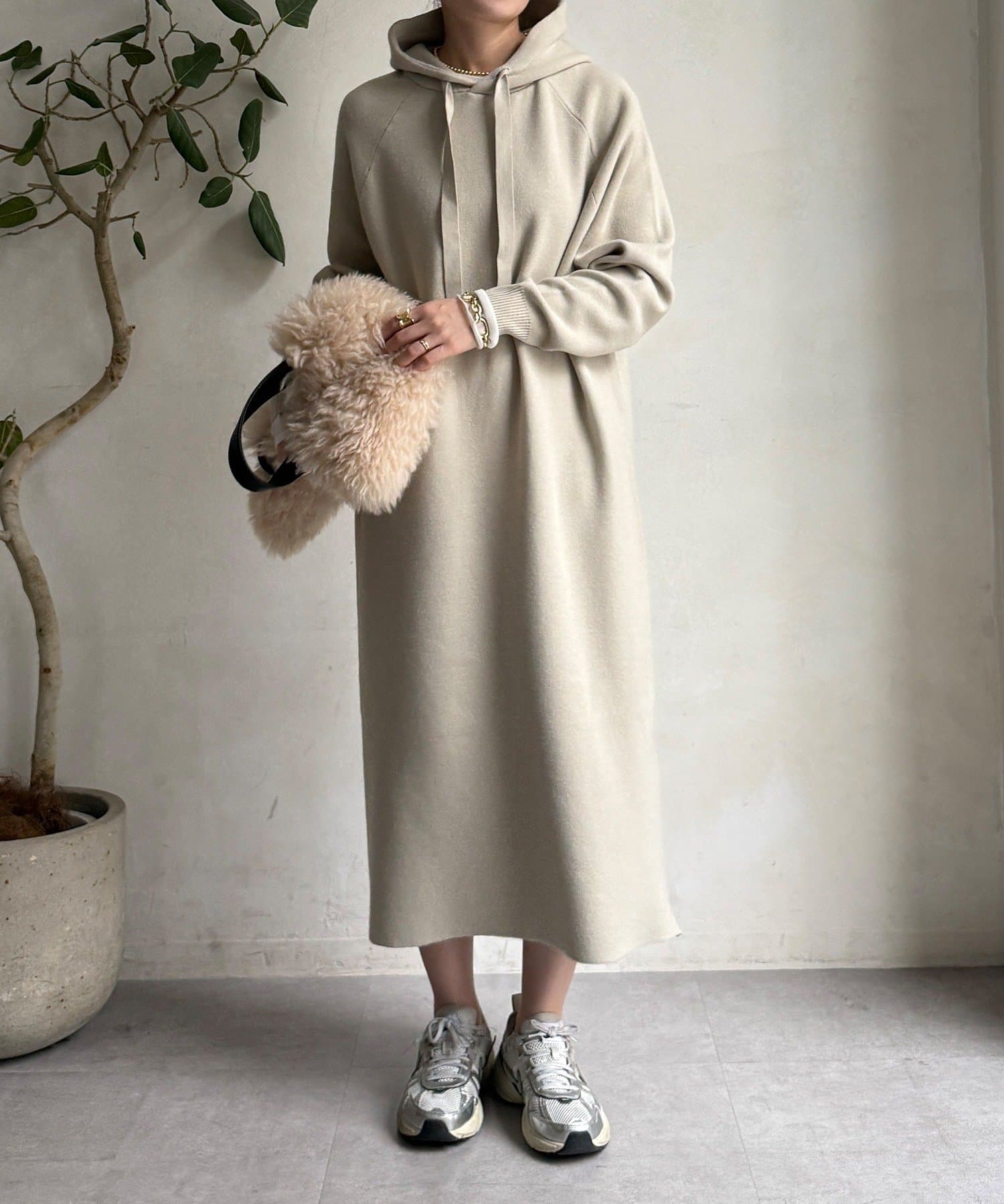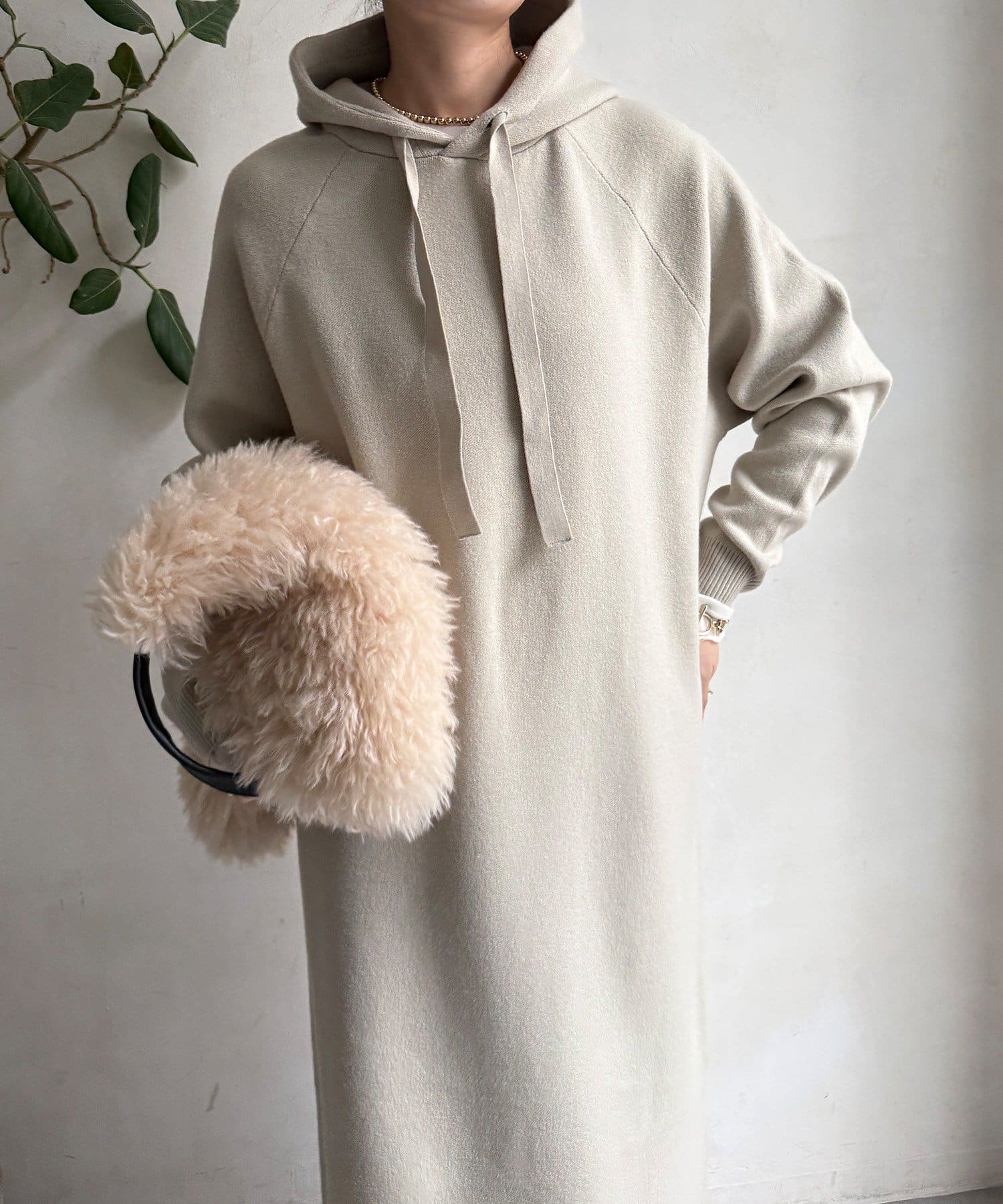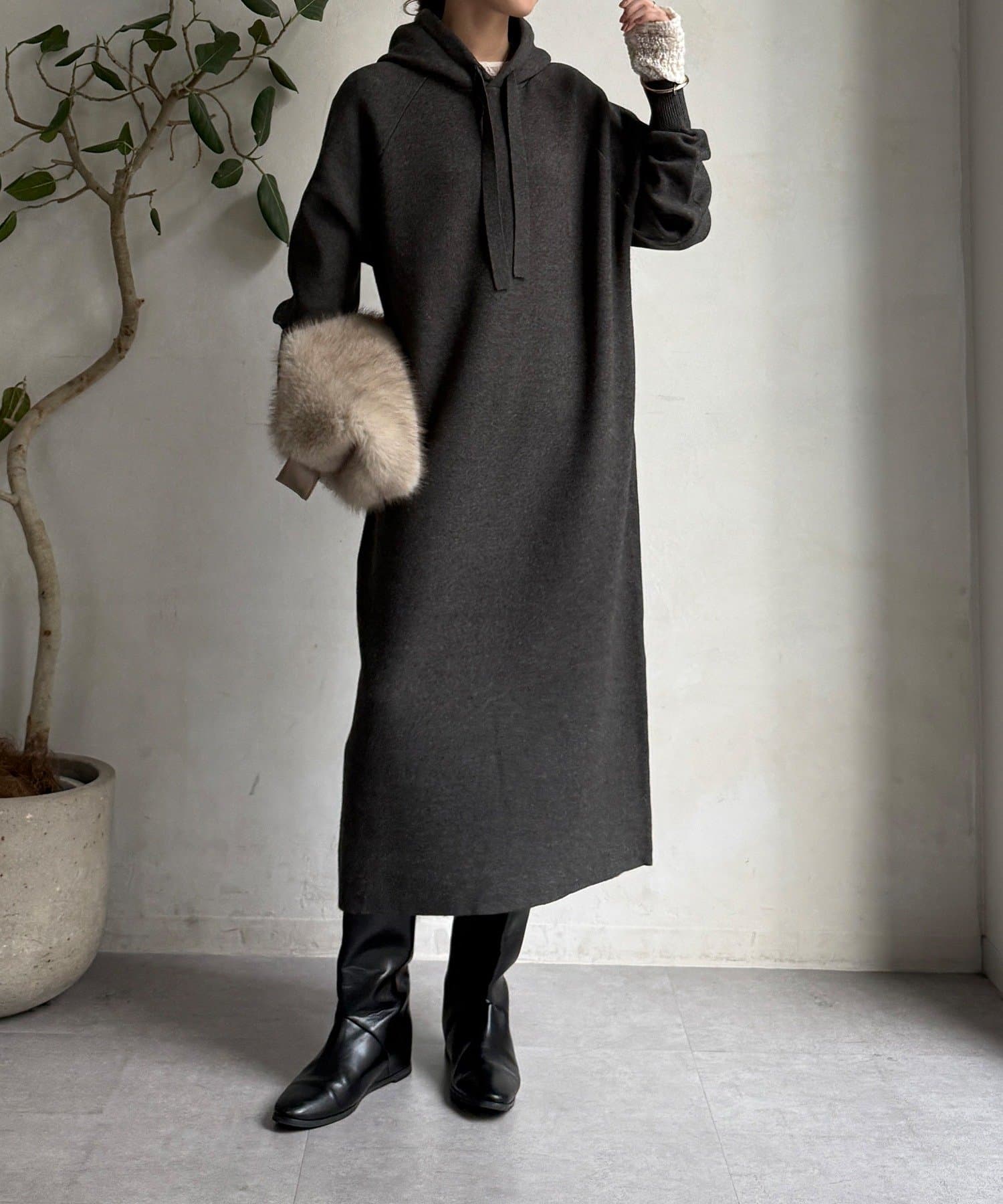 DOUDOU(ドゥドゥ) 【WEB限定】フーディーニットワンピース