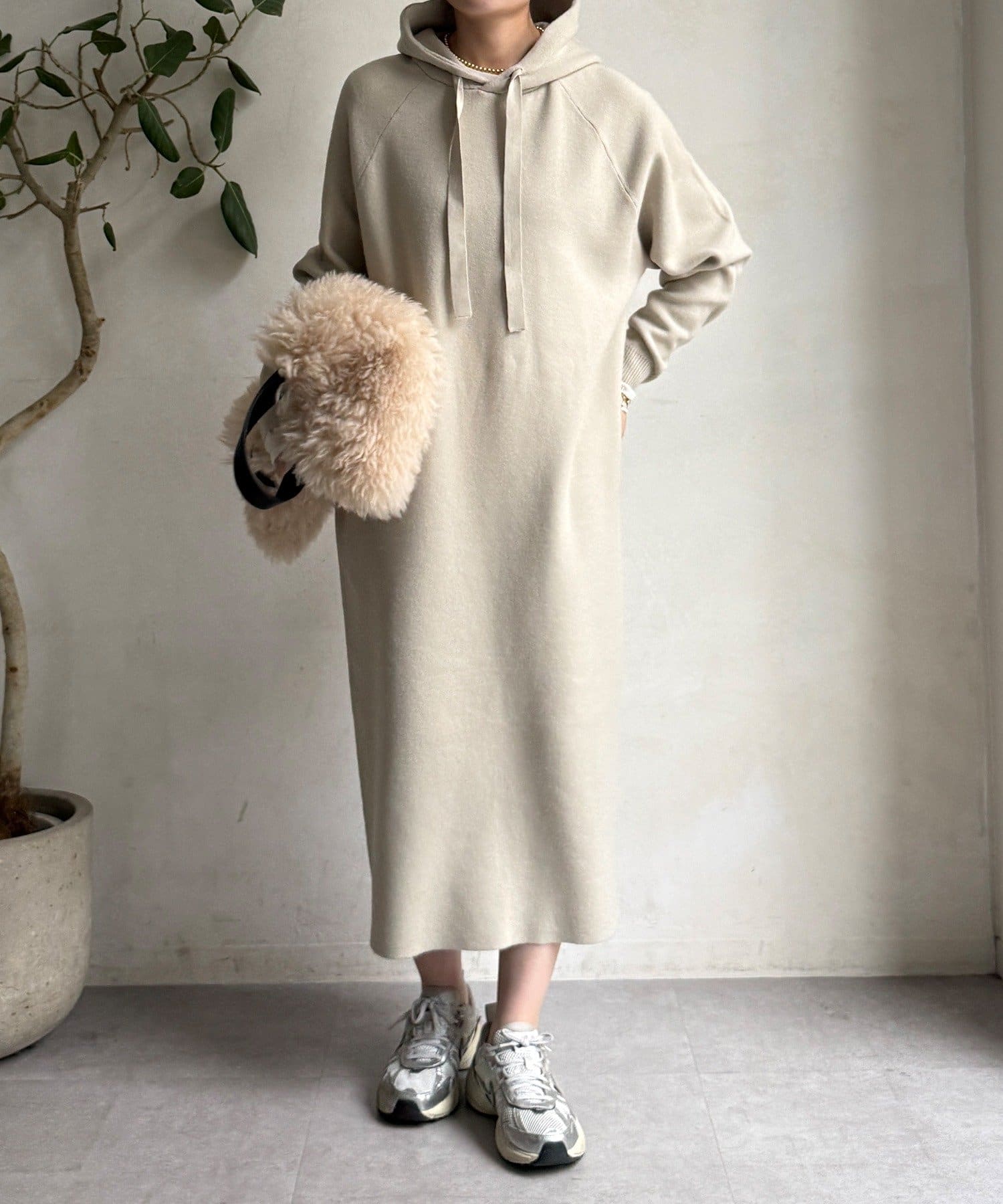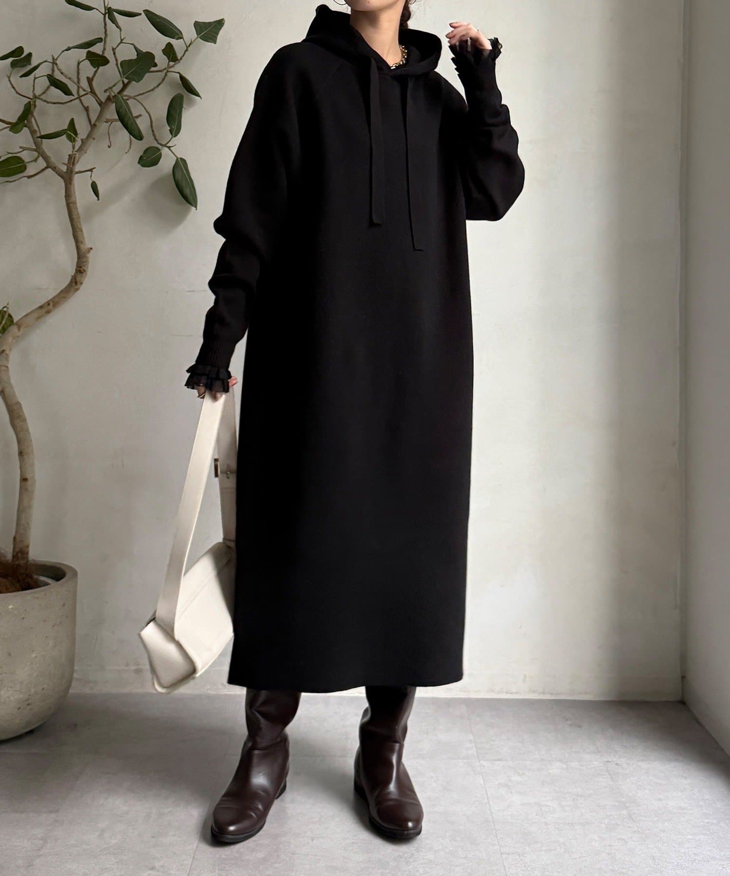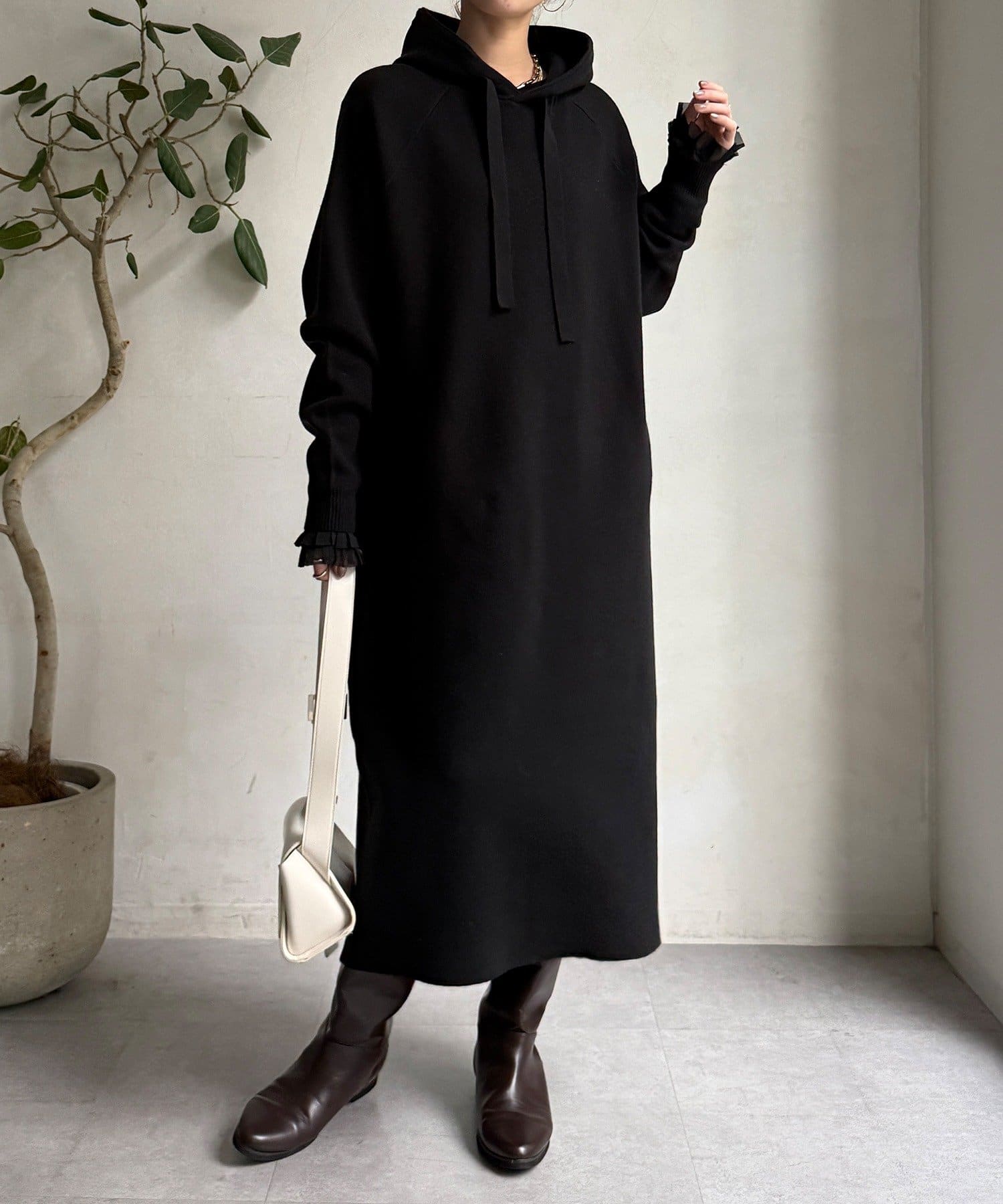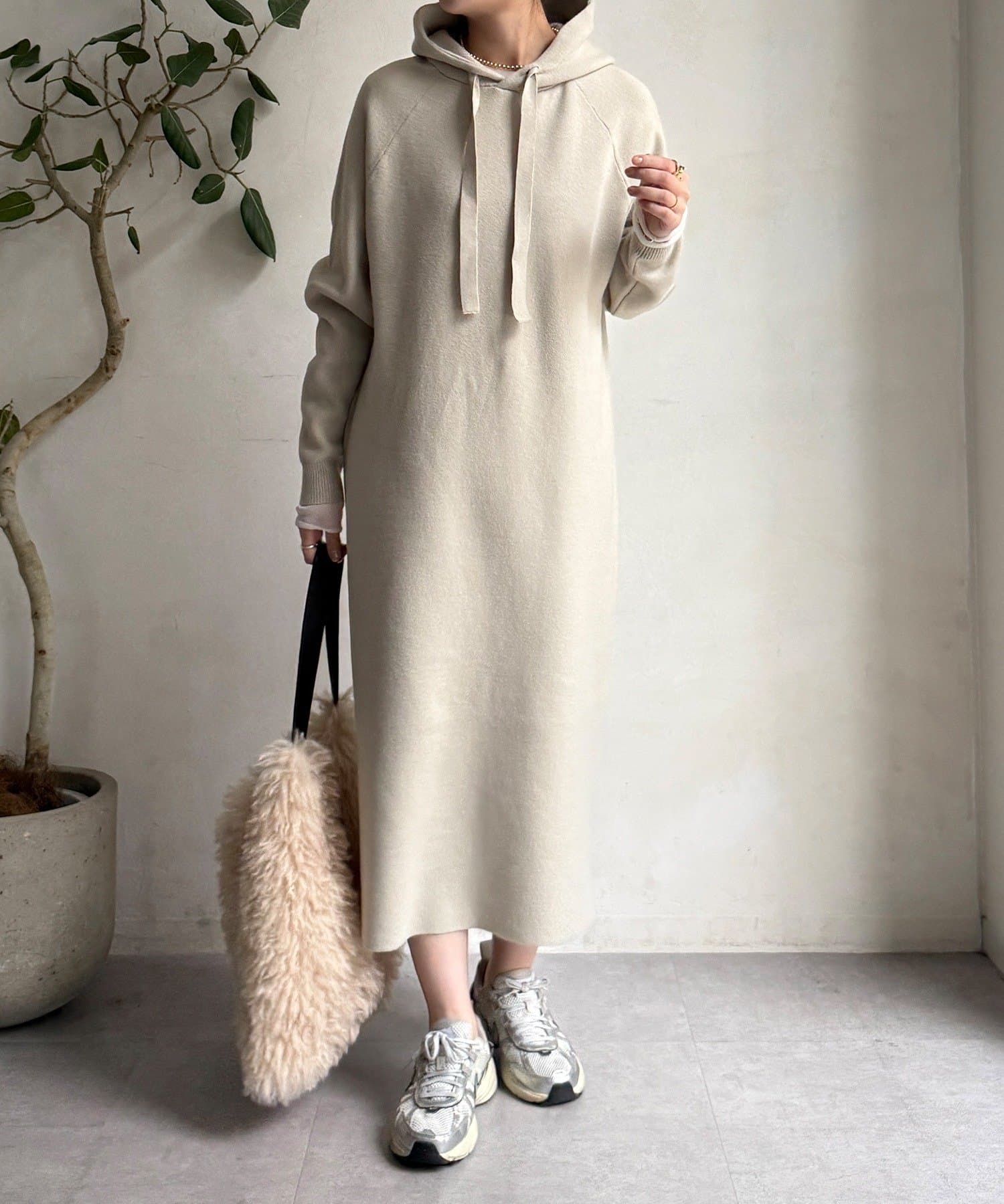 DOUDOU(ドゥドゥ) 【WEB限定】フーディーニットワンピース
