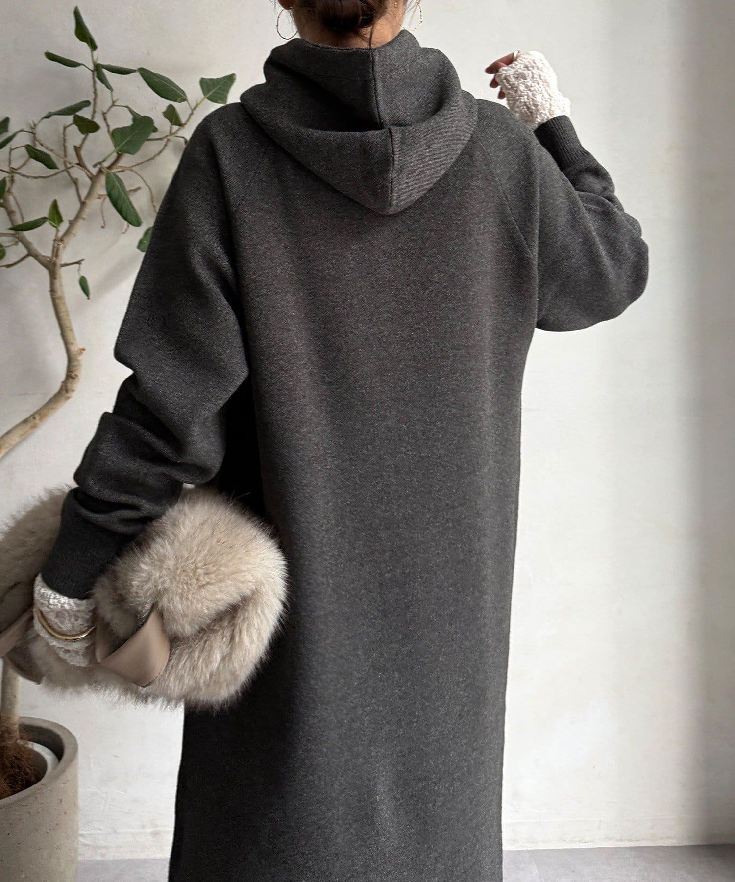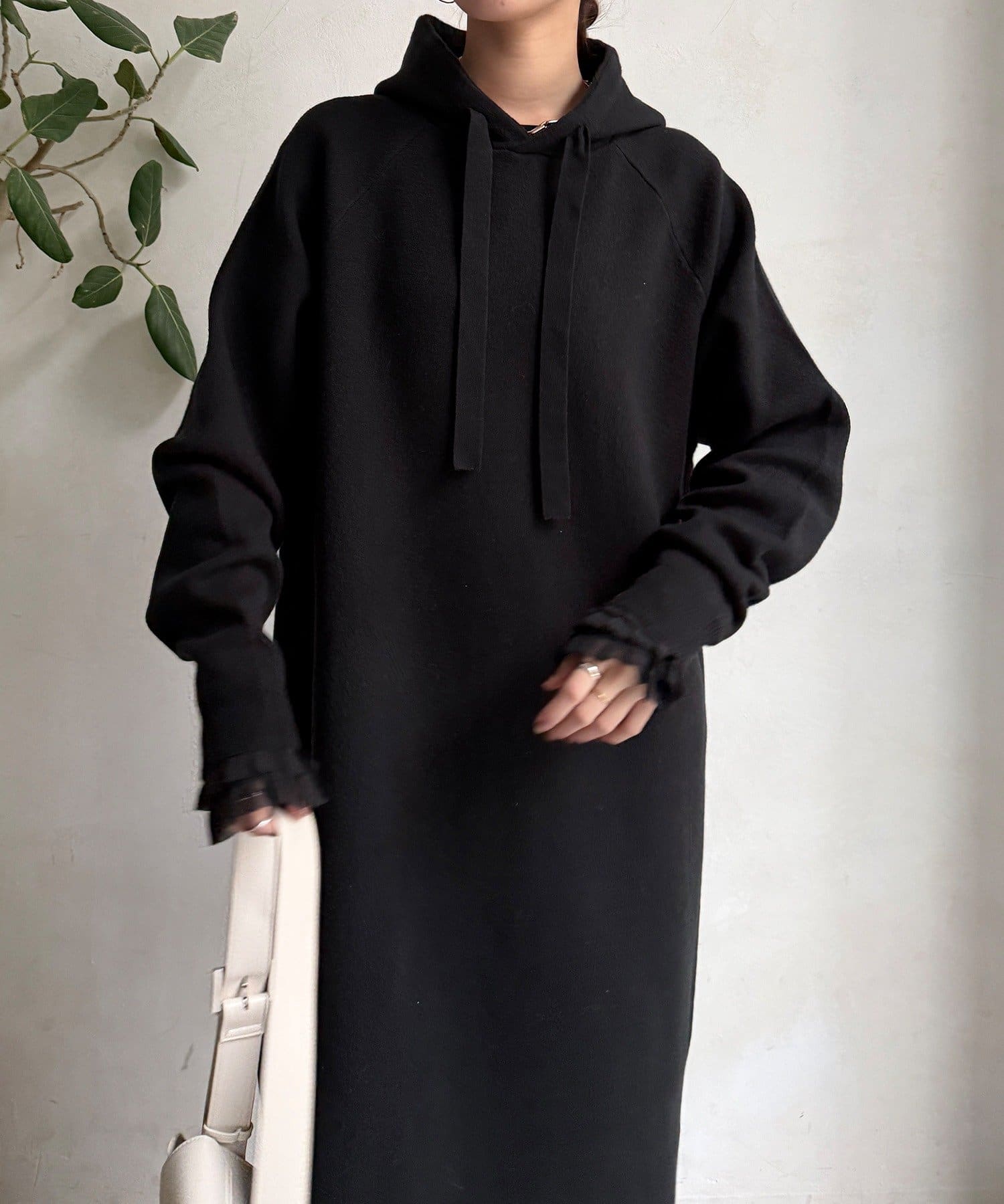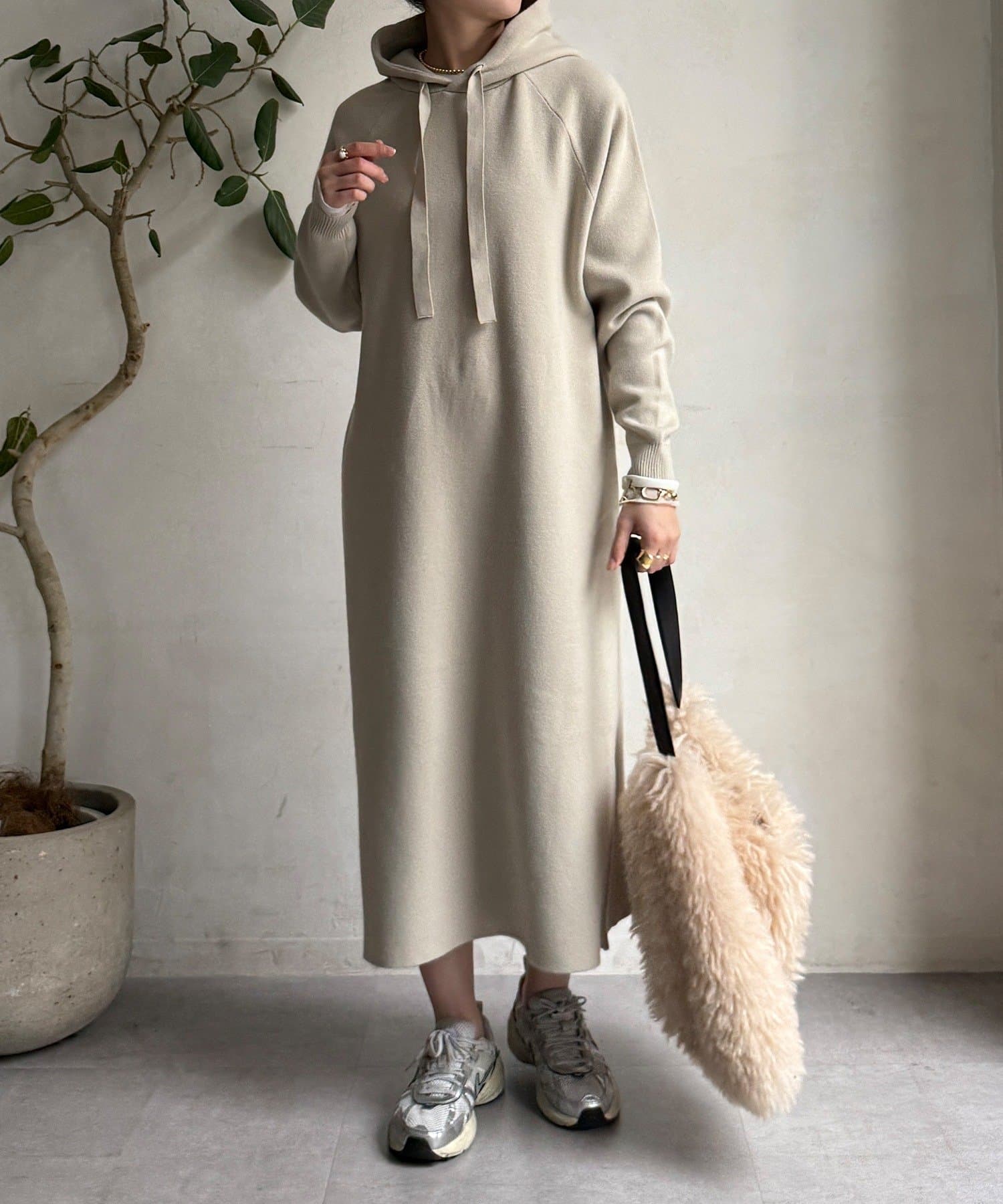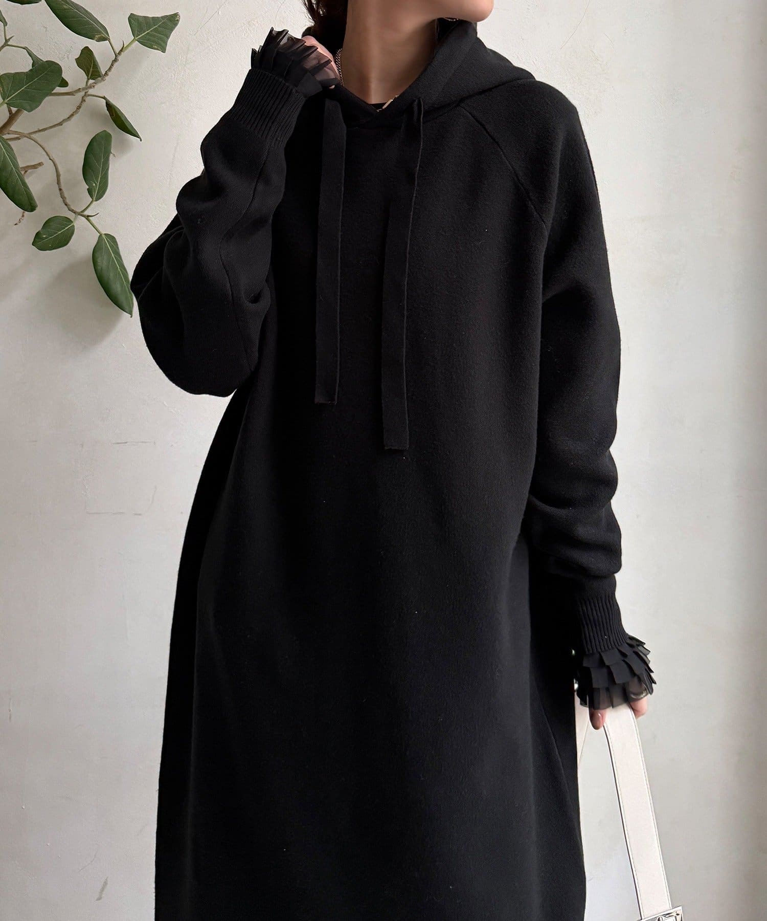 DOUDOU(ドゥドゥ) 【WEB限定】フーディーニットワンピース