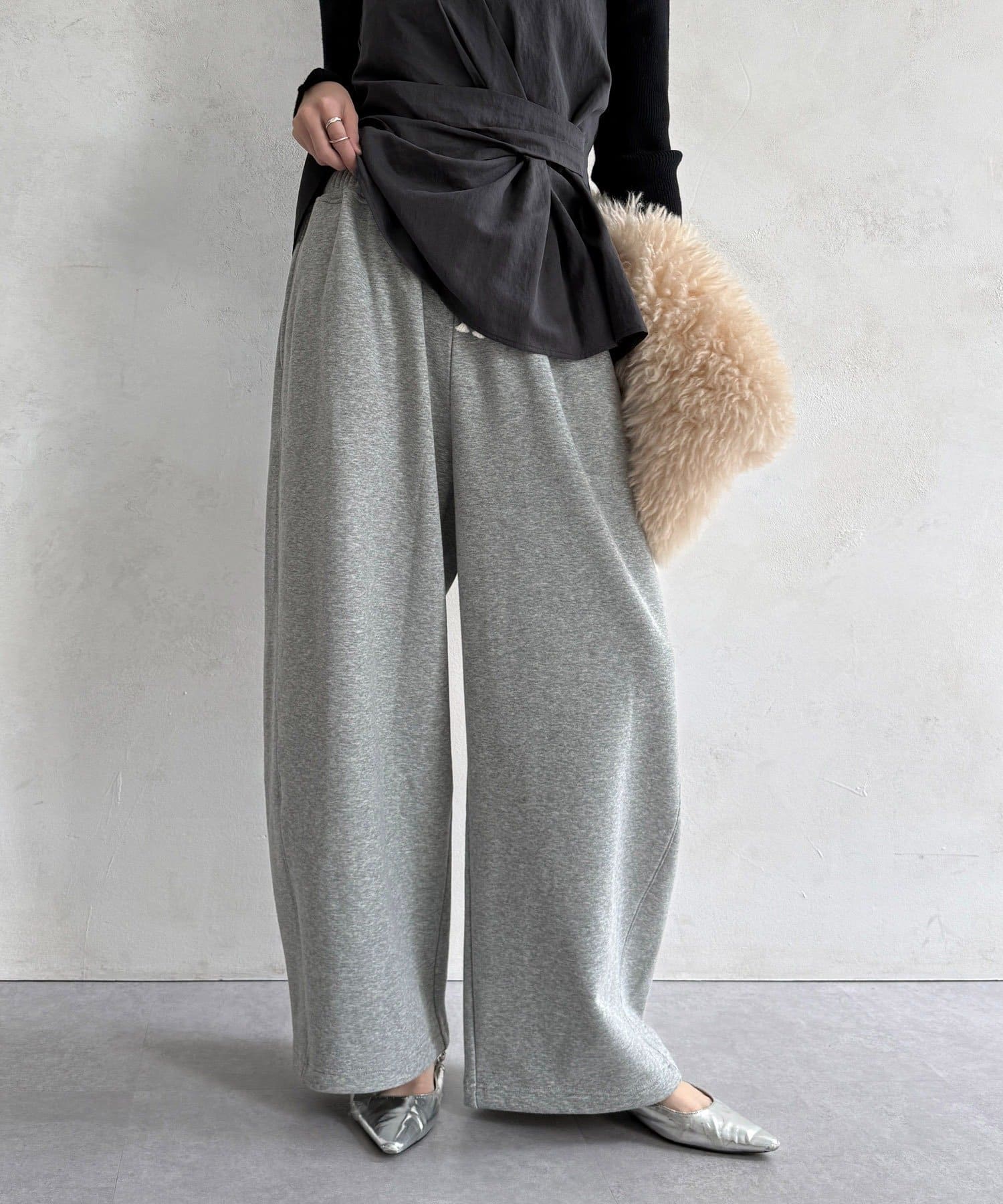 ラフなのに上品なシルエットを兼ね備えたスウエットパンツ。