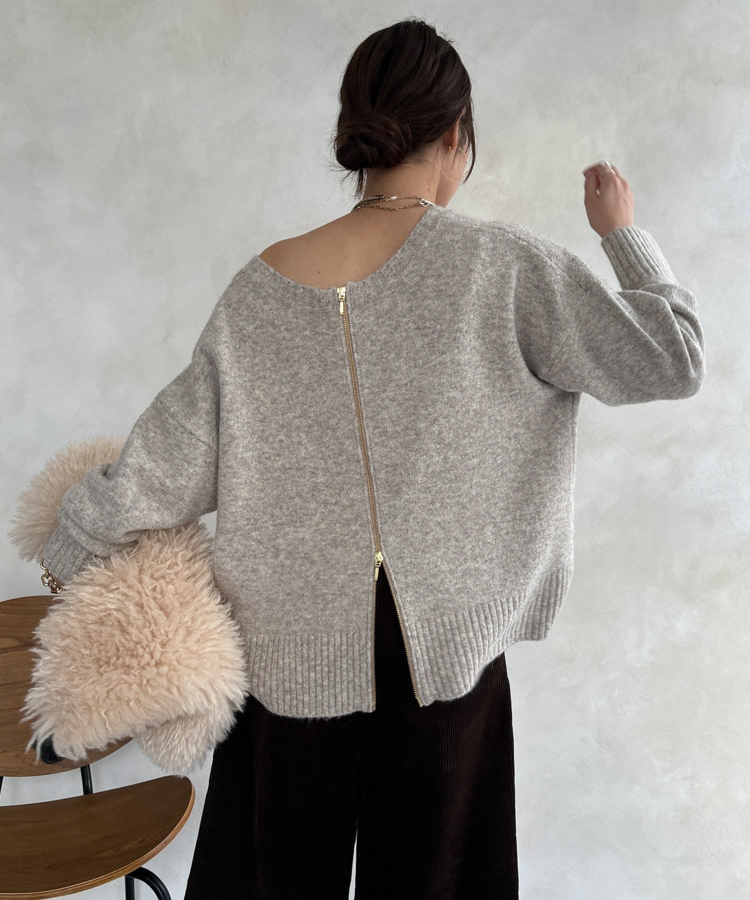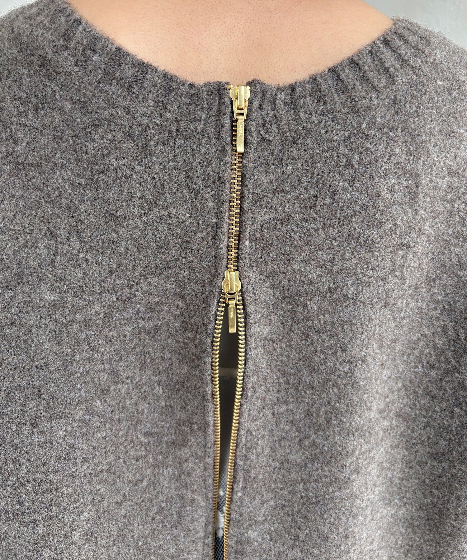 前後2WAYロゴニットプルオーバー〈ジップアップ&ロゴ〉