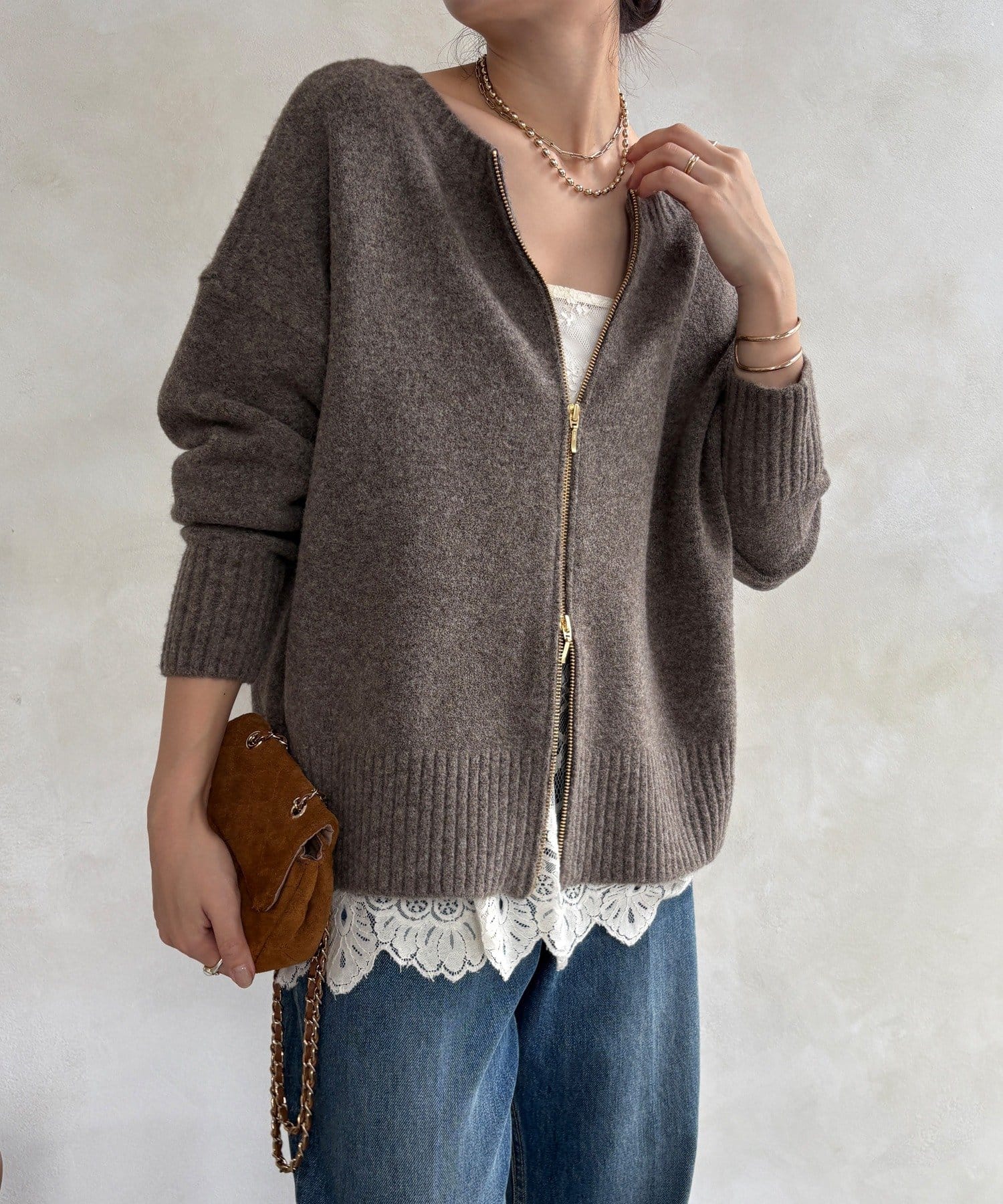 上下どちらからも開閉できるダブルジップ仕様で、着こなしのアレンジは自由自在!