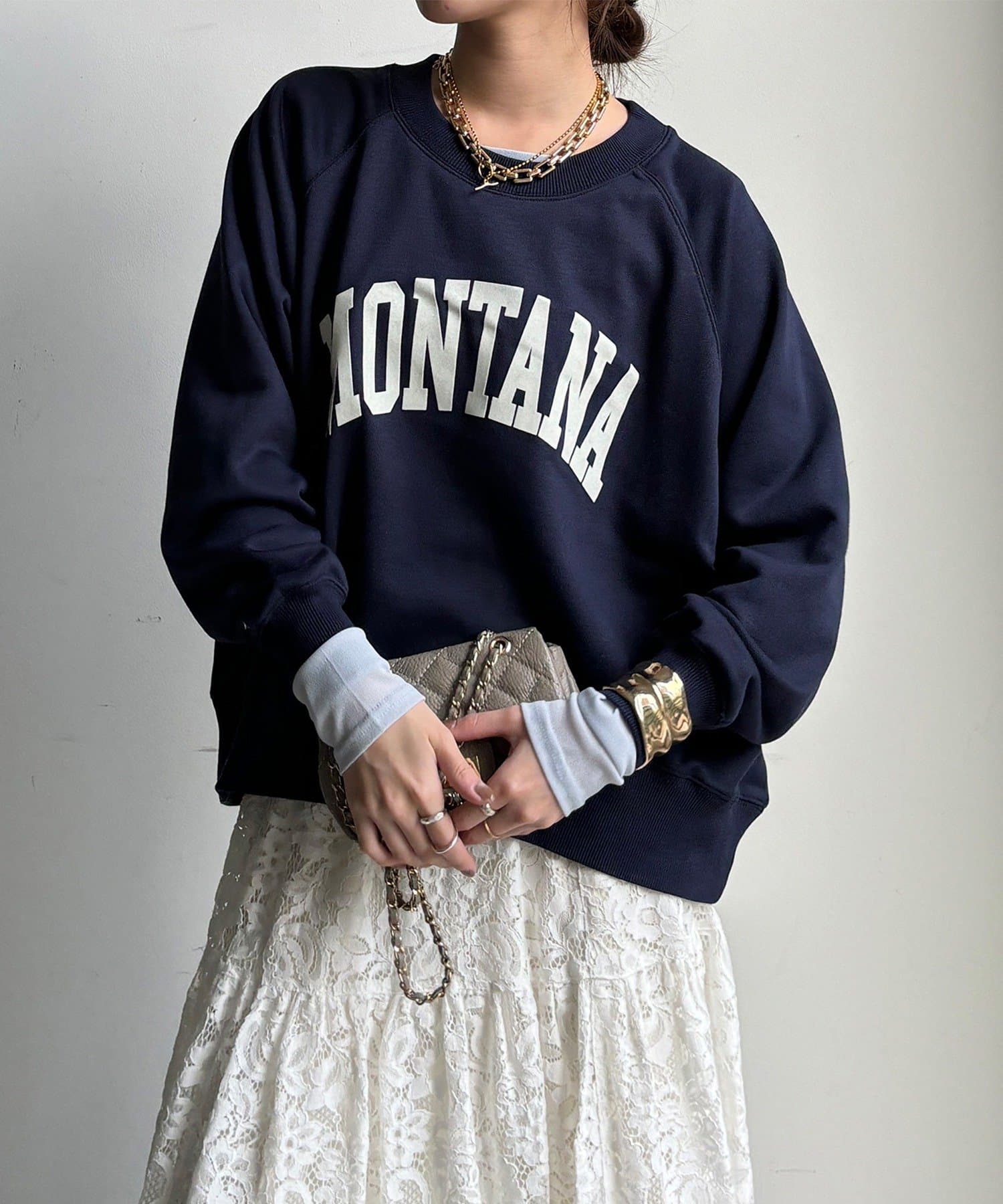 大き目のロゴを施された大人可愛い1枚です。