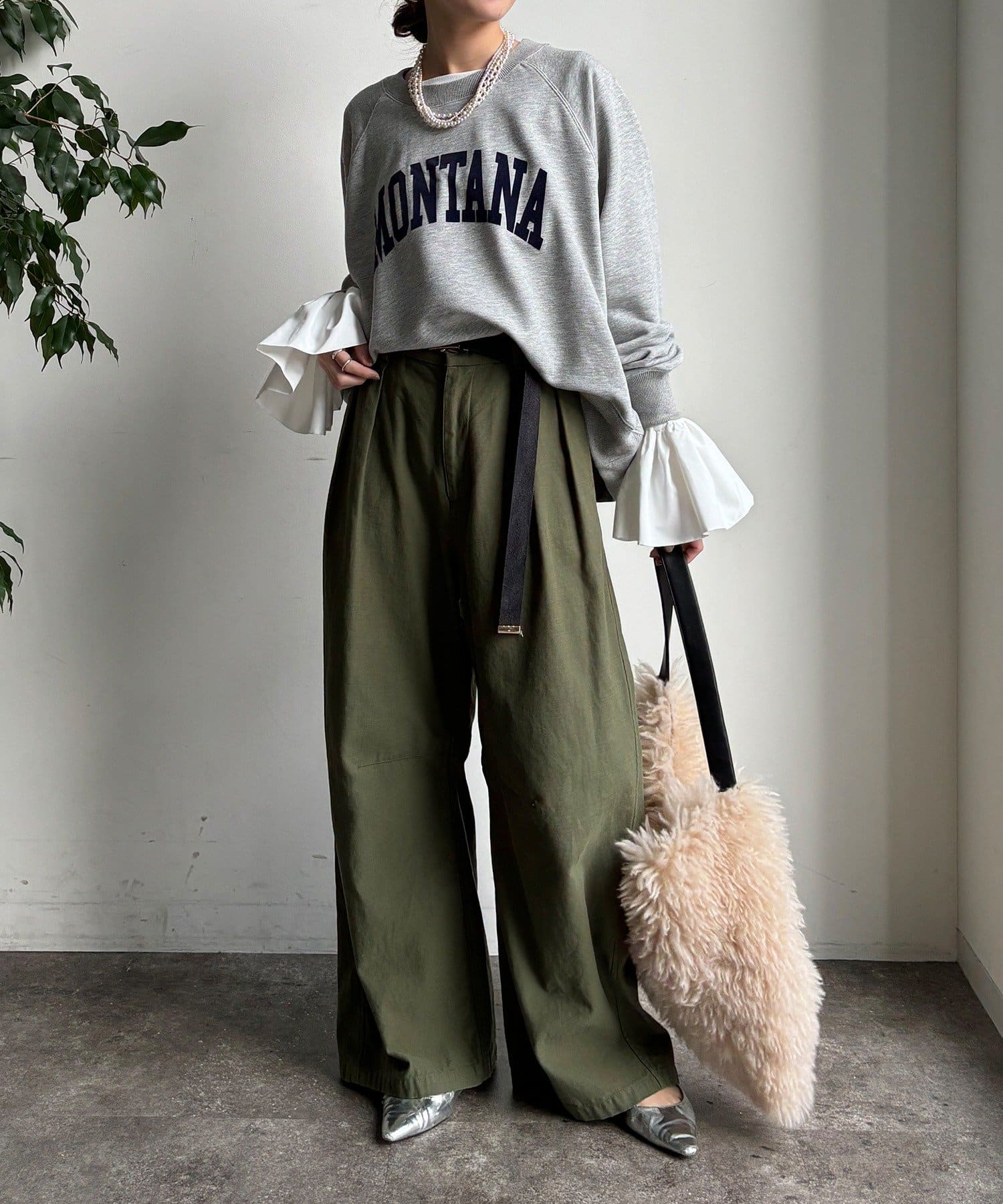 リラックス感もありつつも大人っぽいバランスの良いシルエットです。