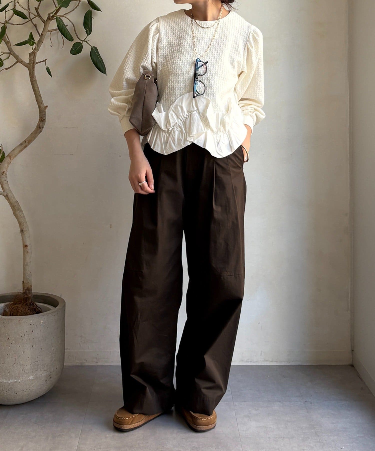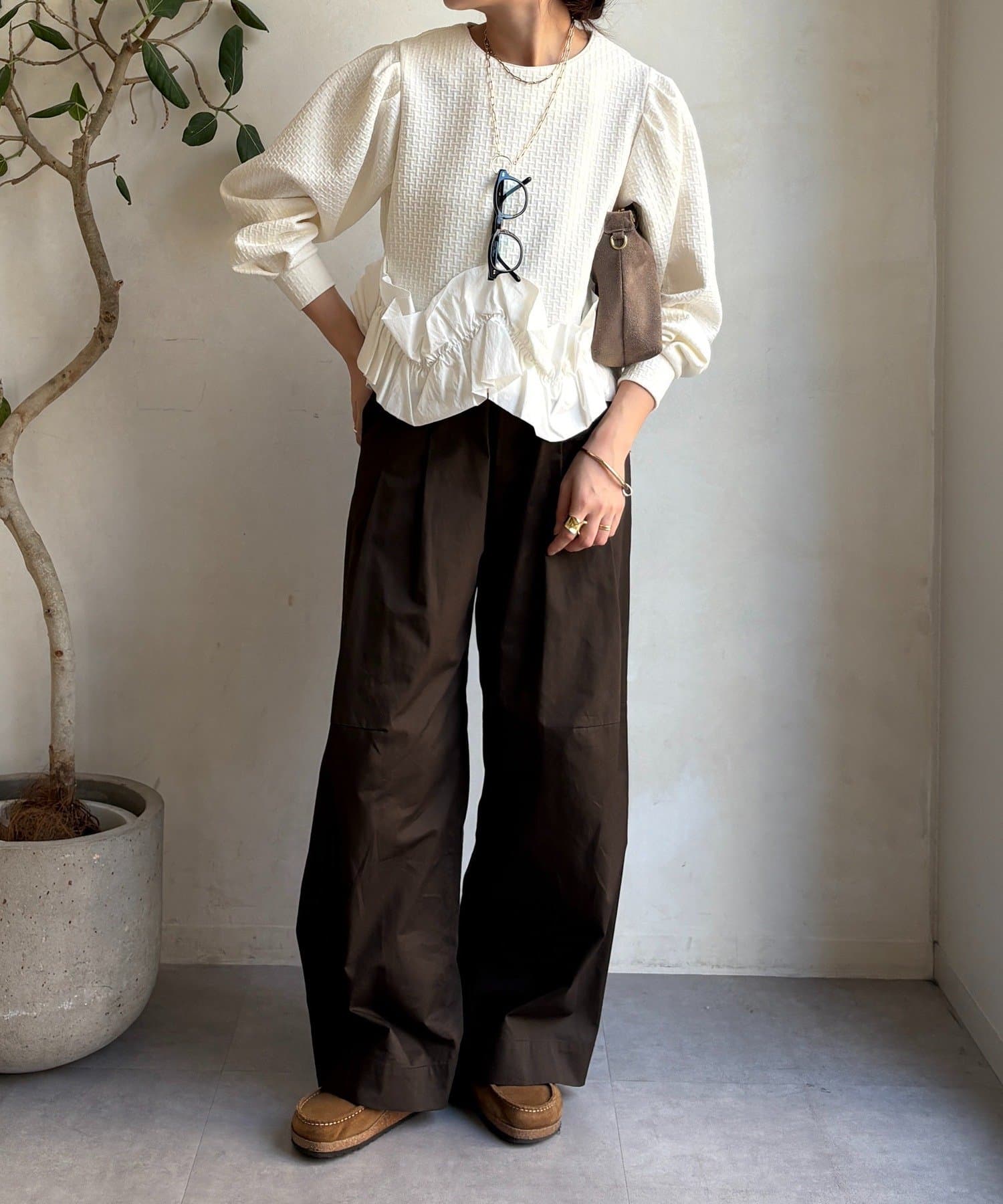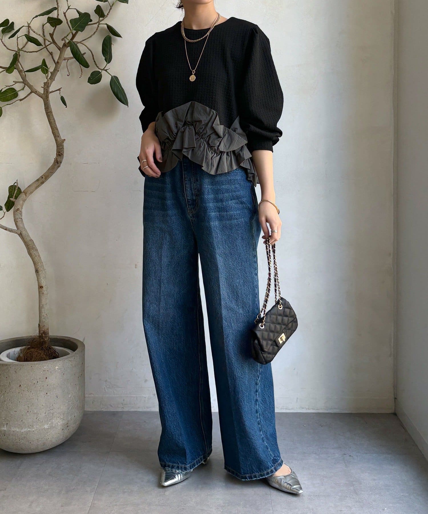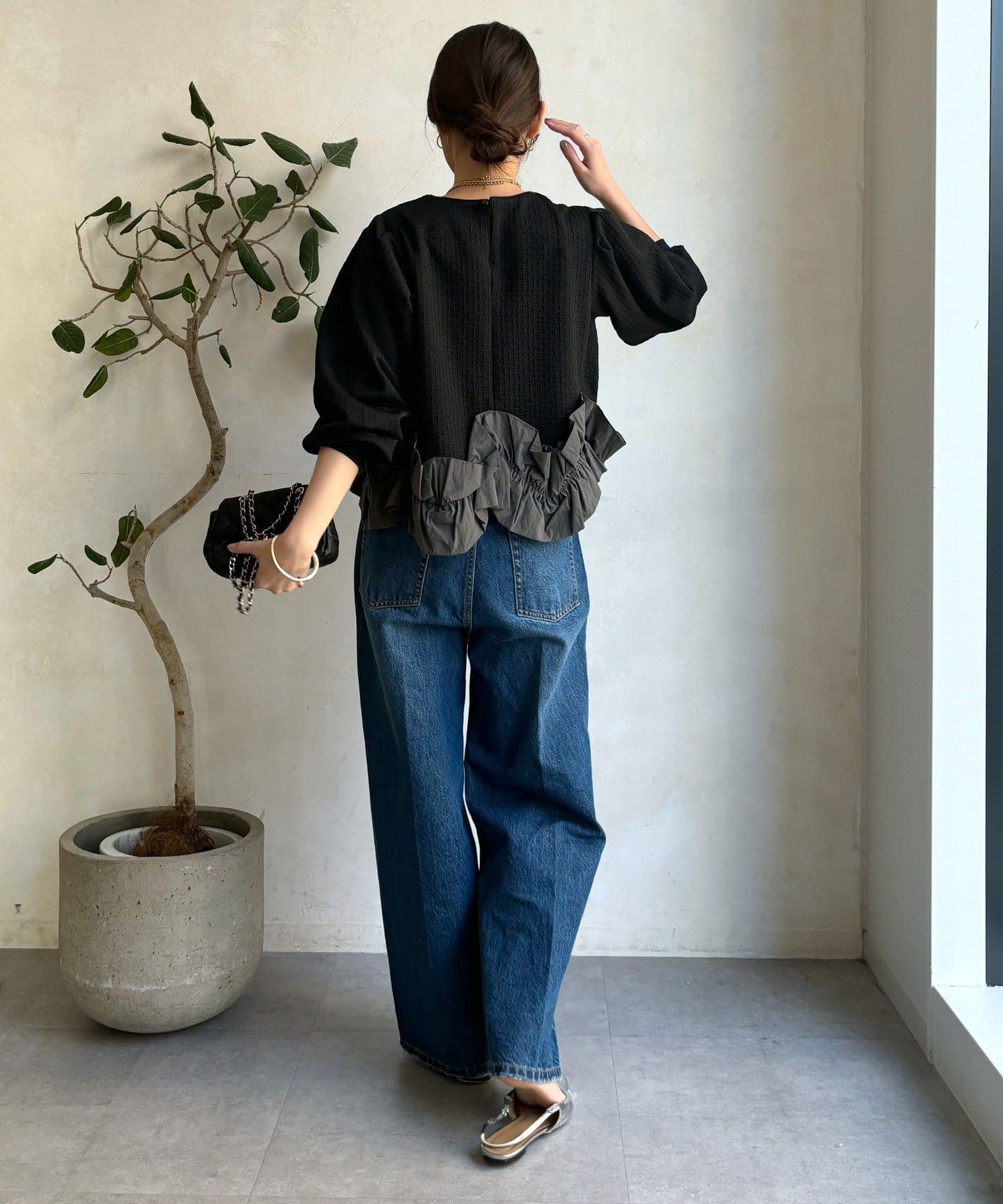 裾にあしらわれたフリル。程よいボリューム感で立体的に仕上げられており軽やかに揺れる姿が印象的。