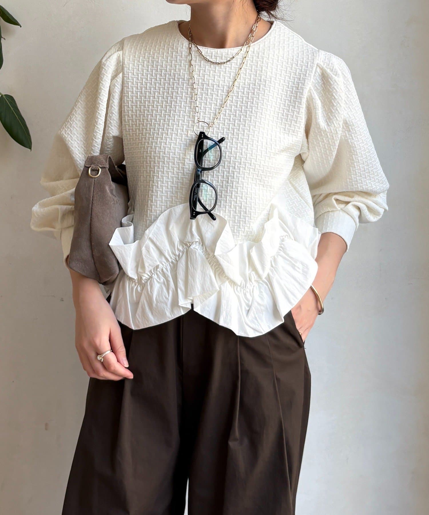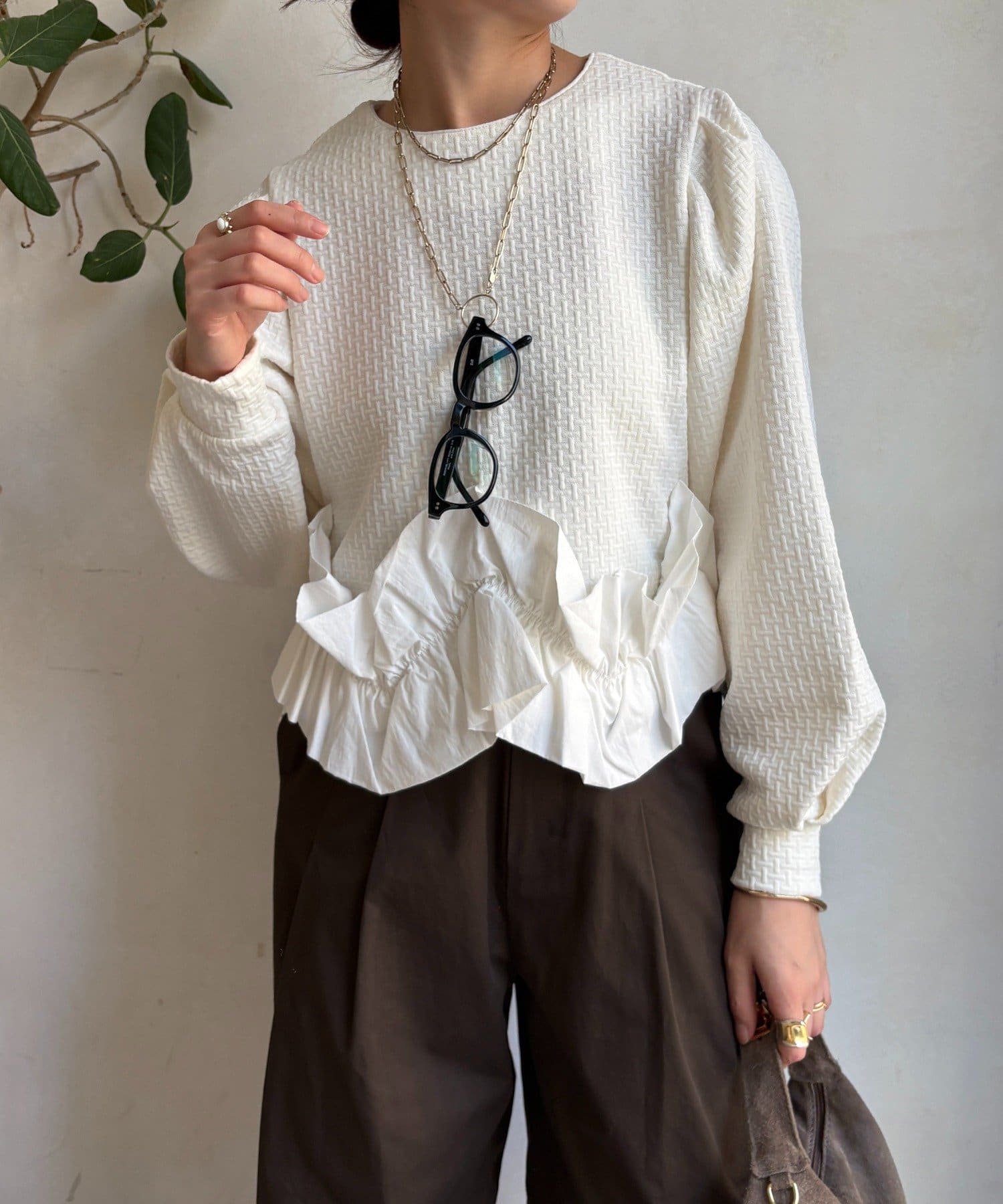 オトナカワイイ!フクレジャガード裾フリルトップス