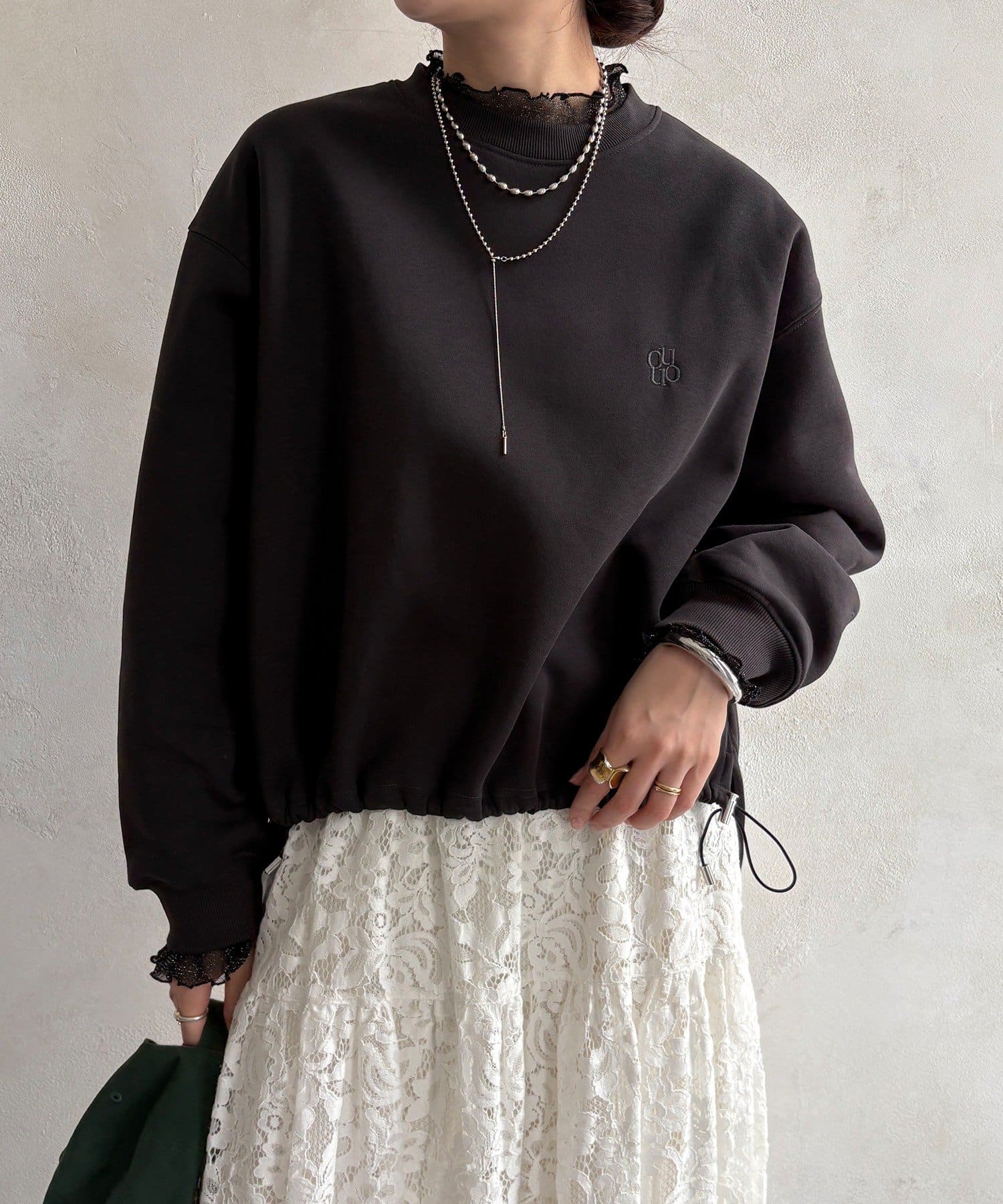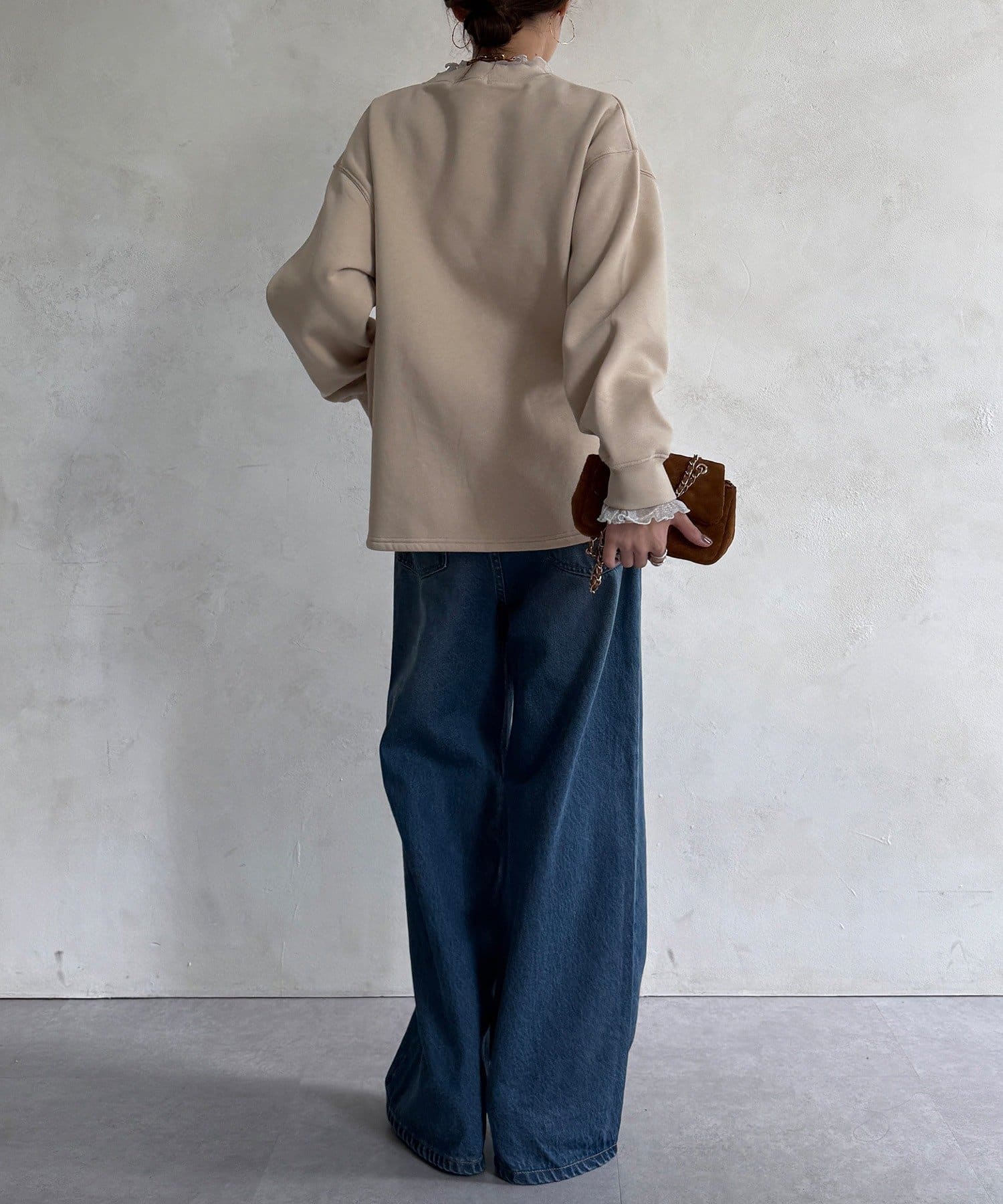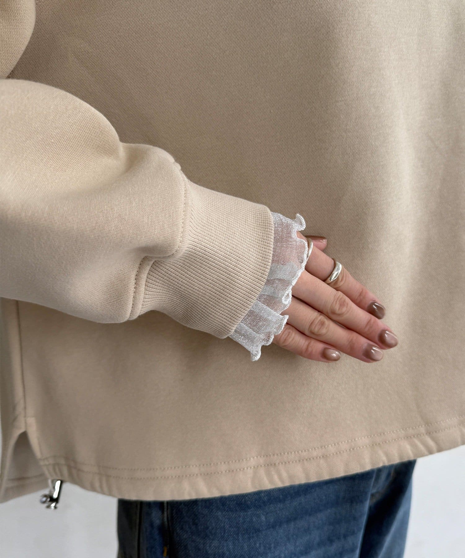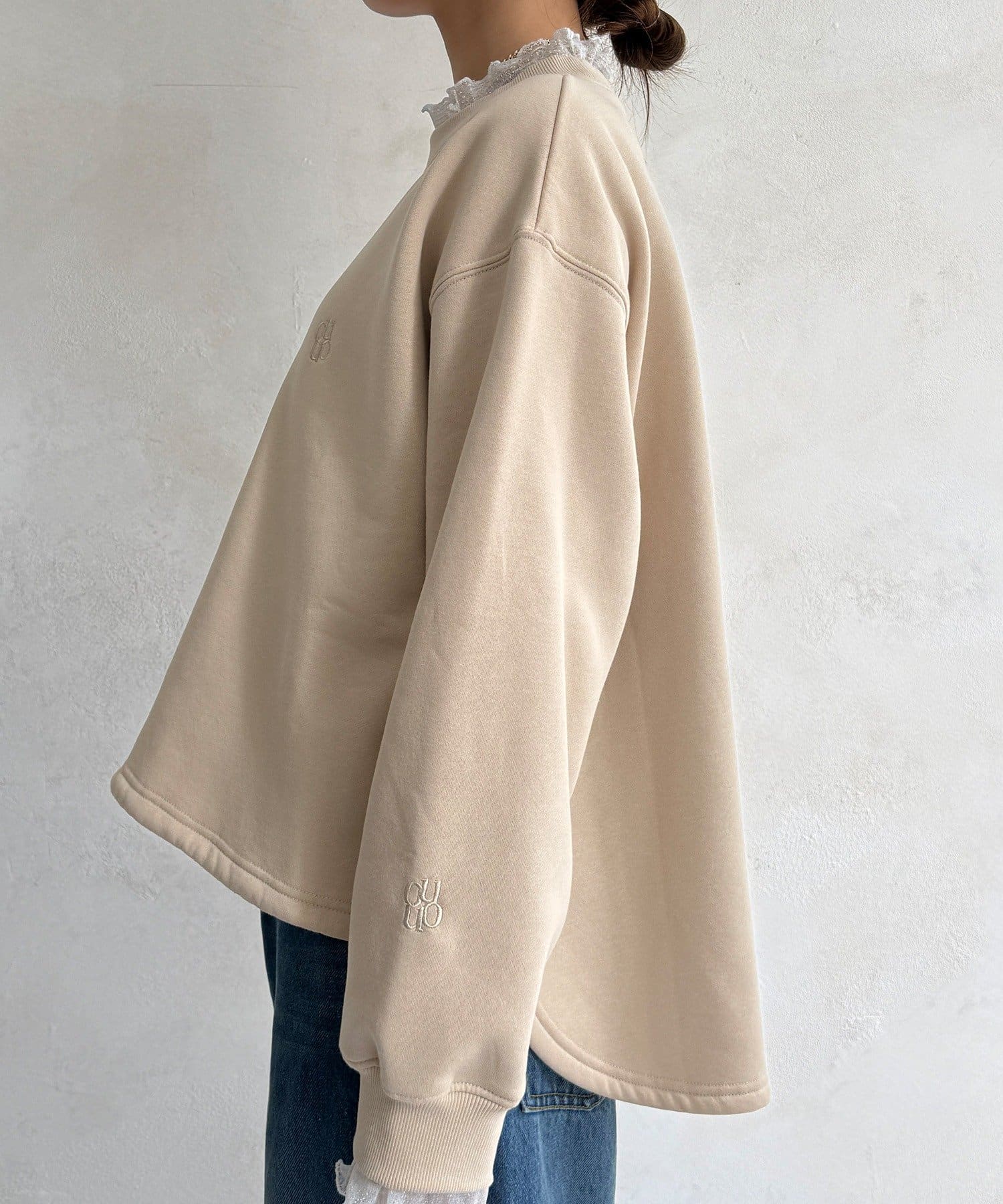 • DOUDOU(ドゥドゥ) 【WEB限定】シアーレイヤード刺繍裏起毛トップス