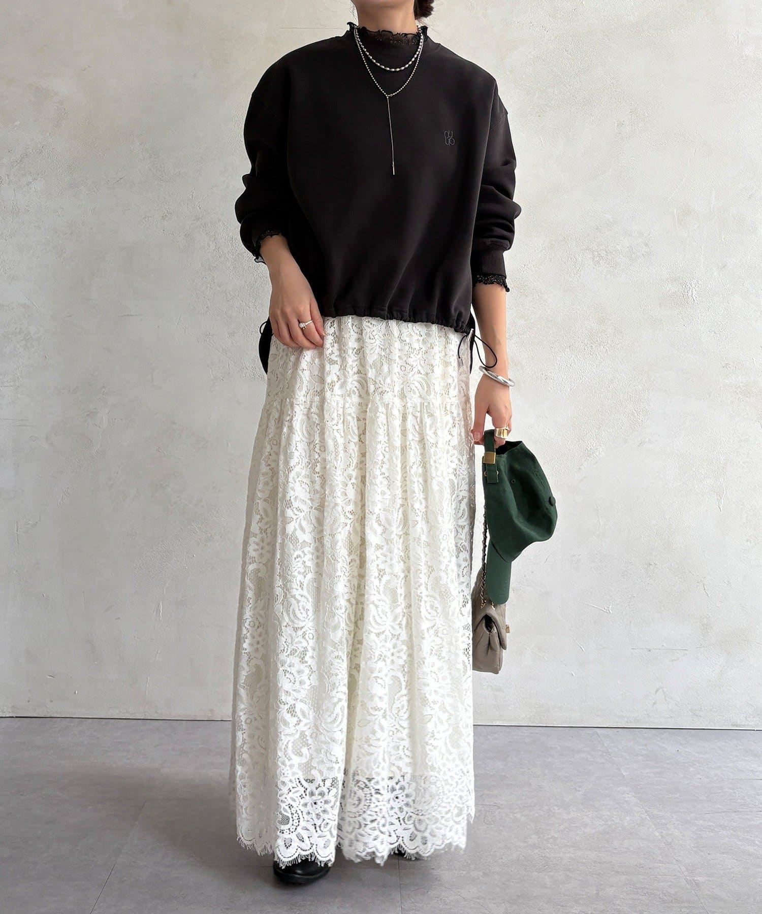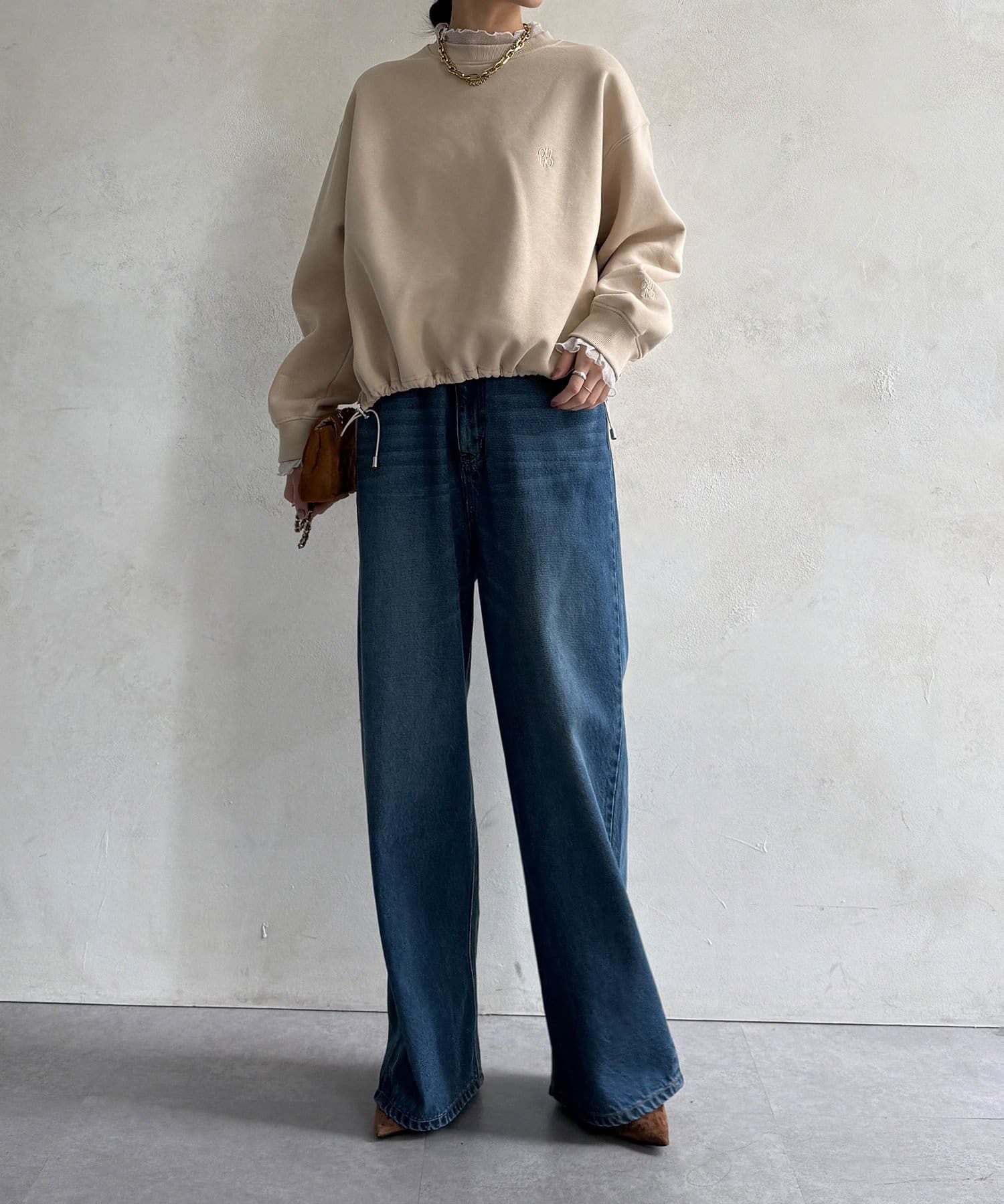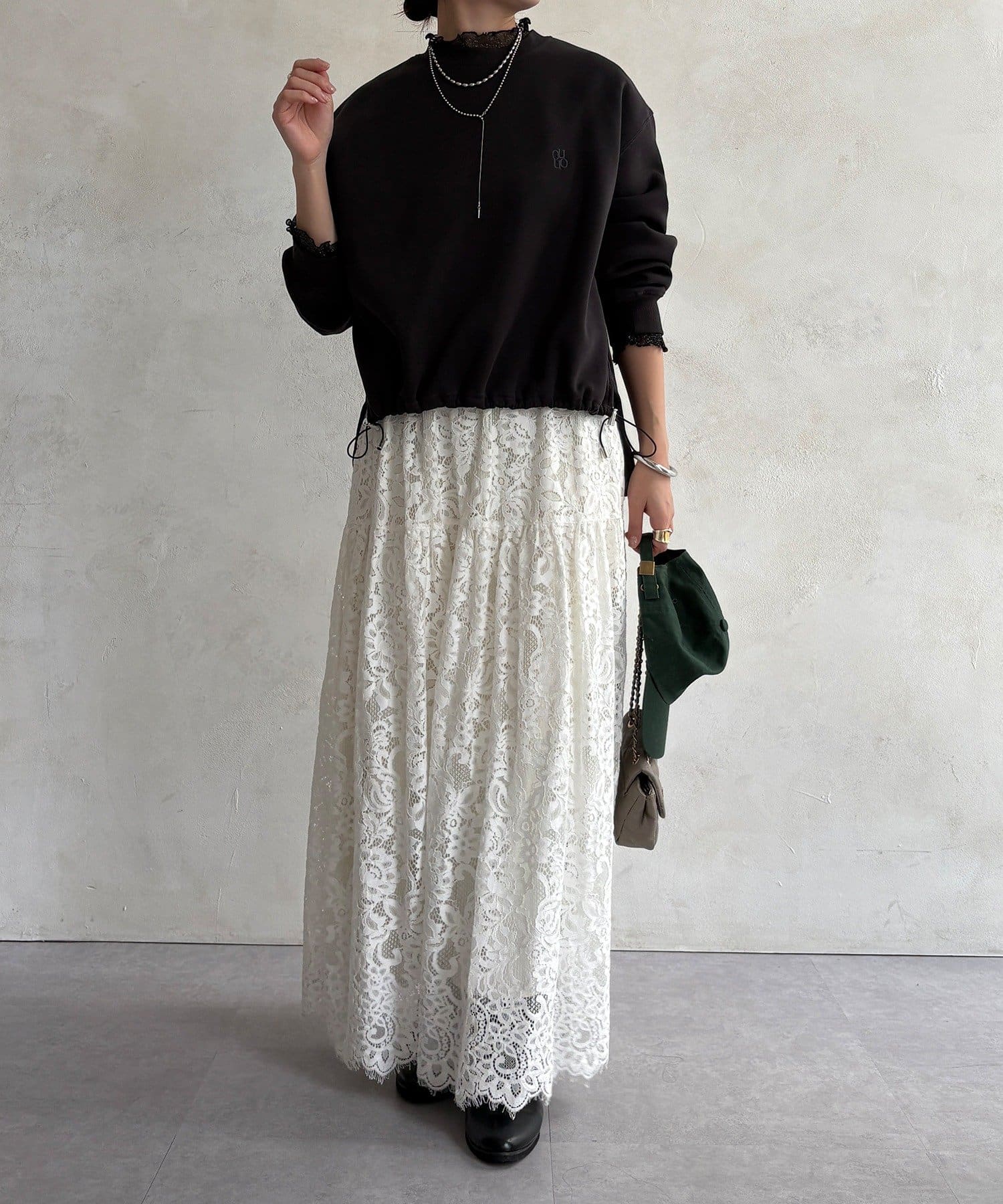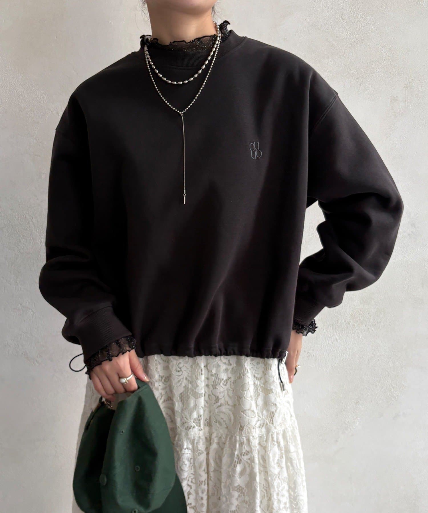 • DOUDOU(ドゥドゥ) 【WEB限定】シアーレイヤード刺繍裏起毛トップス
