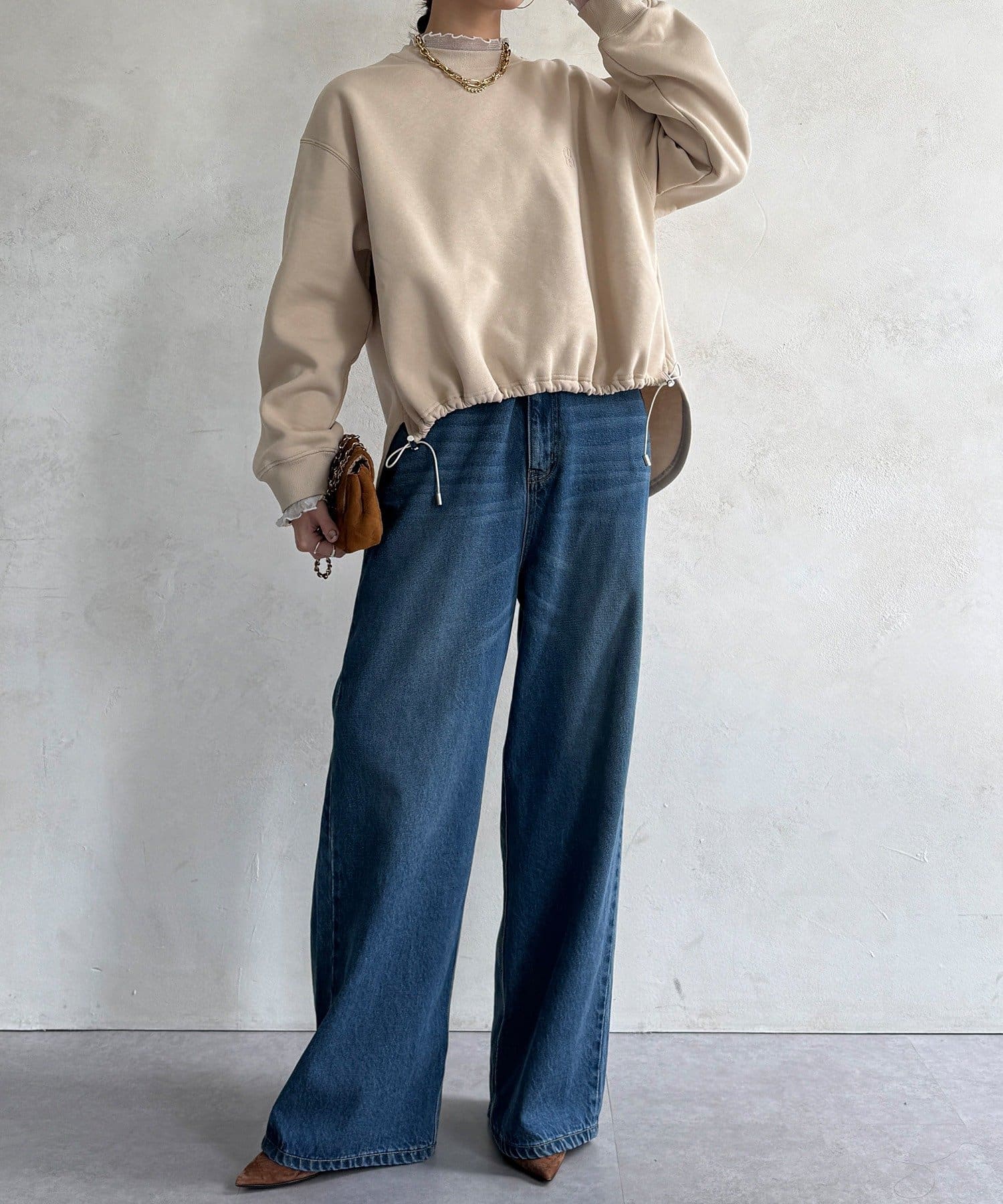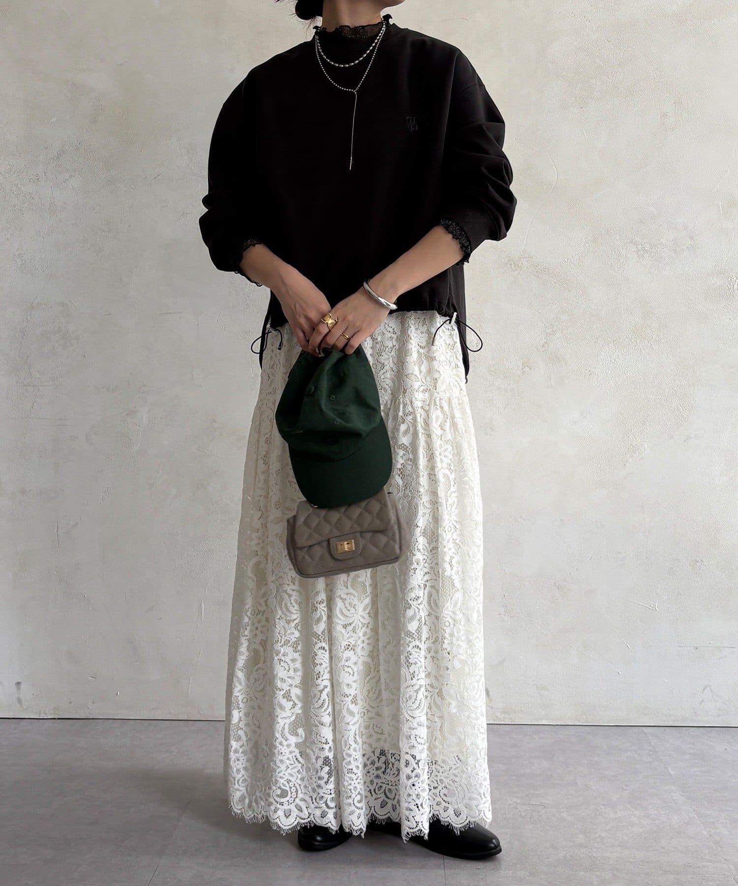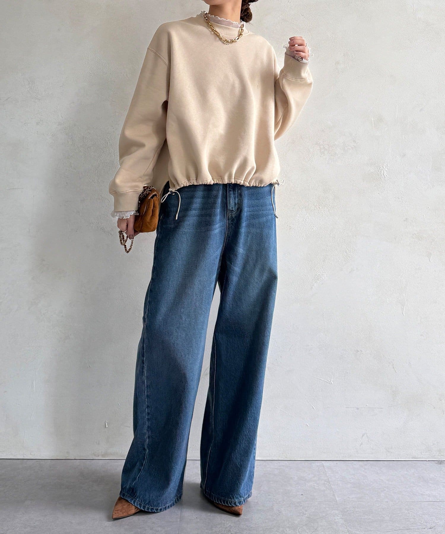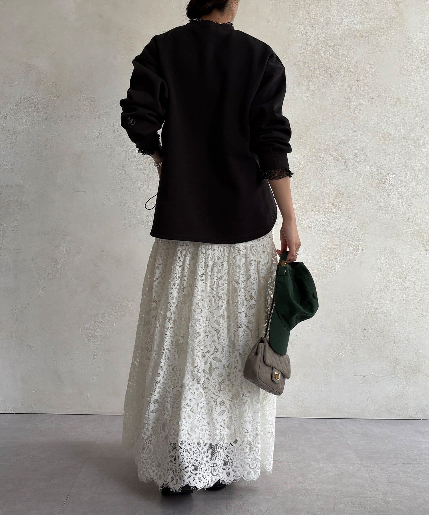 • DOUDOU(ドゥドゥ) 【WEB限定】シアーレイヤード刺繍裏起毛トップス