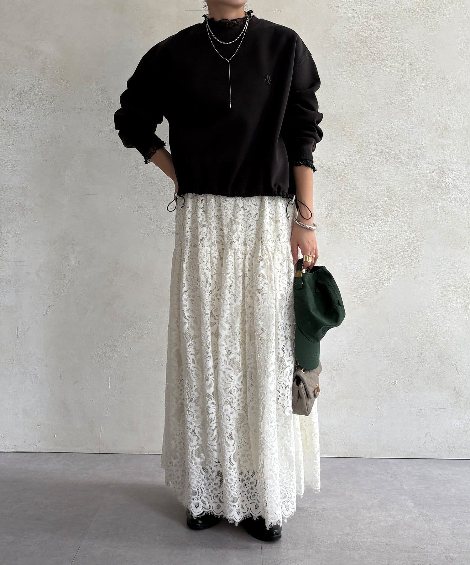 TOP > DOUDOU > レディース > トップス > Tシャツ/カットソー > 【WEB限定】シアーレイヤード刺繍裏起毛トップス