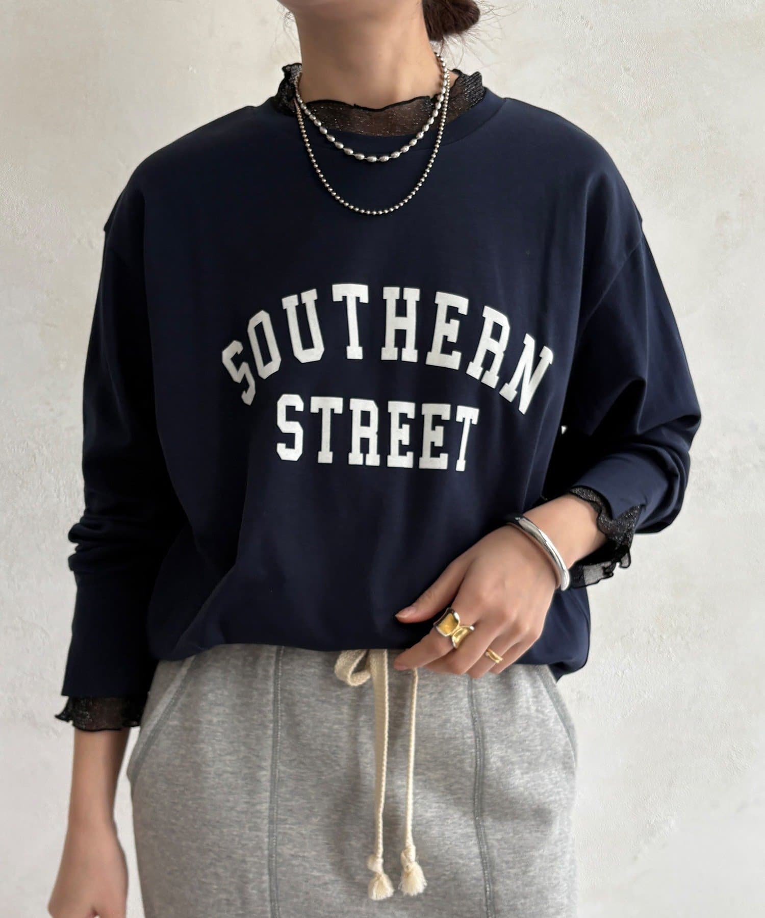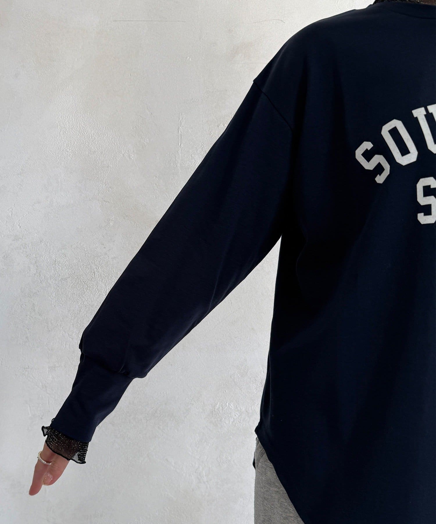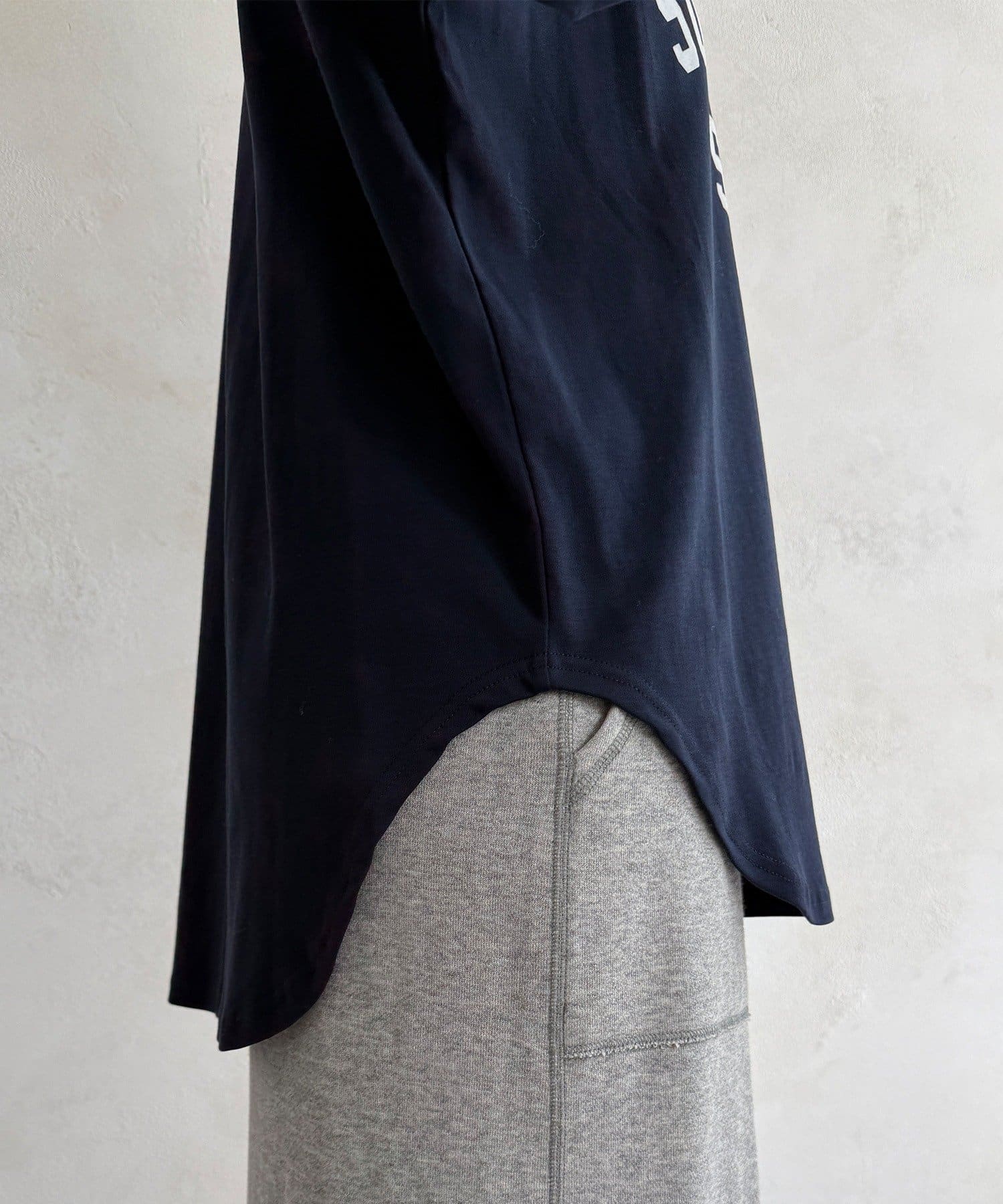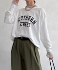 フロッキー加工のロゴが可愛い、ロングシーズン着れるトップス