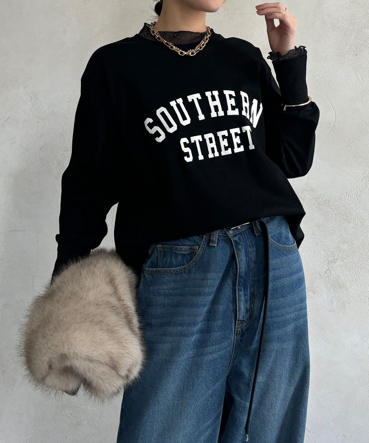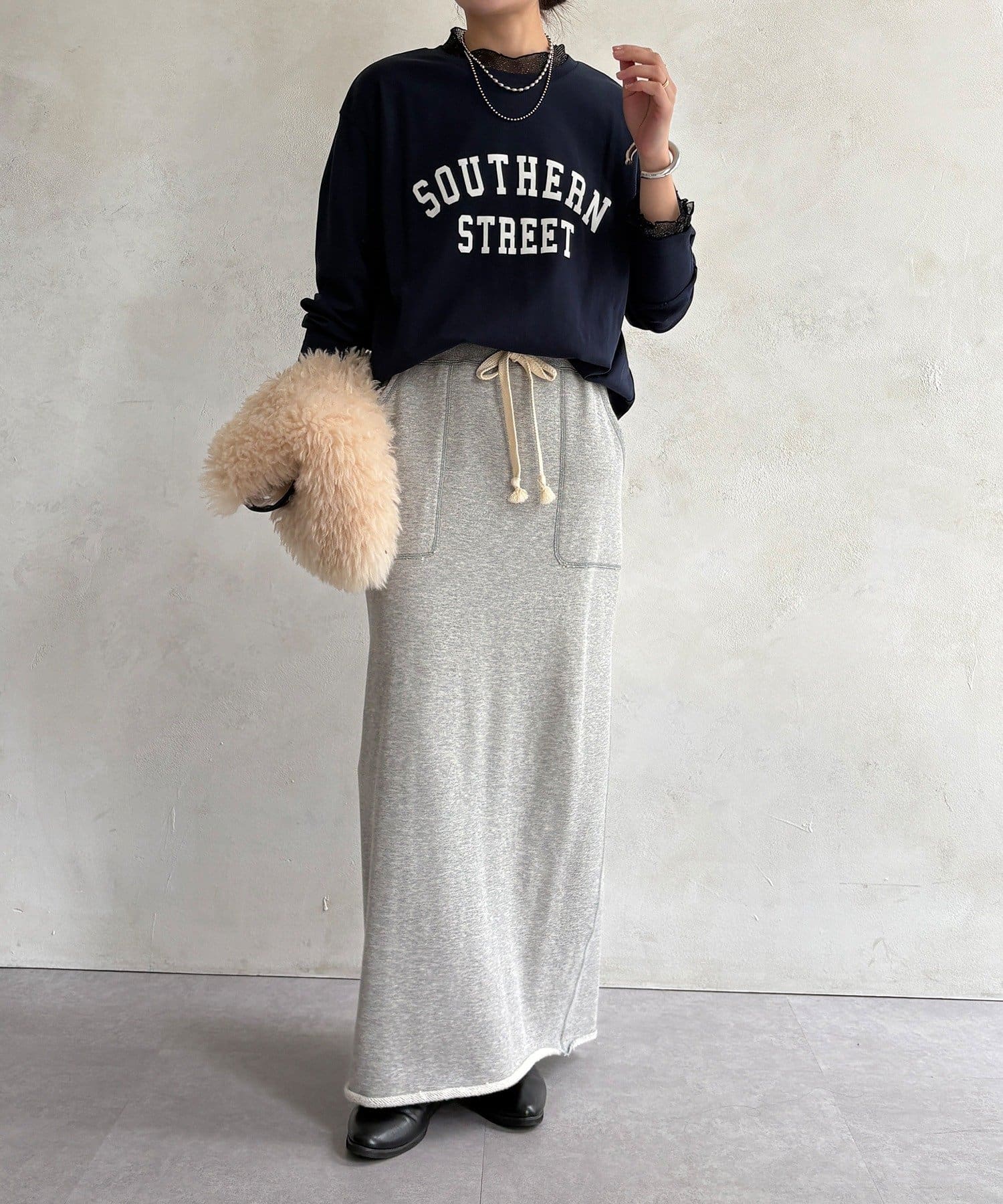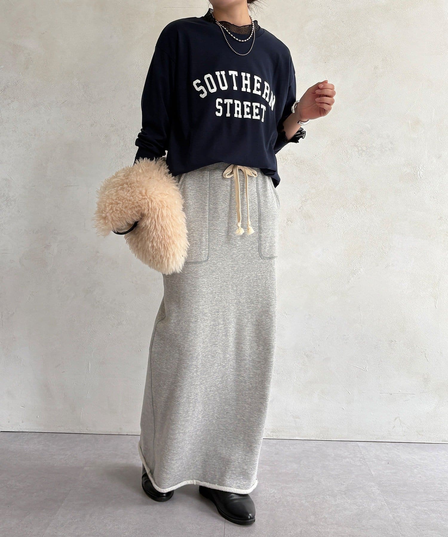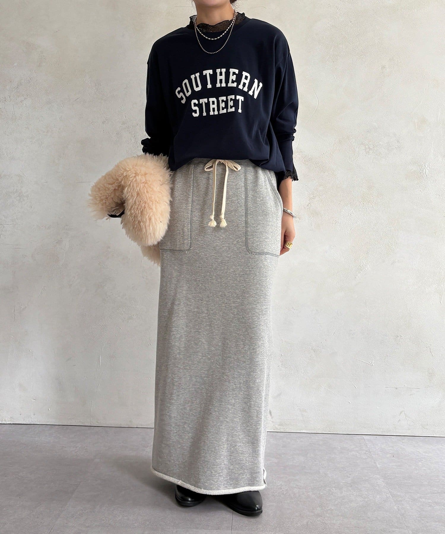 フロッキー加工のロゴが可愛い、ロングシーズン着れるトップス