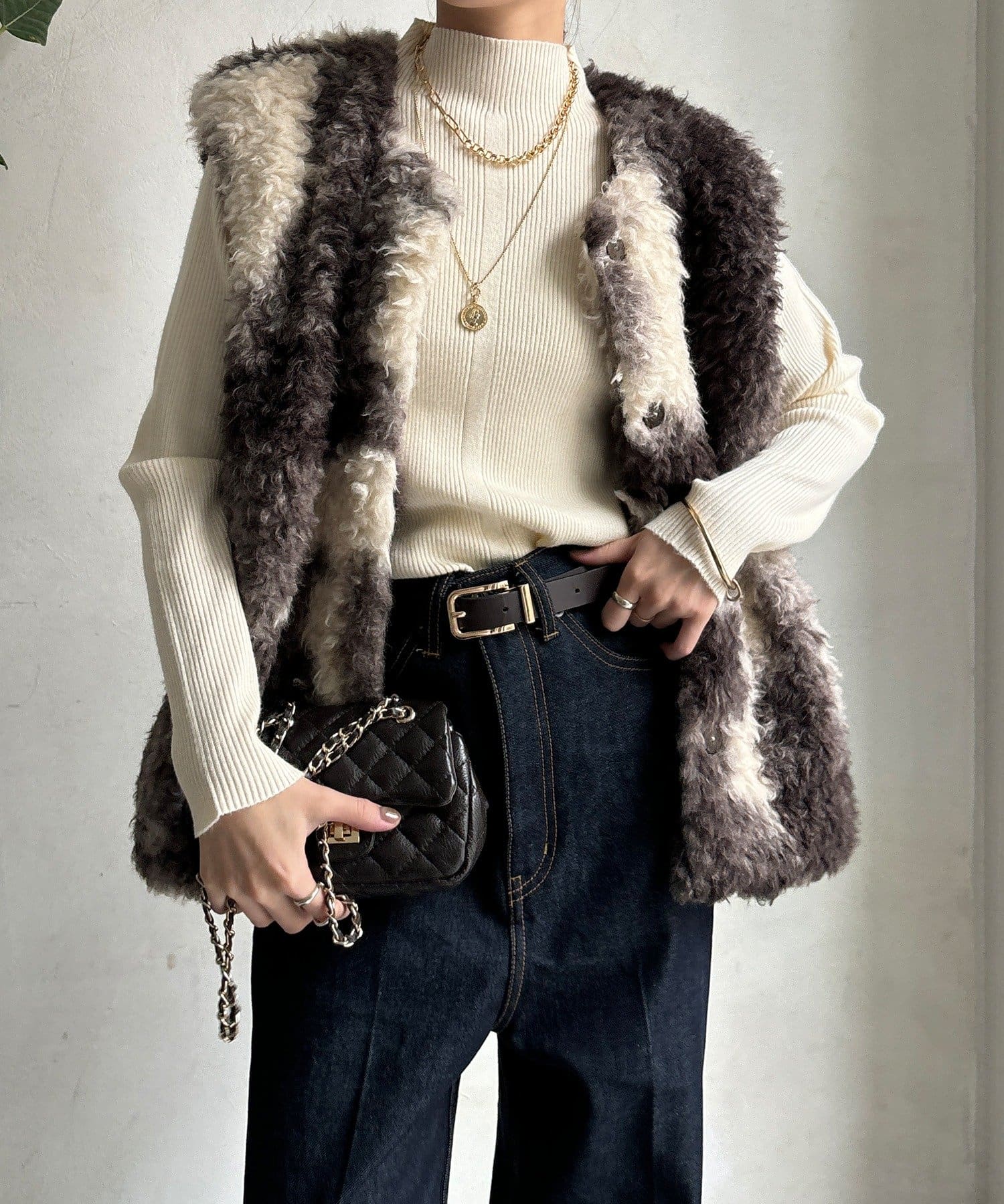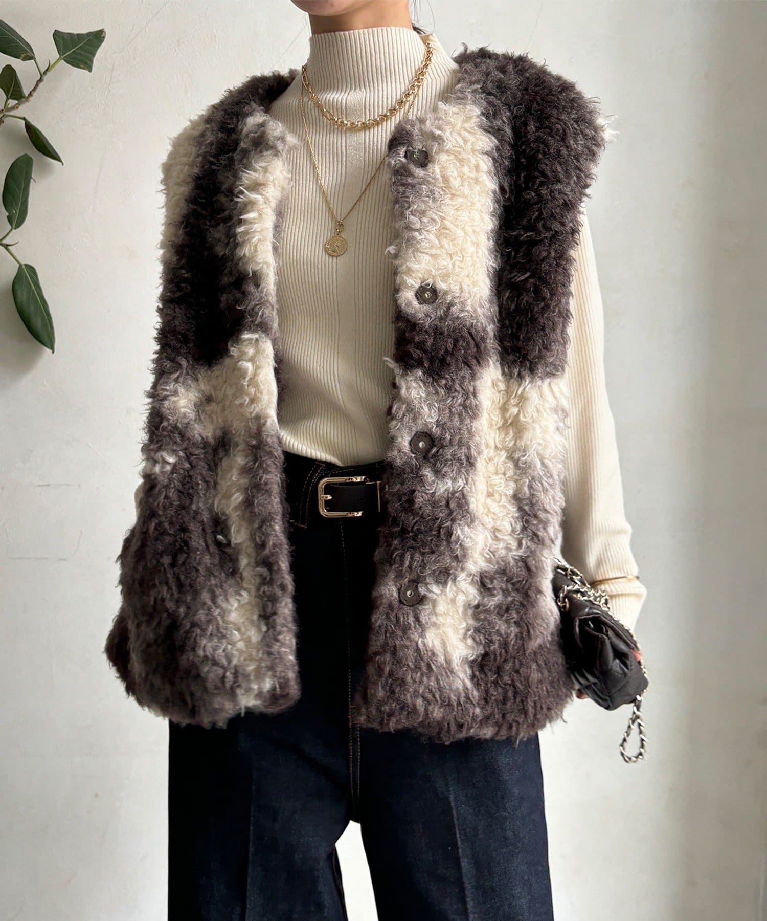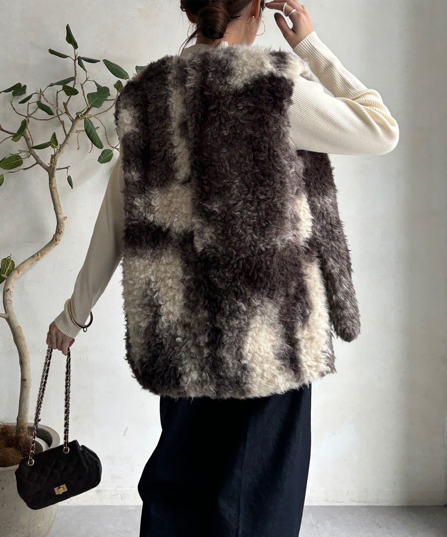 TOP > DOUDOU > レディース > ジャケット/アウター > ベスト/ジレ > 【WEB限定】プードルファーグラデーションベスト