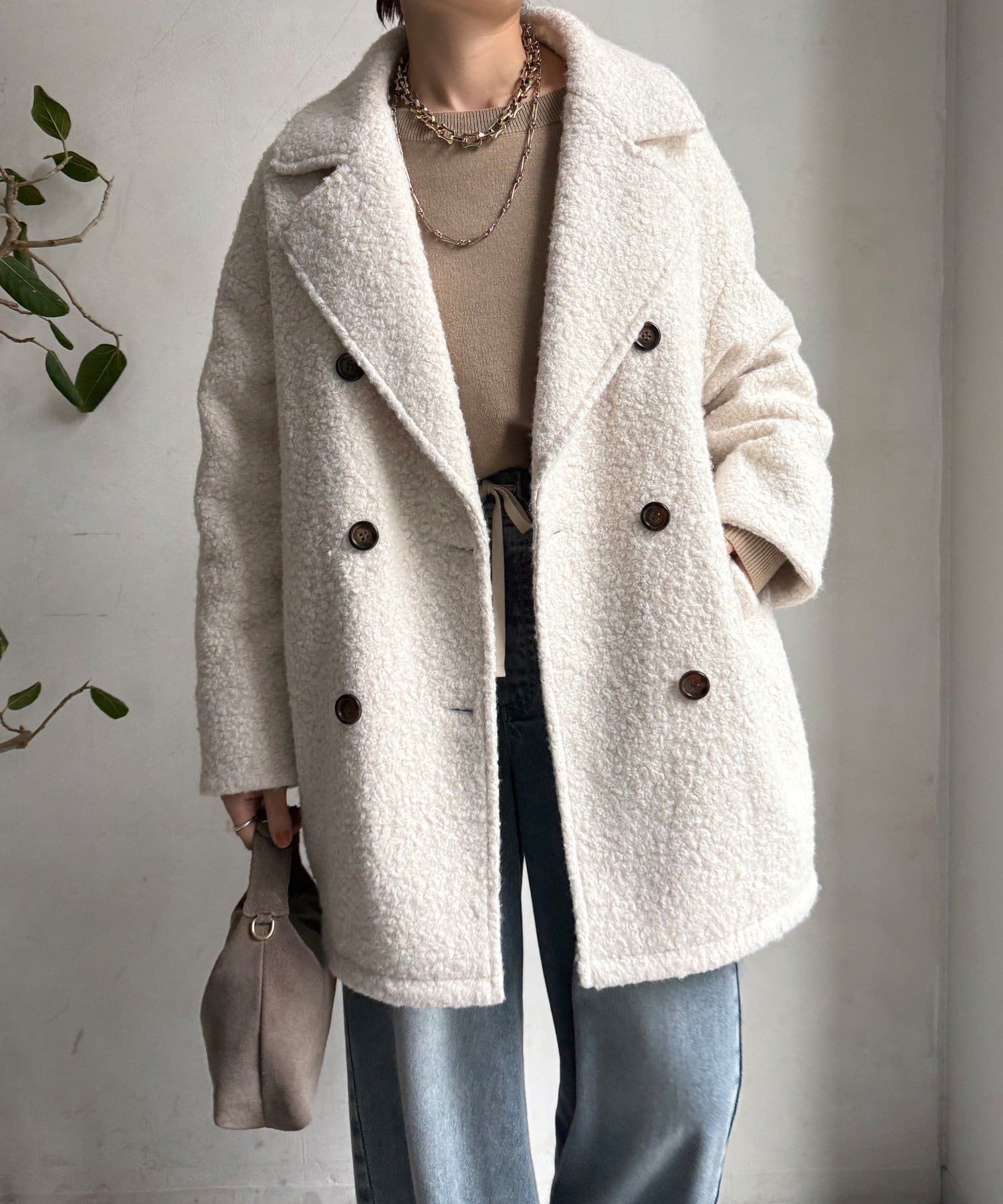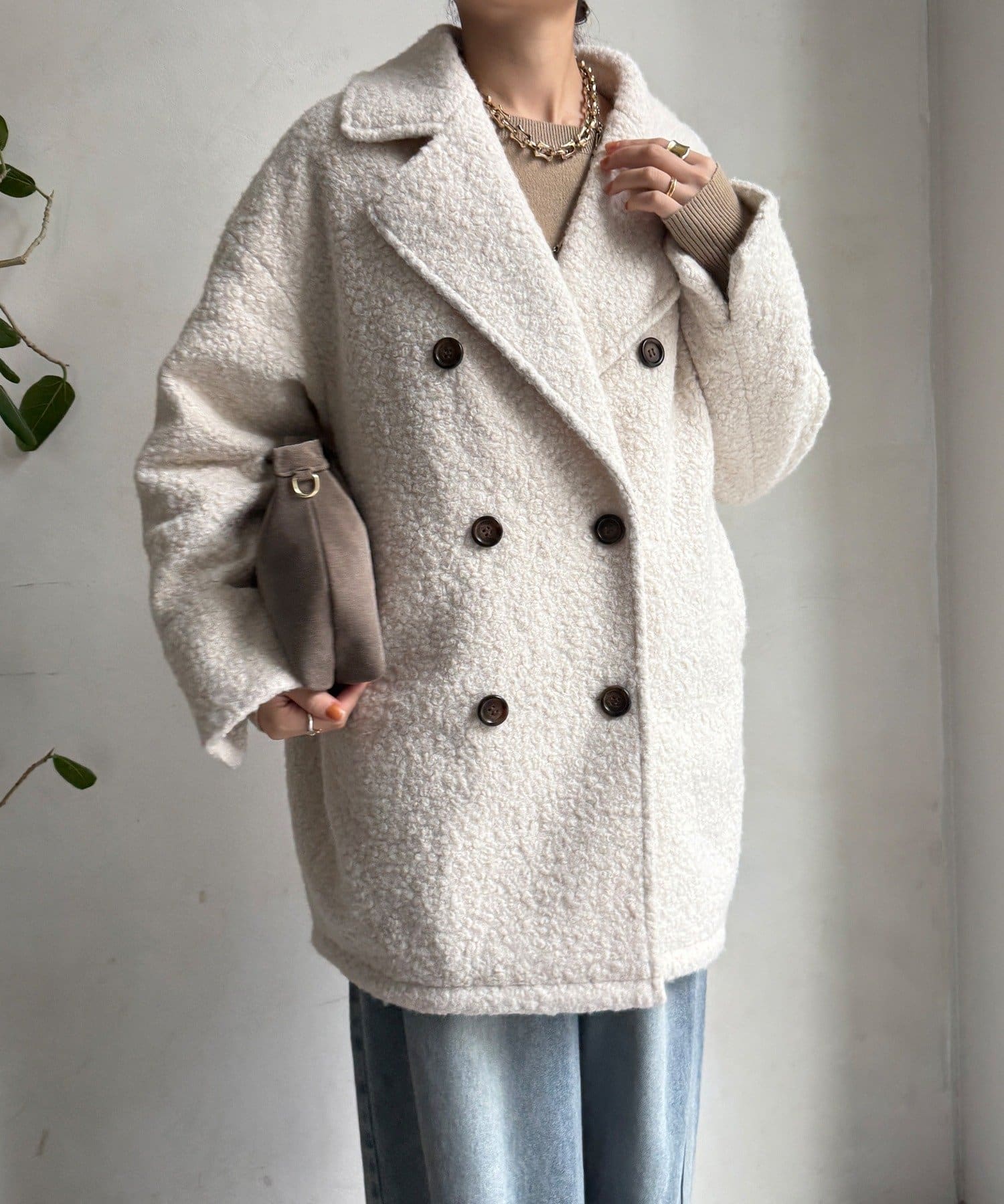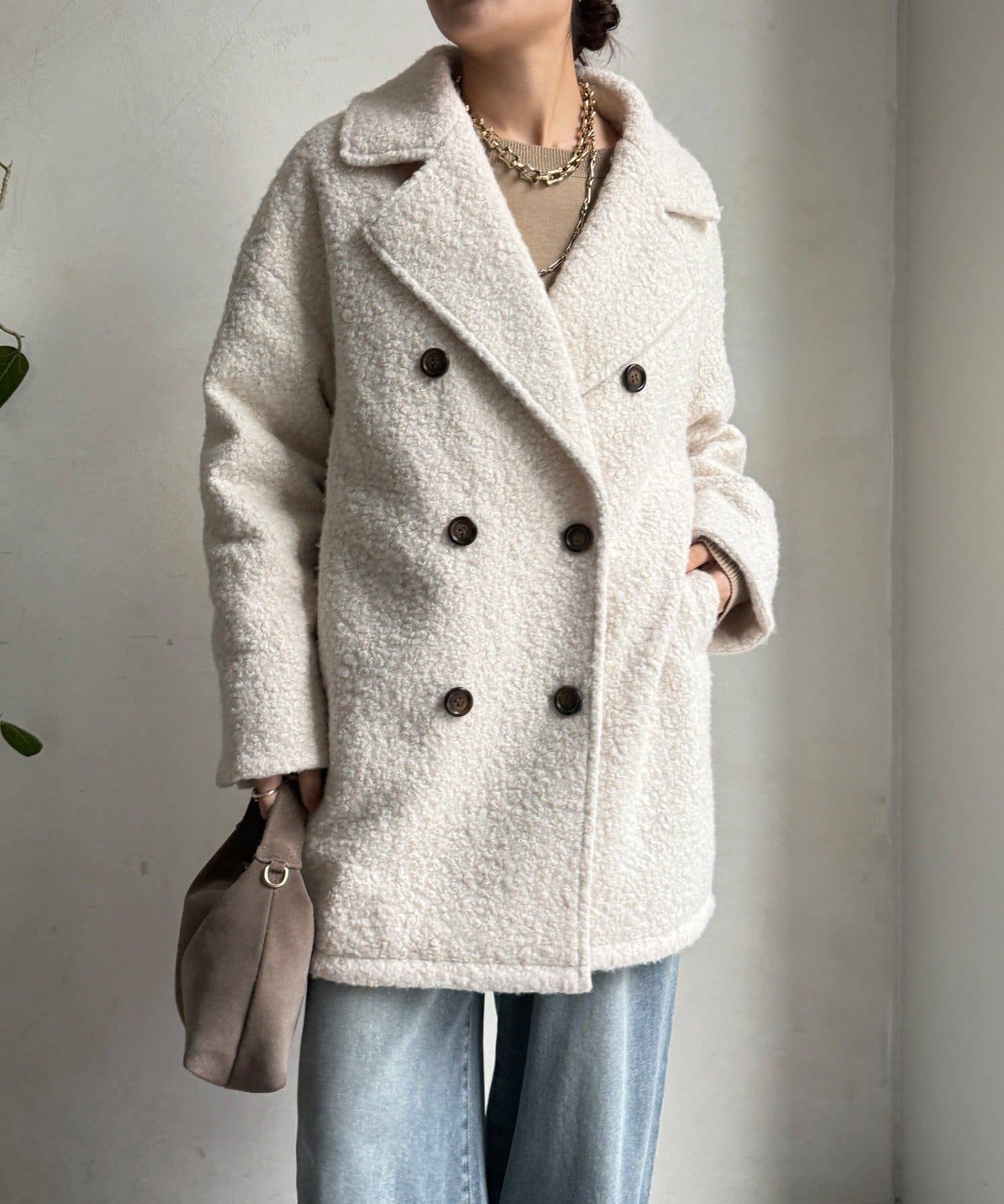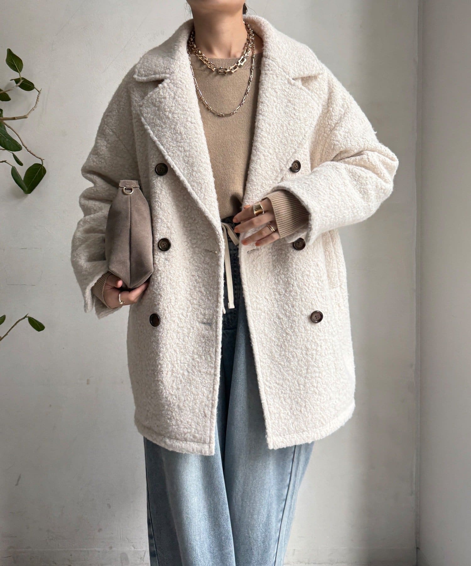 ふんわりとしたボアの質感と、きちんと感のあるテーラードデザインが融合した、今季注目のダブルコートが登場!