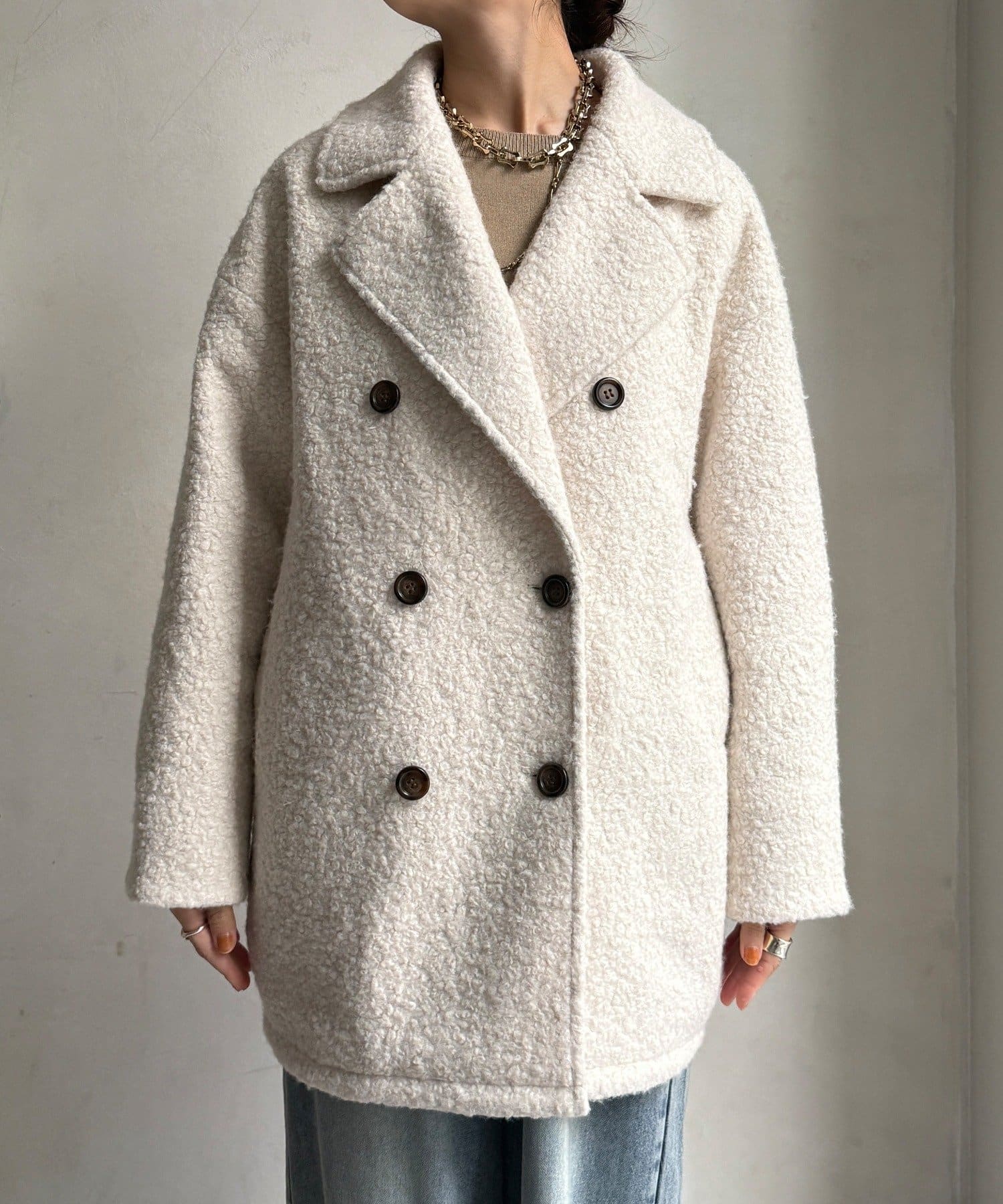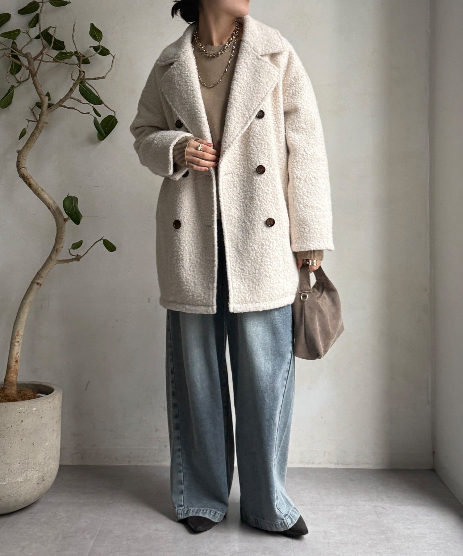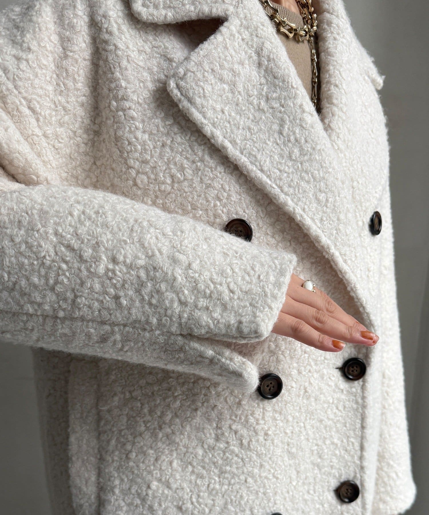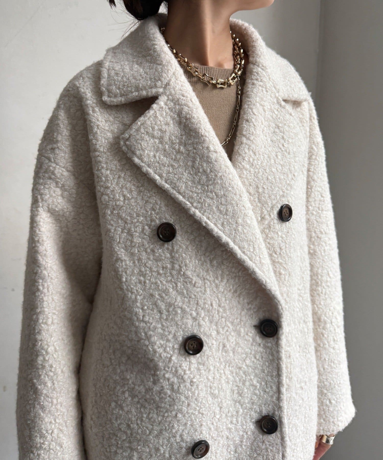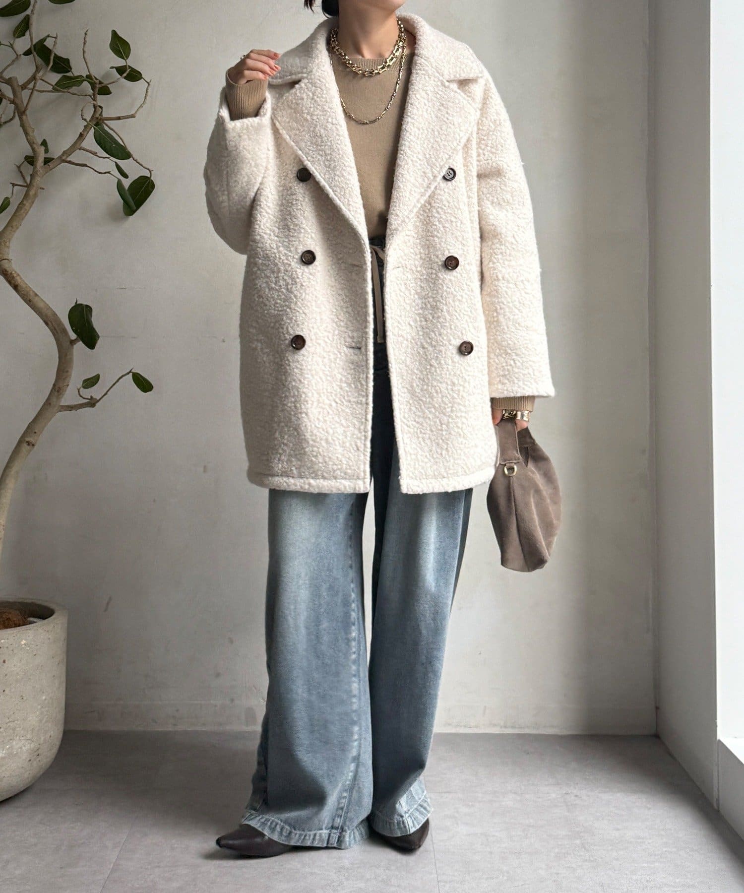 ふんわりとしたボアの質感と、きちんと感のあるテーラードデザインが融合した、今季注目のダブルコートが登場!